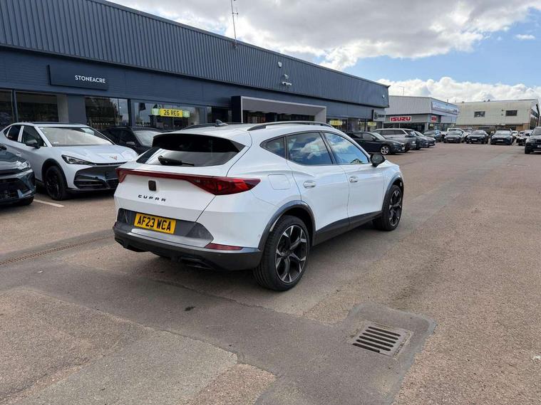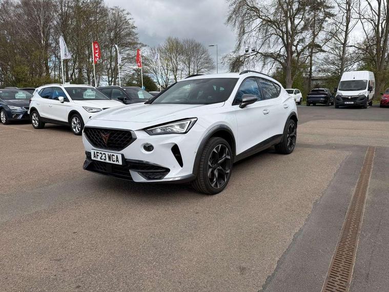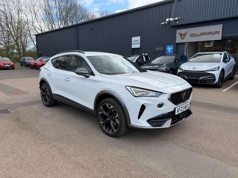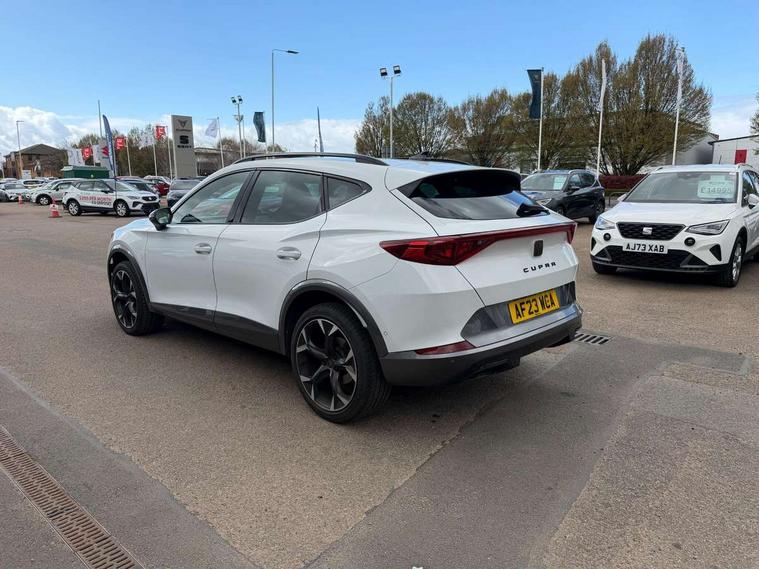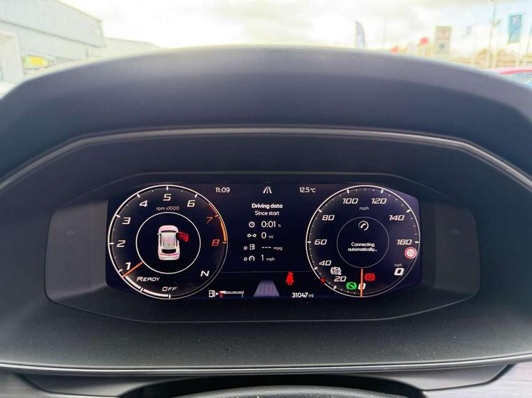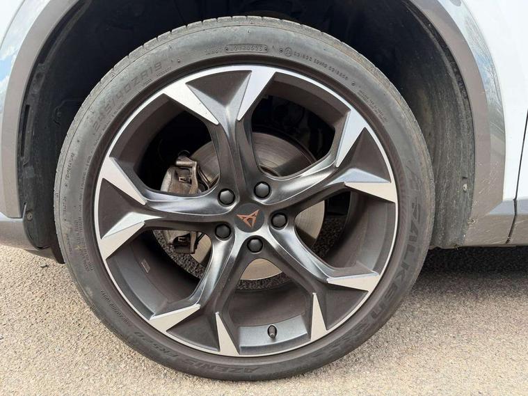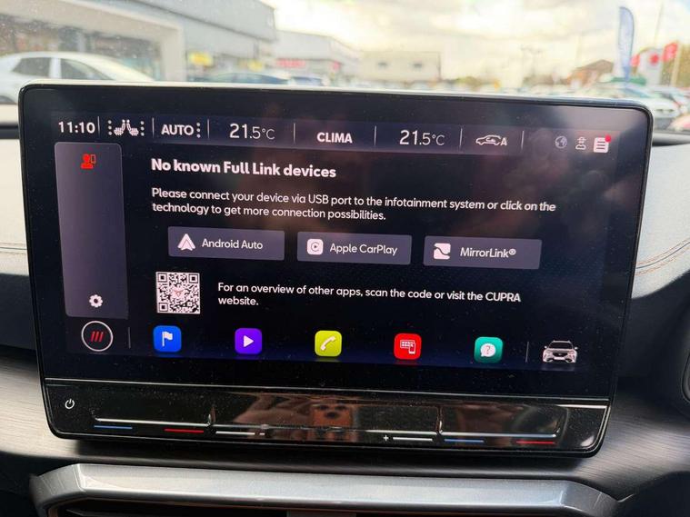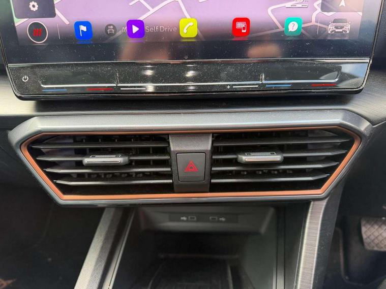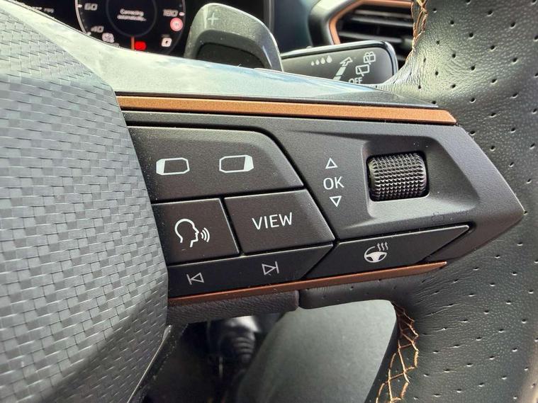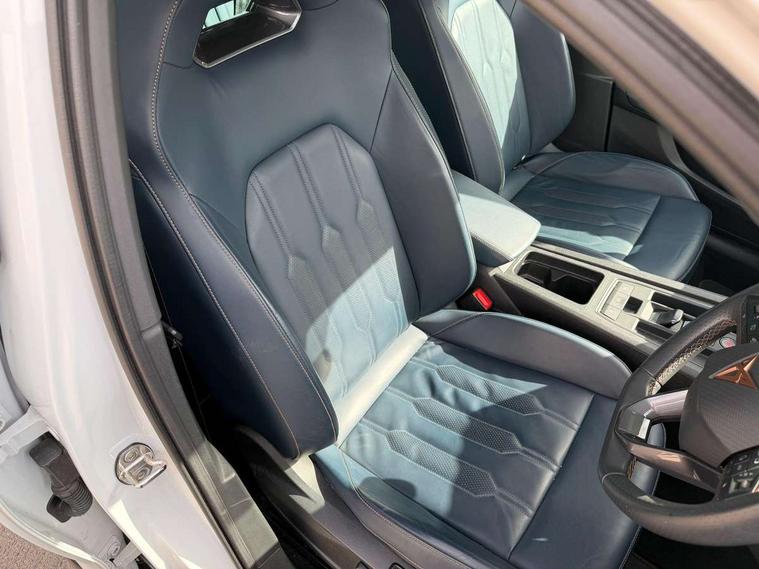 Digital cockpit and configurable dashboard, Driver alert system, Driving profile selection, Forward collision warning with automatic braking, Lane assist, Navigation system with 12'' Touchscreen Display, Park assist (inc front/rear parking sensors), PAS, Predictive adaptive cruise control with speed limiter, Rear view camera, RPM, trip computer, outside temp gauge, instrument light brightness, low fuel warning light, lights on reminder, gearshift indicator, Service interval indicator, Start/stop system with regenerative braking, Voice control system, Wireless apple carplay, Wireless phone charger, Electronic locking differential and dynamic traction support, Standard suspension, 2 front and 2 rear USB type C sockets, Auxiliary input socket, DAB radio, Auto dimming rear view mirror, Body colour door handles, Body coloured bumpers, Dark grey wing mirror, Daytime running light with automatic headlight control and coming home feature, Dynamic headlight range control, Electric front/rear windows, Electrically adjustable heated and folding door mirrors with memory function, Front fog lamps with cornering function, Gloss black roof rails and window surrounds, LED Headlights, LED Taillights with dynamic indicator, Rain sensing wipers, Rear diffuser with black simulated exhaust pipes, Rear side wing doors, Rear wash/wipe, Third brake light, Tinted rear windows, Welcome lights, 12v power supply in centre console, 12V socket, 12v socket in loadspace, 2 front and 2 rear reading lights, 230V socket, 3 seat bench in 2nd row, 60/40 split rear bench seat with armrest and mechanical seat release, Black headlining, Dust/pollen filter, Front and rear head restraints, Front centre armrest, Height/reach adjust steering wheel, Illuminated interior front door sills, Illuminated sunvisor with mirror, Isofix, Leather multi function heated steering wheel with gear shift paddles, Luggage tie-down hooks, Single front passenger seat, Three zone climate control with control panel in rear, Variable luggage/load compartment floor, Wraparound lighting, Genuine Nappa leather Pack - Cupra, 3 point seatbelts on all rear seats, ABS, Brake control system - ESC and brake booster, Child proof door locks, Driver and front passenger airbags with front passenger airbag de-activation, Electronic parking brake, Front and rear disc brakes, Front side curtain airbags, Hill hold control, Public e-call, Seat belt reminder for front and rear seats, Tyre pressure monitoring system, Anti theft alarm system, Keyless entry and start system (KESSY), Locking wheel bolts, Copper and aluminium interior detailing, 19" 'Exclusive' machined sport matte black and silver alloy wheels,