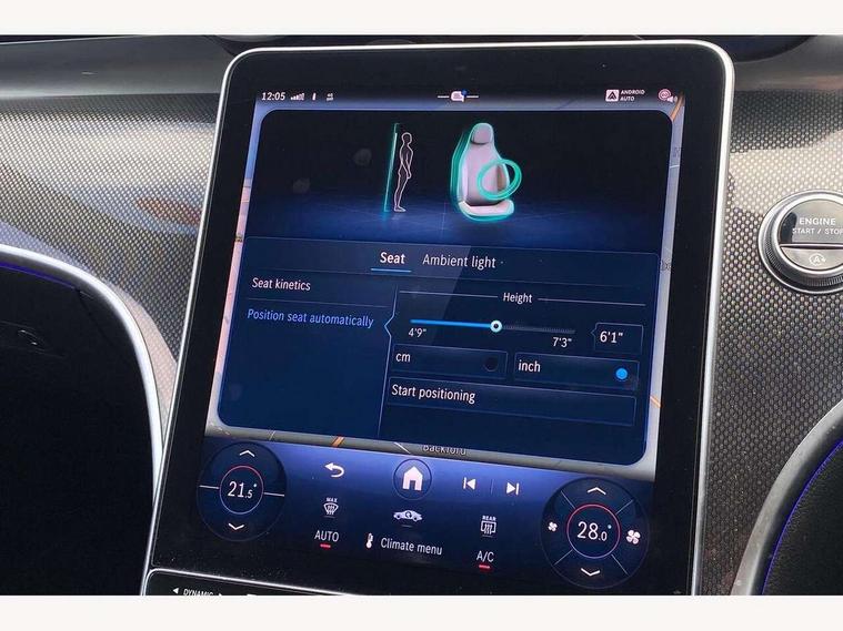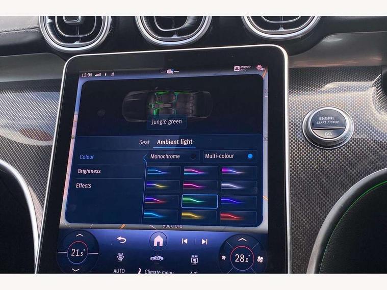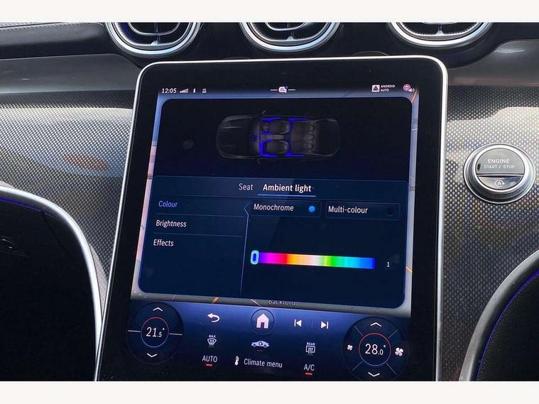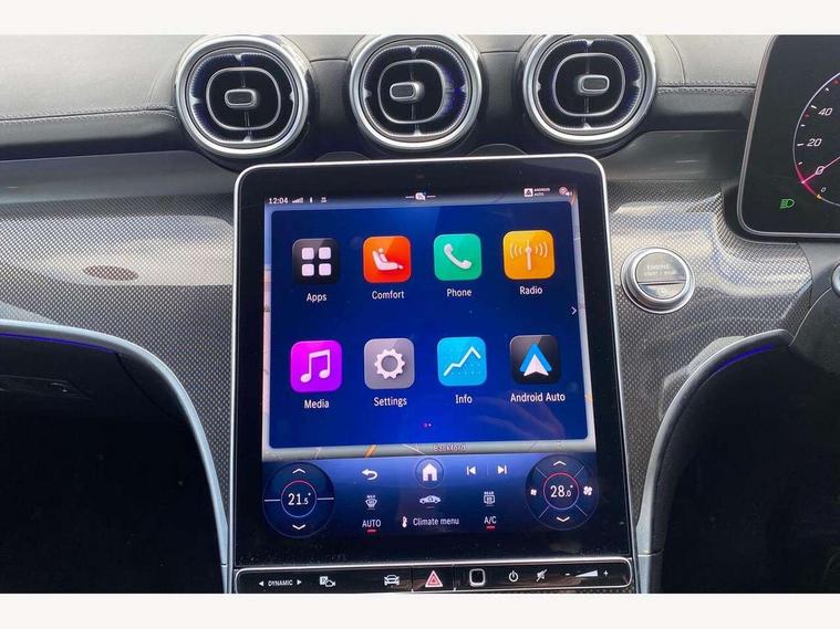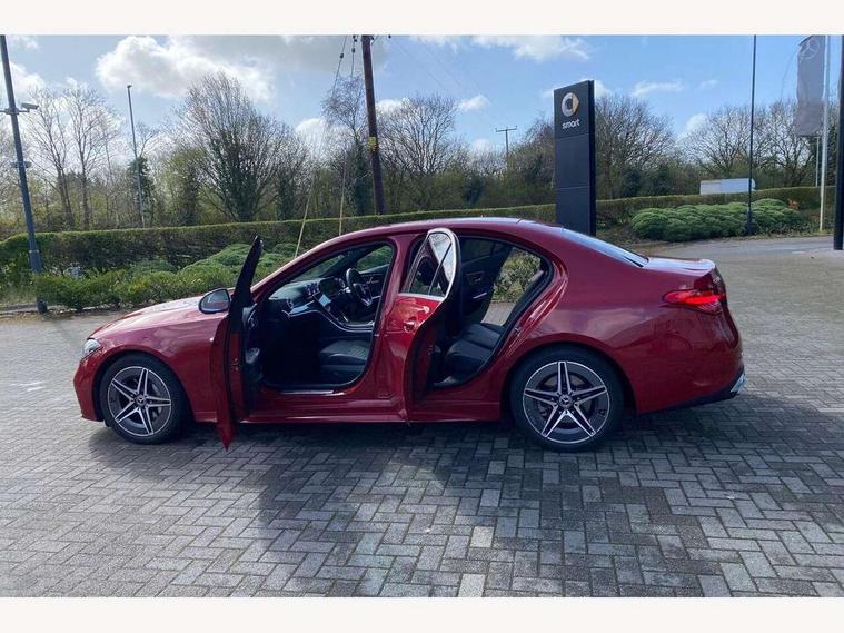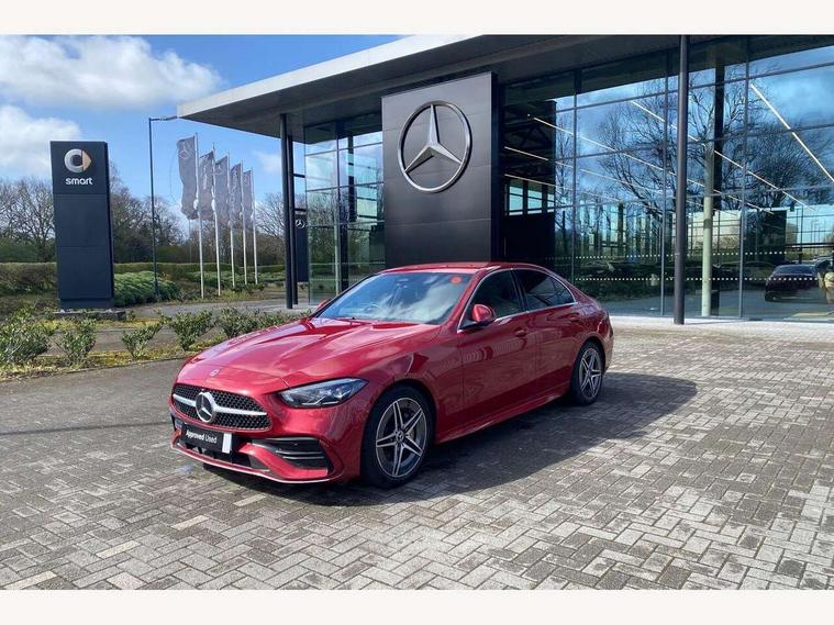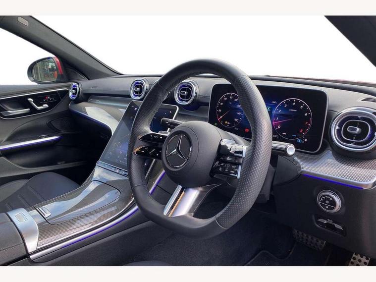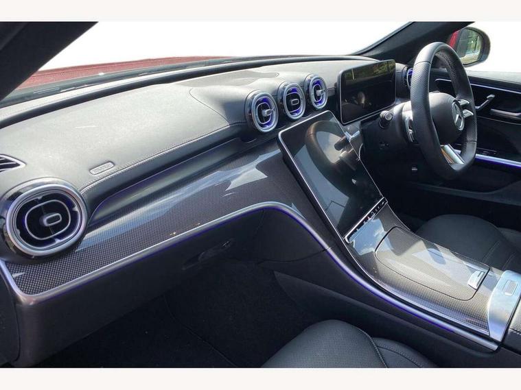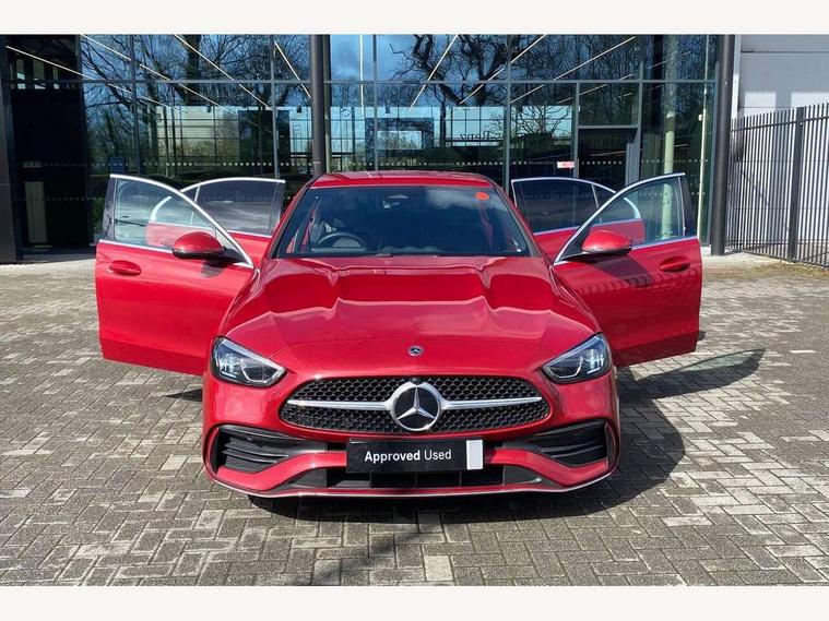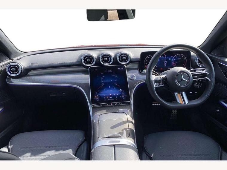 11.9" high resolution multimedia colour display, 12.3" digital instrument cluster display, Active lane keeping assist, Active parking assist with PARKTRONIC, Attention assist, Blind spot assist, Cruise control with speedtronic variable speed limiter, DYNAMIC SELECT with a choice of driving modes (Comfort, ECO, Sport, Sport+, Individual), E-call, Extended MBUX functions, Finger print sensor, Fluorescent jacket for driver, Hard disc navigation, MBUX navigation premium, Mercedes me remote services, Outside temperature gauge, Service indicator (ASSYST), Smartphone integration, Sports direct steer speed sensitive steering, Status display for rear seat belts in instrument cluster, Traffic sign assist, Wireless charging system for mobile devices, 66 litre fuel tank, 9G TRONIC 9 speed automatic transmission, Petrol Particulate Filter, Sport suspension, DAB Digital radio, MBUX multimedia system, Adaptive brake lights, Adaptive high beam assist, AMG body styling front apron, rear apron and side skirts, AMG Line exterior, Body coloured bumpers, Body coloured door mirrors, Electric windows with one touch opening/closing and obstruction sensors, Electrically adjustable and heated door mirrors, Heat insulating dark tinted glass, LED daytime running lights, LED high performance headlamps, LED Indicators, LED tail lights, LED third brake light, Radiator diamond grille with integrated Mercedes Benz star with chrome pins, Rain sensor with automatic windscreen wiper activation, Rear boot, Rear side wing doors, Two visible exhaust pipes integrated into rear bumper, 3 seat bench in 2nd row, 40:20:40 split folding rear bench seat, Ambient lighting premium, Ambient lighting with projection of brand logo, AMG floor mats, AMG line interior, Artico man-made leather upholstery, Auto Mercedes-Benz child seat recognition sensor, Black roof liner, Double cupholder in centre console, Electrically height/reach adjustable steering column, Folding rear seat backrest, Front and rear head restraints, Gearshift paddles on steering wheel, Heated front seats, Illuminated door sills with Mercedes Benz lettering, Illuminated glove compartment stowage, Multifunction sports steering wheel in nappa leather, Rear top tether child seat ISOFIX attachment, Single front passenger seat, Sports seats, Sunvisors with illuminated vanity mirrors, THERMATIC 2 zone automatic climate control, Interior light package - C Class, Memory package - C Class, Mirror package - C Class, Parking package with reversing camera - C Class, Stowage space pack - C Class, USB package plus - C Class, 3 rear 3 point seatbelts, Active bonnet pedestrian safety measure which detects an impact and raises bonnet, Active brake assist, Adaptive brake system with HOLD function and brake drying in the wet, Anti-lock braking system (ABS), Black seat belts, Brake calipers with Mercedes-Benz lettering + perforated front brake discs, Child proof door locks, Drivers knee airbag, Drivers pelvis airbag, Dual stage driver/passenger airbags, Electric parking brake, Electronic Stability Programme (ESP), Front centre airbag between driver and front passenger seats, Front side airbags, Tyre pressure monitoring system, Warning triangle and first aid kit, Window airbags for driver, front passenger and rear passenger, Antitheft alarm system, Interior monitoring system and Increased antitheft protection, Central locking with interior switch, automatic locking and crash sensor with emergency opening function, Chrome surround in electric key, Urban guard vehicle protection plus, Dashboard, instrument panel and beltlines in ARTICO man made leather in nappa look, Metal structure trim element with centre console in metal structure finish, 18" AMG 5 spoke light-alloy wheels painted in tantalite grey with high sheen finish, TIREFIT with tyre inflation compressor,