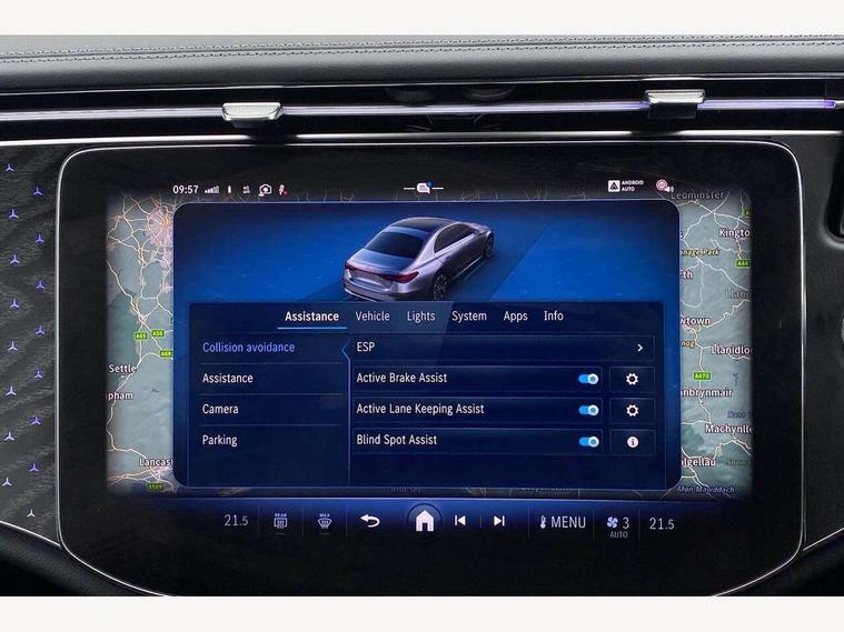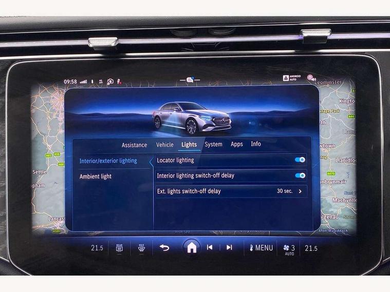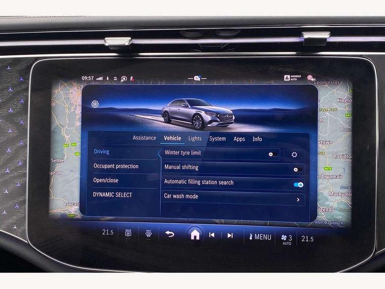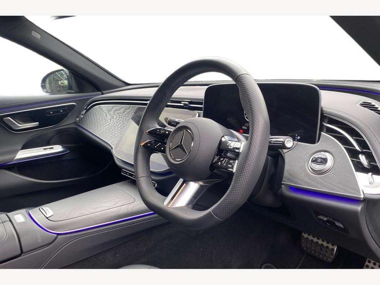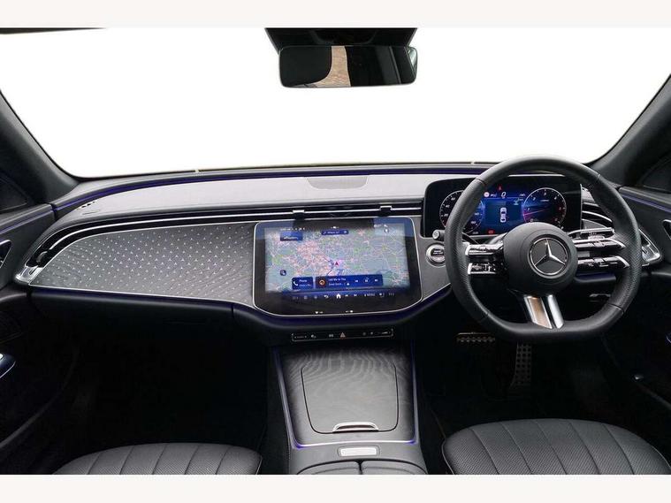 12.3" high resolution cockpit display, 14.4" high resolution central media display with latest MBUX generation, 5G Communications module, Active lane keeping assist, Attention assist, Blind spot assist, Bluetooth, Brake wear warning display, Direct steer speed sensitive steering, ECO start/stop function, Evasive manoeuvre support, Fingerprint scanner, Fluorescent jacket for driver, Hard disc navigation, MBUX augmented reality for navigation, MBUX navigation premium, MBUX voice control, Mercedes me connect including emergency call system, accident recovery, breakdown and maintenance management, Outside temperature display, Preinstallation for live traffic, Remote Services Premium, Service indicator (ASSYST), Status display for rear seat belts in instrument cluster, Traffic sign assist, Trip computer in multifunction display showing current fuel consumption, Wireless charging, Wireless smartphone integration with Apple CarPlay and Android auto, 48V Mild hybrid technology, 66 litre fuel tank, 9G TRONIC automatic transmission, Agility control suspension with selective damping system and lowered by 15mm, Bluetec emission control, Diesel particulate filter, Integrated starter generator Gen 2, Sporty engine sound system, DAB Digital radio, Preinstallation for MBUX Entertainment Plus, 3rd brake light, Adaptive brake lights, Aerial integrated in rear window, AMG Line exterior, Auto dimming driver's door mirror, Auto dimming rear view mirror, Digital air vent control, Electric folding door mirrors, Electric windows with one touch opening/closing and obstruction sensors, Electrically adjustable and heated door mirrors, Heat insulating privacy glass, Illuminated radiator grille, LED daytime running lights, LED high performance headlights with adaptive highbeam assist, Pre-installation for roof rail systems, Rear boot, Rear side wing doors, Surround lighting with logo projection, 3 seat bench in 2nd row, 4 way lumbar support, Ambient lighting, AMG brushed stainless steel sports pedals with rubber studs, AMG floor mats, AMG line interior, Automatic child seat recognition sensor, Central stowage compartment with USB socket for use with Android Auto and Apple CarPlay, Climatised front seats, Comfort seats, Courtesy lights in rear grab handles with reading light functionality, Folding rear seat backrest, Front centre armrest with stowage compartment, Gearshift paddles in galvanised silver, Glove compartment - lockable, air conditioned and illuminated, Head restraints for driver and front passenger (four-way adjustability) and in rear (two-way), Heated front seats, Instrument panel and door beltlines in artico nappa look leather, Leather upholstery, Multifunction sports steering wheel in nappa leather, Roof liner in black fabric, Seat occupancy sensor for front passenger seat, Single front passenger seat, Steering wheel touch control buttons for audio and onboard settings, Sunvisors with illuminated vanity mirrors, THERMATIC 2 zone automatic climate control, Night pack - E class, Parking package with 180 degree camera - E Class, USB plus package - E Class, 3x3 point rear seatbelts, Active bonnet pedestrian safety measure which detects an impact and raises bonnet, Adaptive brake system with HOLD function and brake drying in the wet, Anti-lock braking system (ABS), Automatic front passenger airbag deactivation, Central airbag, Childproof locks manually operated for rear doors and electrically operated for rear power windows, Driver and front passenger airbags, Electronic parking brake, Electronic Stability Programme, Hill start assist, ISOFIX child seat attachment points two outer rear seats, Knee airbags, Pedestrian protection, Pre-Safe anticipatory safety system, Tyre pressure monitoring system, Warning triangle and first aid kit, Window airbags, Alarm system/interior protection/immobiliser, Central locking with interior switch, automatic locking and crash sensor with emergency opening function, Dashcam, Guard 360 degree vehicle protection, Increased anti theft protection, Keyless Go, Urban guard vehicle protection plus, Centre console trim in open pore black ash wood, Dash trim in open pore black ash wood with backlit laser cut Mercedes-Benz star pattern, 19" AMG 5 twin spoke design alloy wheels with black painted inserts and high sheen finish, Summer tyres, TIREFIT with tyre inflation compressor,