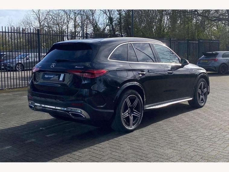 11.9" high resolution multimedia colour display, 12.3" Digital individually configurable instrument display, Acoustic presence indicator, Active lane keeping assist, Attention assist, Blind spot assist, Bluetooth interface for hands free telephone, Collision prevention assist plus, Cruise control with speedtronic variable speed limiter, Dashcam - front camera for video recording, Direct steer speed sensitive steering, DYNAMIC SELECT with a choice of driving modes (ECO, Comfort, Sport, Sport+ and Individual), eCall emergency call system, ECO start/stop function, Fingerprint scanner, Fluorescent jacket for driver, Hard disc navigation, Instrument display in miles with English lettering, MBUX augmented reality for navigation, MBUX navigation premium, MBUX voice control activated by keywords "Hey Mercedes", Mercedes me connect, Outside temperature display, Remote boot release, Remote services, Road sign recognition system, Service indicator (ASSYST), Smartphone integration, Status display for rear seat belts in instrument cluster, Traffic sign assist, Trip computer, Wireless charging, 48V Mild hybrid technology, 4MATIC permanent four wheel drive, 62 litre fuel tank, 9G TRONIC plus automatic transmission, Petrol Particulate Filter (PPF), Sport suspension, DAB digital radio tuner, MBUX extended functions, Mercedes benz sound system, Pre installation for Mercedes Benz Link, Adaptive brake lights, Adaptive high beam assist plus, Aluminium look running boards with rubber studs, Aluminium roof rails, AMG bodystyling front apron, rear apron and side skirts, AMG Line exterior, Auto headlights, Body colour bumpers, Body colour door mirrors, Digital light LED headlights, Electrically adjustable door mirrors, Front and rear electric windows, Headlight washers, Heat insulating dark tinted glass, Heated rear window, High level LED brake light, Integrated LED daytime running lights, LED indicator lights, LED rear fog lights, LED tail lamp, Motor way mode function and locator lighting, Noise acoustic glass, Radiator grille with Mercedes Benz pattern and integreated Mercedes star and louvre in dark grey matt with chrome inlay and black frame, Rain sensor windscreen wipers, Range adjustable headlights, Rear side wing doors, Rear wiper, Transparent Bonnet, Two chrome plated tailpipe trim elements, Variable front intermittent wipers, Welcome and follow-me home light functionality, Wider wheel arch for AMG wheels, 3 seat bench in 2nd row, 40:20:40 split folding rear seats, Ambient lighting premium, AMG line interior, Artico man-made leather upholstery, Audio and onboard settings control on multifunction steering wheel, Automatic child seat recognition sensor, Black fabric roof lining, Black floor mats with AMG lettering, Double cup holder in centre console, Easy-pack removable load compartment cover, Electrically height/reach adjustable steering column, Front centre armrest with stowage compartment, Front head restraints, Galvanised steering wheel gearshift paddles, Heated front seats, Illuminated door sill panels with Mercedes Benz lettering, Illuminated glove compartment, Instrument panel and beltlines in ARTICO manmade leather in nappa look, Multifunction sports steering wheel in nappa leather, Rear centre headrest, Rear head restraints, Rear top tether child seat ISOFIX attachment, Single front passenger seat, Sports pedals with stainless steel surfaces and rubber studs, Sports seats, Sun visors, THERMATIC 2 zone automatic climate control, Anti theft protection package - GLC, Boot comfort package - GLC, Exterior chrome package - GLC, Interior chrome package - GLC, Interior lighting pack - GLC, Keyless-Go comfort package - GLC, Memory pack - GLC, Mirror pack - GLC, Parking package with 360 degree camera - GLC, Seat comfort package - GLC, Stowage space package - GLC, USB Plus Pack - GLC, 3 rear 3 point seatbelts, Active braking assist, Anti-lock braking system (ABS), ASR traction control, Automatic front passenger airbag deactivation, Black seat belts, Brake calipers with Mercedes-Benz lettering + perforated brake discs, Braking system with larger brake discs on the front axle, Child proof door locks, Dual-stage airbags - driver and front passenger, driver knee bag and window bags for driver, front passenger and rear passengers, Electronic parking brake, Electronic stability programme (ESP) with curve dynamic assist and cross wind assist, Front and rear seatbelt reminder, Front passenger seat occupancy sensor, Front seatbelt pretensioners, Hill start assist, Tyre pressure monitoring system, Warning triangle and first aid kit, Automatic door locking, Guard 360 degree vehicle protection plus, Interior protection/immobiliser, Remote central locking, Centre console in metal structure finish, Metal structure trim, 20" AMG 5 spoke aerodynamically optimised light alloy wheels in painted black with high sheen finish, Summer tyres, TIREFIT with tyre inflation compressor,
