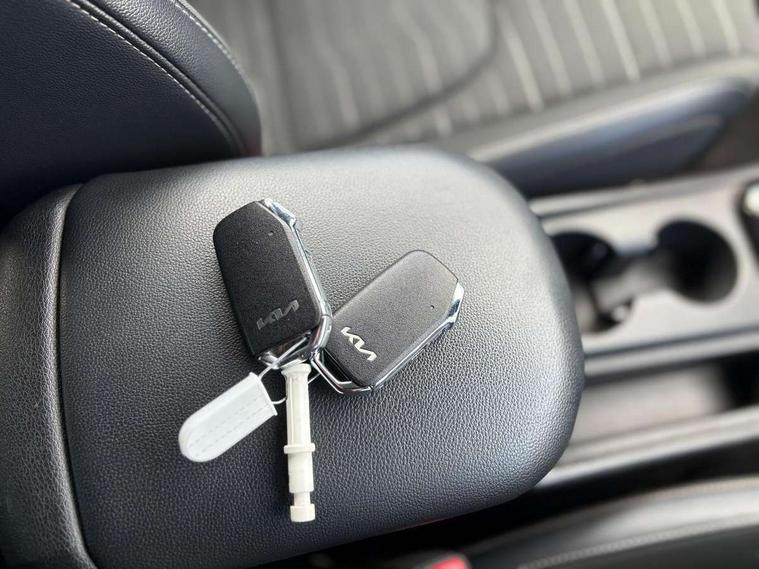 12.3" Display with navigation, 12.3" supervision colour cluster display, Apple car play/Android Auto with voice control, Cruise control + speed limiter, Drive mode selector, E-call, Forward collision avoidance assist (FCA) - city/pedestrian/cyclist/junction covering, Front and rear parking sensors, Intelligent speed limit assist, Kia Connect (UVO), Lane Following Assist (LFA), Lane keep assist, Low washer fluid warning, Rear view monitor, Reversing camera system integrated into centre fascia screen, Speed sensitive power steering, Trip computer, Windscreen washer level indicator, Intelligent Stop and Go, 6 speaker audio system, Bluetooth audio streaming, DAB Radio with MP3, Rear USB port, Steering wheel mounted audio controls, USB port for connection of a media device, All round electric windows with drivers and front passenger auto up/down function, Automatic headlight control system, Automatic window defogger, Backlite glass heated with timer, Black side sill and wheel arch body mouldings, Body colour and black bumper with silver accents, Body colour door mirrors, Body colour exterior door handles, Electrically adjustable/heated/folding door mirrors with LED indicators, High beam assist, Interior electrochromic mirror, LED daytime running lights, LED front fog lamps, LED headlamps (low and high beam - MFR type), LED High mounted stop light, Rain sensing wipers with aero blades, Rear fog lamp, Rear privacy glass, Rear side wing doors, Rear skid plate - silver, Rear spoiler, Rear wiper, Satin finished beltline, Silver radiator upper garnish and door garnish, Silver roof rack, Trailer stability assist, 12V power socket in front centre fascia and luggage compartment, 2nd row personal lamps, 3 seat bench in 2nd row, 3 x passenger assist grips, 40/20/40 split folding rear seat, All-round height adjustable headrests, Centre console storage box, Cloth/faux leather upholstery, Cupholders in rear armrest, Door courtesy lamps, Drink holder at centre armrest, Driver and front passenger side sunvisors with illuminated vanity mirrors, Drivers seat power lumbar support, Electric height adjustable front seats, Front and rear door storage, Front seat and rear pockets, Front/rear centre armrests, Gear shift indicator, Glovebox illumination, Heated front and outer rear seats, Heated steering wheel, Interior door lock/unlock function, ISOFIX Child seat top tethers and anchor fixings outer rear seats, Leather steering wheel, Luggage area light, Luggage area load cover, Luggage net with hooks, Metal paint interior door handles, Overhead console lamp, Rear coat hooks, Single front passenger seat, Three zone climate control, Tilt/telescopic adjustable steering wheel, Ventilation ducts to rear compartment, Active front headrests, All round 3-point seatbelts, Anti-lock braking system (ABS), Dual front side airbags, Dual horn, Electronic parking brake, Electronic stability control with downhill brake control, Front passenger airbag cut-off switch, Front seatbelt pretensioners + load limiters, Height adjustable front seatbelts, Hill start assist control (HAC), Impact sensing auto door unlocking, Multi collision brake assist, Rear door child safety locks, Rear seat alert system, Traction control, Twin curtain airbags, Twin front airbags, Tyre pressure monitoring system, Advanced anti-theft system including immobiliser and alarm, Door deadlocks, Engine Start/Stop Button with Smart Entry System, Locking wheel nuts, Speed sensitive auto door locking, Visible vehicle identification number, Aluminium pattern finish centre fascia and door garnish, 18" Alloy wheels, Tyre mobility kit,