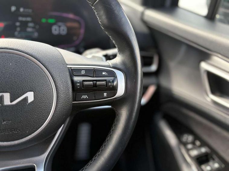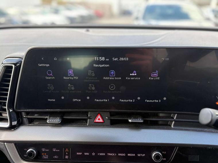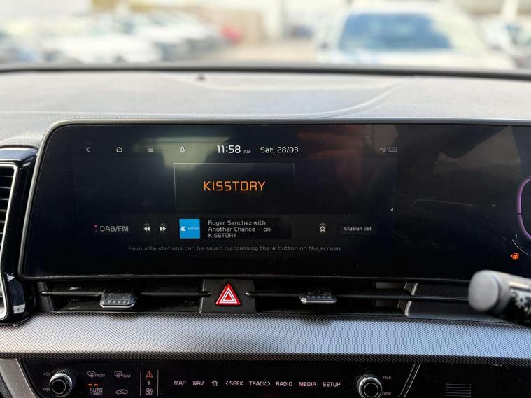 12.3" Display with navigation, 4.2" supervision colour cluster display, Apple car play/Android Auto with voice control, Drive mode selector, E-call, Forward collision avoidance assist (FCA) - city/pedestrian/cyclist/junction covering, Front and rear parking sensors, Highway Driving Assist (HDA), Intelligent speed limit assist, Kia Connect (UVO), Lane Following Assist (LFA), Lane keep assist, Low washer fluid warning, Rear view monitor, Reversing camera system integrated into centre fascia screen, Smart cruise control with stop and go functionality, Speed sensitive power steering, Trip computer, Windscreen washer level indicator, Intelligent Stop and Go, 6 speaker audio system, Bluetooth audio streaming, DAB Radio with MP3, Rear USB port, Steering wheel mounted audio controls, USB C type charging ports on centre console, USB C type charging ports on side of front seats, USB port for connection of a media device, All round electric windows with drivers and front passenger auto up/down function, Automatic headlight control system, Automatic window defogger, Backlite glass heated with timer, Body colour and black bumper with silver accents, Body colour exterior door handles, Body colour radiator upper garnish and door garnish, Electrically adjustable/heated/folding door mirrors with LED indicators, Front and rear chrome skid plates, Gloss black door mirrors, Gloss black radiator grille, Gloss black side sill and wheel arch body mouldings, Glossy black roof rack, High beam assist, Interior electrochromic mirror, LED daytime running lights, LED front fog lamps, LED headlamps (low and high beam - MFR type), LED High mounted stop light, LED rear combination lamp, Rain sensing wipers with aero blades, Rear fog lamp, Rear privacy glass, Rear side wing doors, Rear spoiler, Rear wiper, Satin finished beltline, Silver coloured inserts to bumpers, Tinted rear glass, Trailer stability assist, 12V power socket in front centre fascia and luggage compartment, 2nd row personal lamps, 3 seat bench in 2nd row, 3 x passenger assist grips, 40/20/40 split folding rear seat, All-round height adjustable headrests, Black headlining, Centre console storage box, Cupholders in rear armrest, D-Shaped sports leather steering wheel and perforated inserts with GT-Line logo, Door courtesy lamps, Drink holder at centre armrest, Driver and front passenger side sunvisors with illuminated vanity mirrors, Driver's seat manual height adjust, Drivers seat power lumbar support, Front and rear door storage, Front seat and rear pockets, Front/rear centre armrests, Gear shift indicator, Glovebox illumination, Heated front seats, Heated steering wheel, Interior door lock/unlock function, ISOFIX Child seat top tethers and anchor fixings outer rear seats, Luggage area light, Luggage area load cover, Luggage net with hooks, Metal paint interior door handles, Overhead console lamp, Paddle shift controls, Rear cabin light, Rear coat hooks, Single front passenger seat, Sports pedals, Suede leather upholstery, Three zone climate control, Tilt/telescopic adjustable steering wheel, Ventilation ducts to rear compartment, Active front headrests, All round 3-point seatbelts, Anti-lock braking system (ABS), Dual front side airbags, Dual horn, Electronic parking brake, Electronic stability control with downhill brake control, Front passenger airbag cut-off switch, Front seatbelt pretensioners + load limiters, Height adjustable front seatbelts, Hill start assist control (HAC), Impact sensing auto door unlocking, Multi collision brake assist, Rear door child safety locks, Rear seat alert system, Traction control, Twin curtain airbags, Twin front airbags, Tyre pressure monitoring system, Advanced anti-theft system including immobiliser and alarm, Door deadlocks, Engine Start/Stop Button with Smart Entry System, Locking wheel nuts, Speed sensitive auto door locking, Visible vehicle identification number, Aluminium pattern finish centre fascia and door garnish, 18" GT-Line alloy wheels, Tyre mobility kit,