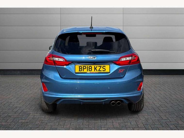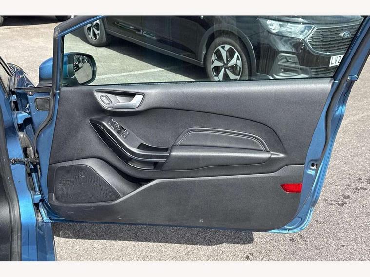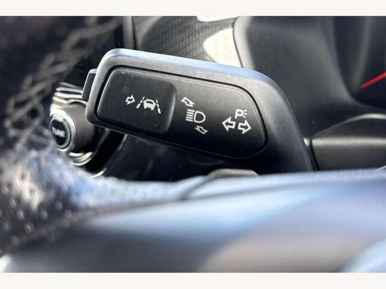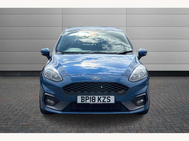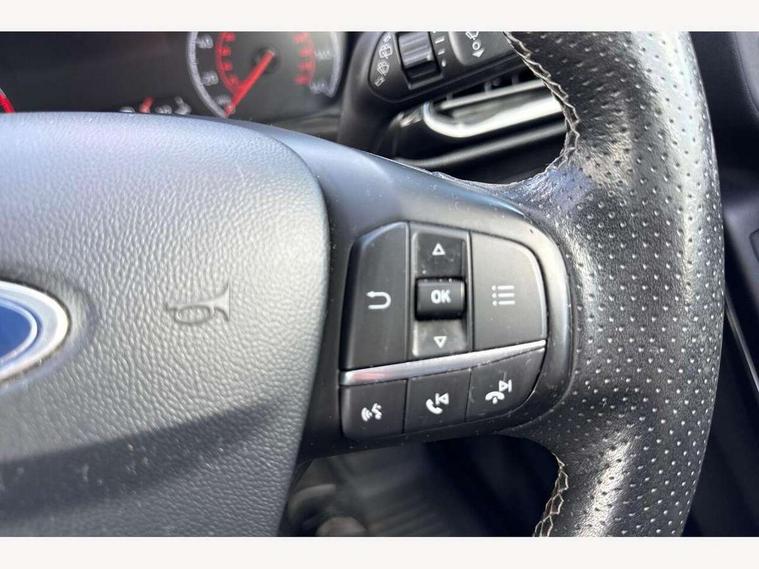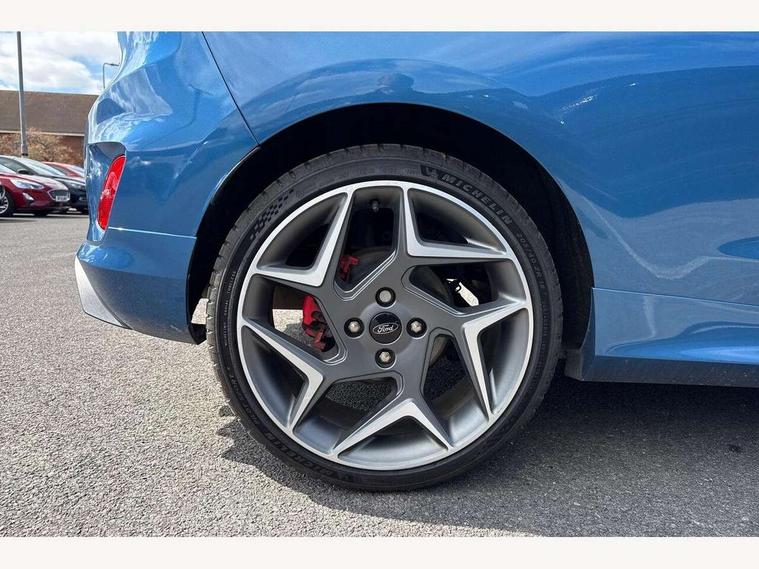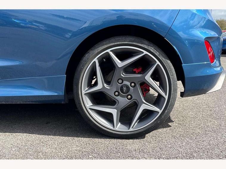 Bluetooth system, Drive mode selector, Driver alert system, Electric power steering, Ford SYNC 3 nav system, apple car play and android auto with voice control, Lane keep assist, Rear parking sensor, Rear view camera, Speed limiter, SYNC Emergency Assistance, Traffic sign recognition, Trip computer, Sports suspension, 2 USB ports, Auxiliary input socket, Steering wheel mounted controls, USB connection, Auto dimming rear view mirror, Auto high beam, Automatic headlights, Body colour bumpers, Body colour door handles, Body colour electric adjustable heated door mirrors, Body colour large rear spoiler, Body styling kit, Cornering front fog lights, Daytime running lights, Electric folding door mirrors with puddle lamps, Electric front windows/one touch facility, LED rear lights, Rear privacy glass, Rear wiper, Tinted glass, Upper front grille chrome surround, 12V Accessory socket in centre console, 3 spoke flat bottomed leather steering wheel with red stitching, 60/40 split folding rear seat, Adjustable head restraints, Air conditioning + Electric Auto Temperature Control (EATC), Ambient lighting, Black headlining, Boot carpet, Centre console with armrest, Chrome inner door handles, Driver/passenger seat height adj/lumbar support, Floor mats with grey stitching, Footwell illumination, Front map reading lights, Front seat and rear pockets, Heated front seats, Heated steering wheel, Illuminated cup holders, Illuminated glovebox, Leather gear knob, Leather trimmed handbrake handle, Leather upholstery, Load area light, Overhead console with sunglasses holder, Pollen filter, Rake/reach adjustable steering wheel, Rear centre head restraint, Recaro sports front seats, Sports pedals, Driver assistance pack with Adaptive Cruise Control - Fiesta, 3 point seatbelts on all rear seats, ABS+EBA, Curtain airbags, Driver and passenger airbags, Drivers knee airbag, ESP + traction control, Front passenger airbag deactivation, Front side airbags, Hill start assist, Red brake calipers, Seatbelt warning, Tyre pressure monitoring system, Immobiliser, Keyless entry and keyless start, MyKey system, Remote central locking, Thatcham Cat.1 alarm, 18" 5 spoke alloy wheels with Magnetic machined finish,
