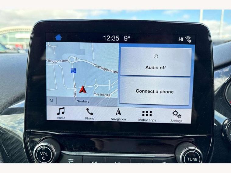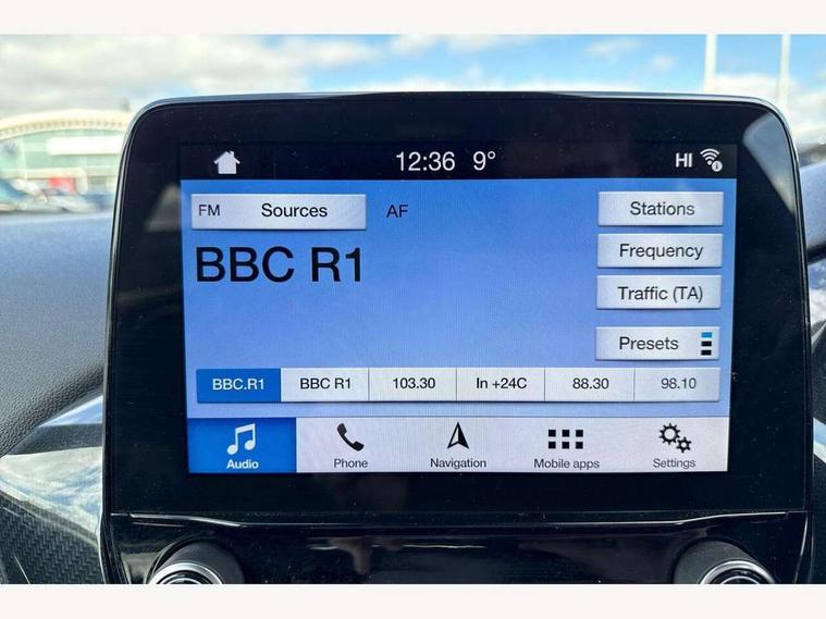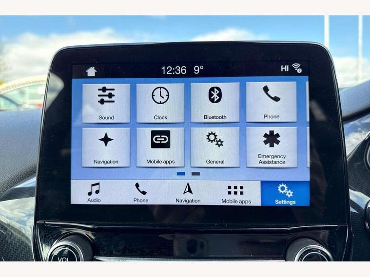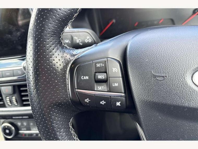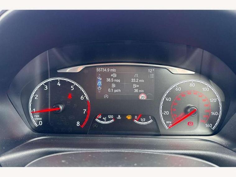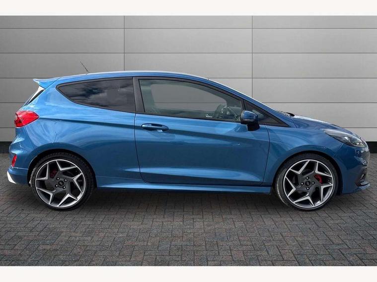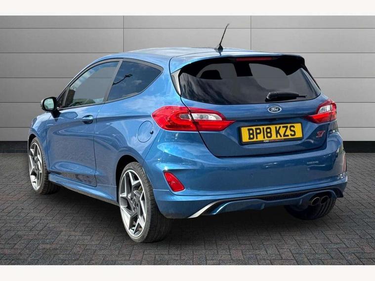 Bluetooth system, Drive mode selector, Driver alert system, Electric power steering, Ford SYNC 3 nav system, apple car play and android auto with voice control, Lane keep assist, Rear parking sensor, Rear view camera, Speed limiter, SYNC Emergency Assistance, Traffic sign recognition, Trip computer, Sports suspension, 2 USB ports, Auxiliary input socket, Steering wheel mounted controls, USB connection, Auto dimming rear view mirror, Auto high beam, Automatic headlights, Body colour bumpers, Body colour door handles, Body colour electric adjustable heated door mirrors, Body colour large rear spoiler, Body styling kit, Cornering front fog lights, Daytime running lights, Electric folding door mirrors with puddle lamps, Electric front windows/one touch facility, LED rear lights, Rear privacy glass, Rear wiper, Tinted glass, Upper front grille chrome surround, 12V Accessory socket in centre console, 3 spoke flat bottomed leather steering wheel with red stitching, 60/40 split folding rear seat, Adjustable head restraints, Air conditioning + Electric Auto Temperature Control (EATC), Ambient lighting, Black headlining, Boot carpet, Centre console with armrest, Chrome inner door handles, Driver/passenger seat height adj/lumbar support, Floor mats with grey stitching, Footwell illumination, Front map reading lights, Front seat and rear pockets, Heated front seats, Heated steering wheel, Illuminated cup holders, Illuminated glovebox, Leather gear knob, Leather trimmed handbrake handle, Leather upholstery, Load area light, Overhead console with sunglasses holder, Pollen filter, Rake/reach adjustable steering wheel, Rear centre head restraint, Recaro sports front seats, Sports pedals, Driver assistance pack with Adaptive Cruise Control - Fiesta, 3 point seatbelts on all rear seats, ABS+EBA, Curtain airbags, Driver and passenger airbags, Drivers knee airbag, ESP + traction control, Front passenger airbag deactivation, Front side airbags, Hill start assist, Red brake calipers, Seatbelt warning, Tyre pressure monitoring system, Immobiliser, Keyless entry and keyless start, MyKey system, Remote central locking, Thatcham Cat.1 alarm, 18" 5 spoke alloy wheels with Magnetic machined finish,