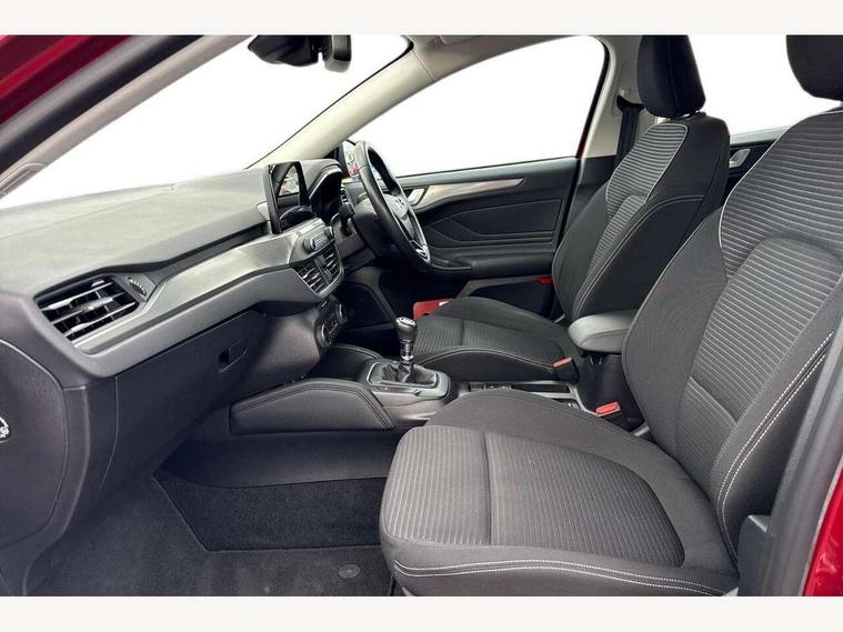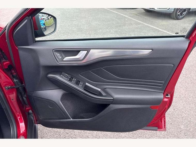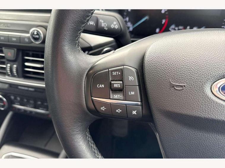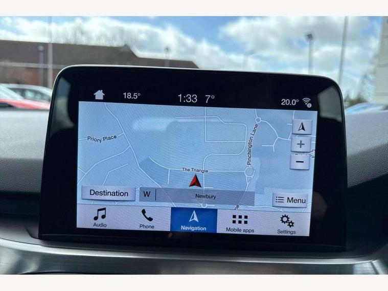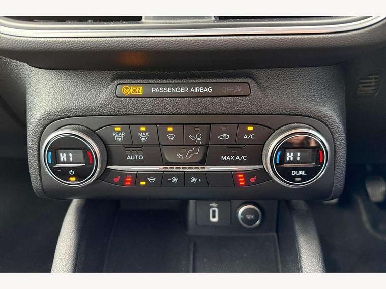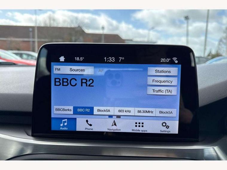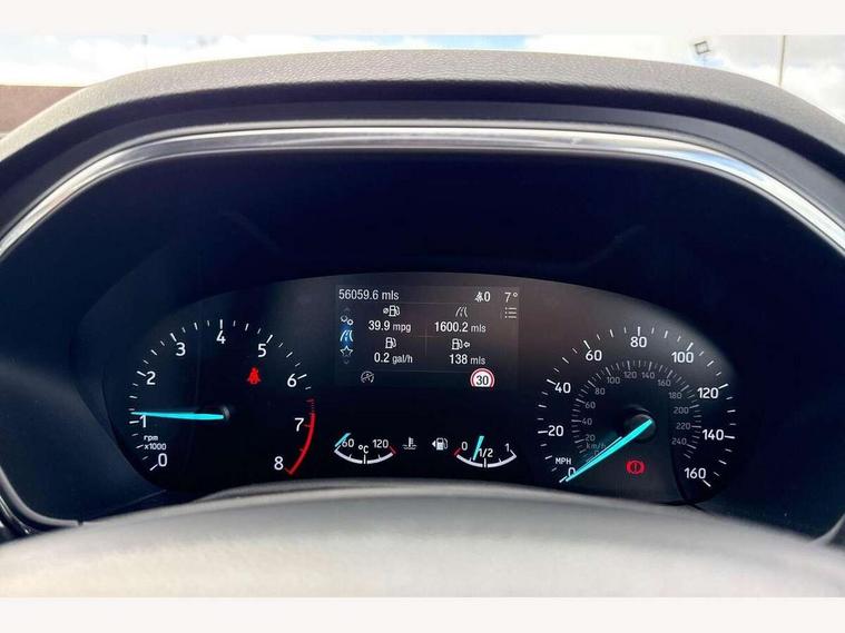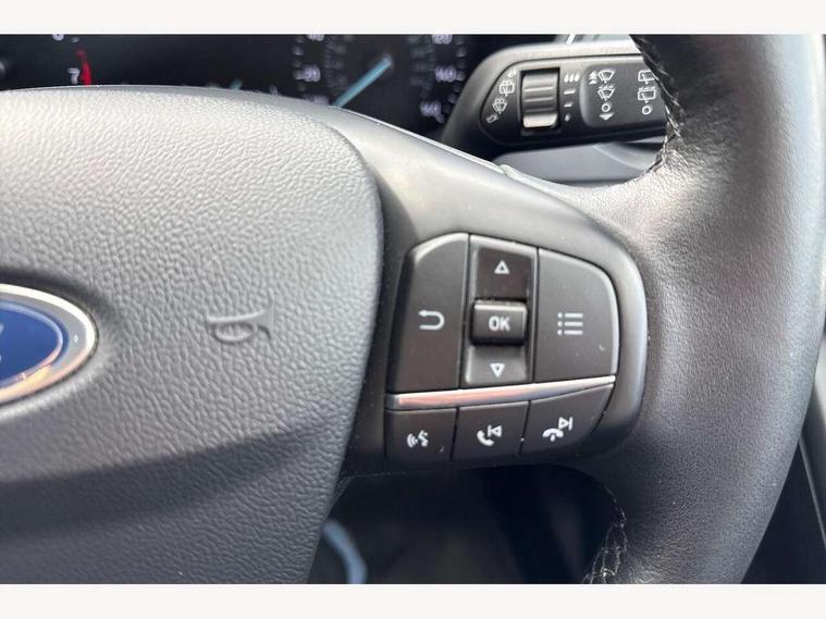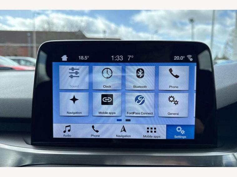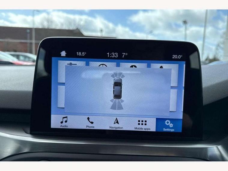 4" TFT coloured cluster screen, Bluetooth system, Digital clock, Easy fuel capless refuelling system, Eco mode, Ford pass connect, Ford SYNC 3 nav system with DAB radio, 8" colour touch screen, voice control, app link, Apple car play/Android auto and 4.2" TFT coloured cluster, Lane keeping aid with lane departure warning, PAS, Selectable drive mode, Trip computer, 2 USB ports, Aux input, 'Quickclear' heated windscreen/heated washer jets, Auto dimming rear view mirror, Auto headlamps (on/off), Automatic rain sensing wipers, Body colour large rear spoiler, Body coloured bumpers, Body coloured door handles, Body coloured electrically operated and heated door mirrors with side indicators, Electrically operated front and rear windows with one touch opening and closing, Front fog lamps with cornering function, Front variable intermittent wipers with electric wash, Halogen reflector headlamps, Heated rear window, LED daytime running lamp, LED rear lamps, Power folding door mirrors with puddle lights, Tailgate wash/wipe, Upper grille with chrome surround and horizontal bars, 3 spoke leather trimmed steering wheel with integrated audio controls, 60/40 split back and cushion rear seats with 2 height adjustable headrests, Ambient lighting, Centre console with sliding front armrest, Cloth upholstery, Driver's lumbar support, Dual zone electronic air temperature control, Front/rear floor mats, Heated front seats, Height adjustable front headrests, Isofix child seat preparation, Leather gear knob, Reach + rake adjustable steering column, Rear centre headrest, ABS+Electronic Brake force Distribution, Auto hold function, Driver airbag, Electronic parking brake, Electronic stability control, Front and rear seatbelt reminder, Front inertia reel height adjustable seatbelts with pre-tensioners, Front passenger airbag, Front side airbags, Hill start assist, Passenger airbag deactivate switch, Post collision braking, Pre collision assist with autonomous emergency braking and pedestrian/cyclist detection, Side curtain airbags, Three rear inertia reel lap/diagonal seatbelts, Tyre pressure monitoring system, Ford keyfree system with Keyless entry and keyless start, MyKey system, Remote central locking & engine immobiliser, Thatcham category 1 alarm, 16" 15 spoke sparkle silver alloy wheels, Mini steel spare wheel,