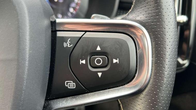 Cutting edge aluminium inlay, Anti-theft alarm including immobiliser/volume sensor + level sensor, Fuel flap with deadlocking system, Key integrated remote control central locking, Locking wheel nuts, Private locking for tailgate, DAB Digital radio, Steering wheel mounted remote controls, 3x3 point rear seatbelts, City safety, Drivers knee airbag, DSTC-Dynamic Stability and Traction Control, Dual stage driver/passenger airbags, Electronic parking brake with auto hold, Fasten seatbelt reminder, First aid kit, Hill descent control, Hill start assist, Inflatable curtain, Passenger airbag cut-off device, Road sign information display, Run off Road Mitigation, Run off Road Protection, Seatbelt reminder and pretensioners, SIPS (Side Impact Protection System), SIPS airbags, Slippery road and hazard light alert, Tyre pressure monitoring system, Vehicle deceleration control with Anti-lock Brake System, Electronic Brake Distribution and Emergency Brake Assist, Warning triangle, WHIPS whiplash protection system - front, Adaptive brake lights with high level LED brake lights, Auto dimming interior mirror, Automatic headlamp levelling, Black stone door mirrors, Black stone roof, Colour coordinated auto folding and heated power door mirrors, Dark tinted glass for rear windows + rear screen + side luggage area window, Dual integrated exhaust pipes with high gloss black surround, Electrically adjustable and heated door mirrors, Embossed rear side roof pillar, Front and rear electric windows, Front tread plates, High gloss black front and rear skid plate, High gloss black lower front bumper, High gloss black mesh front grille with high gloss black surround, High gloss black roof rails, High gloss black window trim, Home safe and approach lighting, LED front fog lights, LED Headlights + Active high beam incorporating daytime running lights, Rain sensor windscreen wipers, Rear side wing doors, Rear wiper, Roof antenna, Roof spoiler, Visible VIN plate, 12V socket in front tunnel console and cargo compartment, 3 seat bench in 2nd row, 3 spoke leather steering wheel with chrome trim, 60/40 split folding rear seat, A-pillar parking ticket holder, Ambient front door and instrumental panel lighting, Black headlining, Bright metal luggage threshold, Centre console cupholders and storage, Driver seat height/tilt/lumbar adjust, Driver's side lower dashboard credit card storage compartment, Extended front seat cushions, Front door pocket and front cupholder illumination, Front footwell illumination, Front tunnel net pocket and integrated waste bin, Glovebox bag hook, Height/reach adjustable steering column, High gloss centre tunnel deco, Illuminated luggage compartment, Illuminated tailgate, Illuminated vanity mirrors + ticket holder, Isofix attachments on rear seats, Leather coloured key integrated remote, Leather/nubuck upholstery, Load protection net, Lockable/illuminated glovebox, Multicolour theatre lights, Passenger seat adjustable for lumbar support, Perforated leather gearknob, Perforated leather steering wheel with gearshift paddles, Rear armrest / integral cup holders / storage tray, Rear reading and courtesy lights, Single front passenger seat, Sports pedals, Underfloor stowage compartment, 12.3" Active TFT crystal driver's instrument display, 9" centre console portrait touch screen, Adjustable steering wheel force, Bluetooth hands free telephone kit, Drive mode selector, Lane keep assist with driver alert control, Oncoming Lane Mitigation, Sensus navigation with European mapping and traffic information, Speed limiter, Speed sensitive steering, Voice control system, Volvo on call,