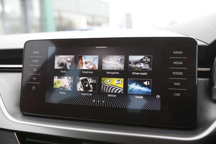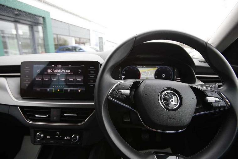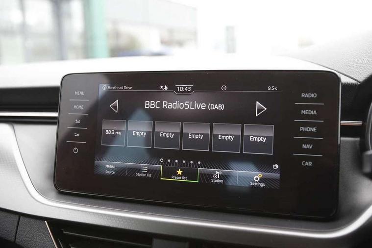 Amundsen satellite navigation with 9.2" touchscreen display, voice control, virtual cockpit and web radio, Bluetooth system, E-call, Front assist system, Gesture control, PAS, Rear view camera, Service indicator, Speed limiter, Virtual cockpit with 10.25" display, Wireless SmartLink for apple car play, android auto and mirrorlink, 8 Speakers, Auxiliary input socket, DAB Digital radio, Auto dimming rear view mirror, Body colour bumpers, Body colour door mirrors and handles, Chrome grille surround, Electric folding door mirrors, Electrically adjustable and heated door mirrors, Front and rear electric windows, Headlight range control, Heated rear window, LED rear lights - low functionality, Light sensors, Privacy glass, Rear fog lights, Rear side wing doors, Rear wiper, 12V Accessory socket in centre console, 3 seat bench in 2nd row, Chrome inner door handles, Dual zone climate control, Front head restraints, Glove compartment with illumination, Ice scraper, Isofix child seat fittings on outer rear seats, ISOFIX on front passenger seat, Manual lumbar support for front seats, Rake/reach adjustable steering wheel, Reading lights, Single front passenger seat, Sun visors with illumination on front passenger, Textile floor mats, Third rear headrest, Top tether for front passenger seat, Umbrella in driver's door, 3x3 point rear seatbelts, Airbags - driver and front passenger, ESP, Front passenger airbag deactivation switch, Front side airbags with curtain airbags, Hill hold control, Manual parking brake, Manual rear child locks, One tone horn, Rear disc brakes, Seatbelt reminder for driver an co-driver, Traction control, Tyre pressure monitor, Anti-theft alarm system with interior monitoring, backup horn, towing protection and remote central locking with SAFE system, Anti-theft wheel bolts, Electronic engine immobilizer, Latice curved decorative insert on the dashboard with hot stamping in copper and white ambient lighting white,