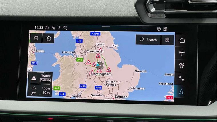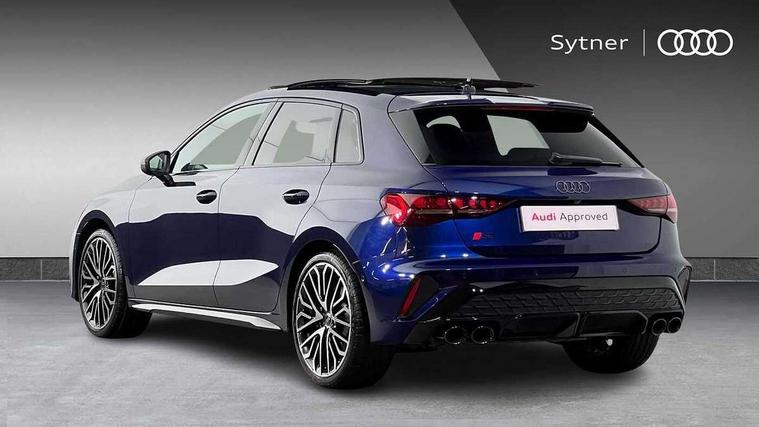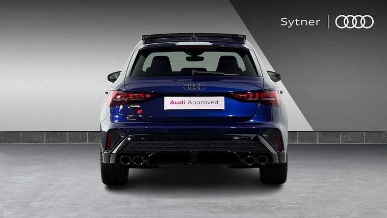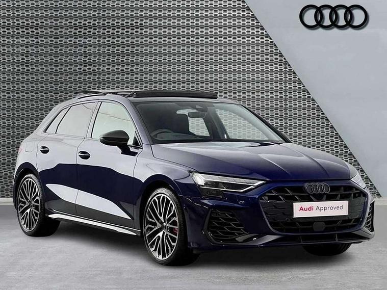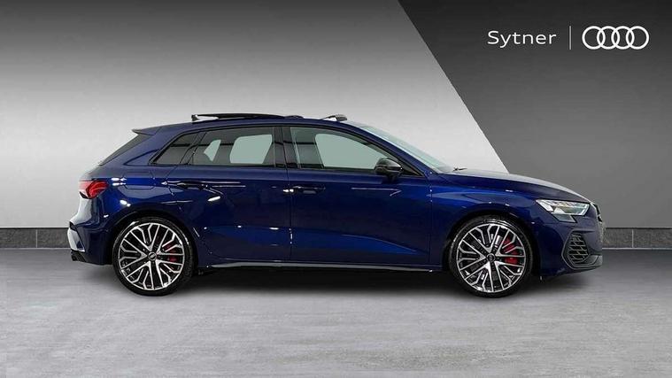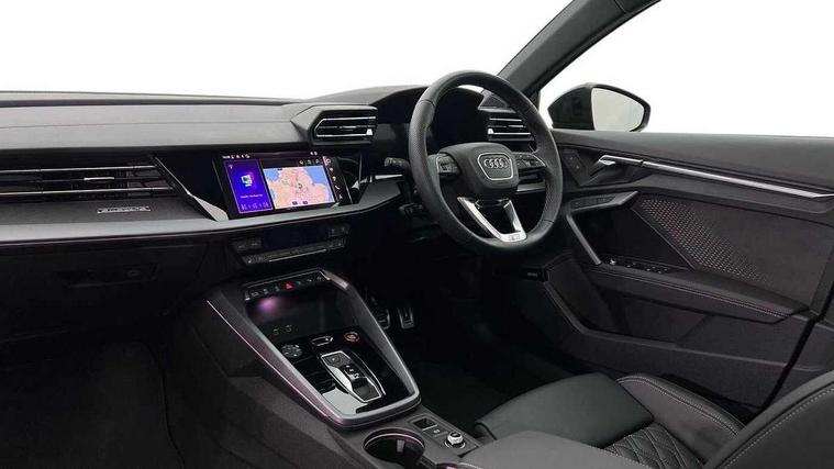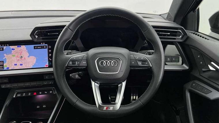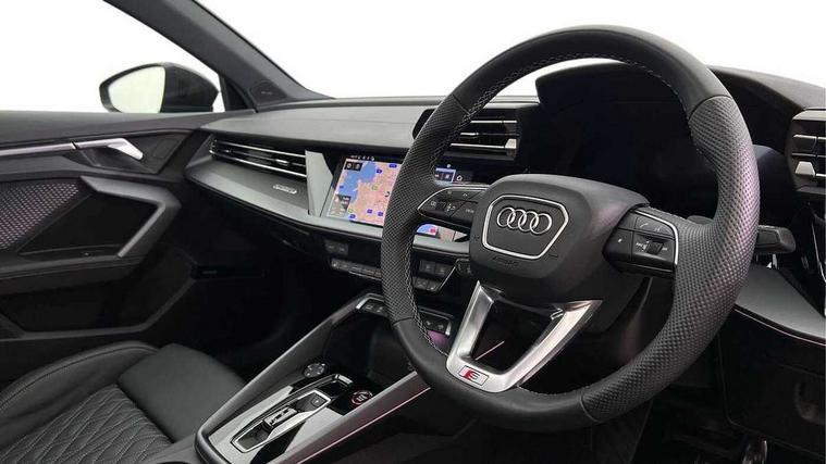 Adjustable speed limiter, Audi drive select, Audi smartphone interface with app store includes wireless Apple carplay, Android auto and Amazon alexa integration, Audi virtual cockpit plus - 12.3" full HD resolution dynamic digital instrument cluster, Automatic start/stop system with recuperation, Bluetooth interface, Camera based traffic sign recognition, Collision avoidance assistant, Distraction and Fatigue warning, e-Call (emergency call), Electromechanical power speed sensitive steering, Lane departure warning system, MMI Navigation Plus with high resolution 10.1" colour touch screen display, Park Assist with parking system Plus, Progressive steering, Service indicator, Tailgate, Trip computer, Voice control system with natural language interaction, S suspension with damper control, Audi Phonebox light with wireless charging, DAB Digital radio, USB ports with charging function in the rear, 3rd brake light, Anthracite grey Audi rings (front and rear), Audi Beam uses LEDs to project Vorsprung onto the ground as you exit your S3, Auto dimming frameless rear view mirror, Black accents front and rear bumpers including air inlets, Black accents in front grille and frame, Black accents window trims strips, Carbon door mirror housings, Electrically adjustable/heated/folding/auto dimming door mirrors with integrated LED indications + kerb view function for passenger side, Exterior model badging, Front electric windows, Headlight washers, Heat insulating glass windscreen, Illuminated door sills with aluminium inserts at the front with S logo, LED daytime running lights, Light and rain sensors, Privacy glass - dark tinted rear window, rear door and side windows, Rear electric windows, Rear side wing doors, Rear wiper, S grille, S3 front bumper with S specific air intake grilles, S3 roof spoiler, 12V socket and storage compartment in front centre console, 3 seat bench in 2nd row, 3 spoke leather multifunction steering wheel with gear shift paddles, 3-zone deluxe automatic air conditioning, 4 way electrically adjustable lumbar support for driver and front passenger, 40/20/40 split folding rear seat bench, Black cloth headlining, Fine Nappa leather upholstery with front sports seats S embossed logo, Front and rear centre armrest in artificial leather, Front and rear headrests, Front/rear floor mats, Heated front seats, Height and reach adjustable steering wheel, Manual boot compartment lid, Rear cup holders, S badging on the steering wheel, Seat side bolsters, Single front passenger seat, Stainless steel pedals and front footrest in black, Aluminium interior elements pack - A3 Sportback, Extended ambient lighting package Pro - S3, Storage package - A3, Technology package pro - A3 S Tronic, 3x3 point rear seat belts, Driver and front passenger airbag with passenger airbag deactivation, Electronic Stabilisation Control (ESC) including ABS, ASR and EDL, First aid kit with warning triangle and 2 safety vests, Front side airbags with head airbags and interaction airbag, Hill hold assist, Pre-sense front with pedestrian and cyclist detection, Seatbelt monitoring, Tyre pressure loss indicator, Anti theft alarm, Anti-theft wheel bolts, Electronically operated child locks, Immobiliser, Remote central locking with safelock, Dash & door inlays in carbon atlas structure, 19" Multi spoke S design gloss turned alloy wheels in anthracite black, Tyre repair kit,