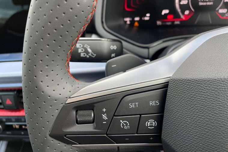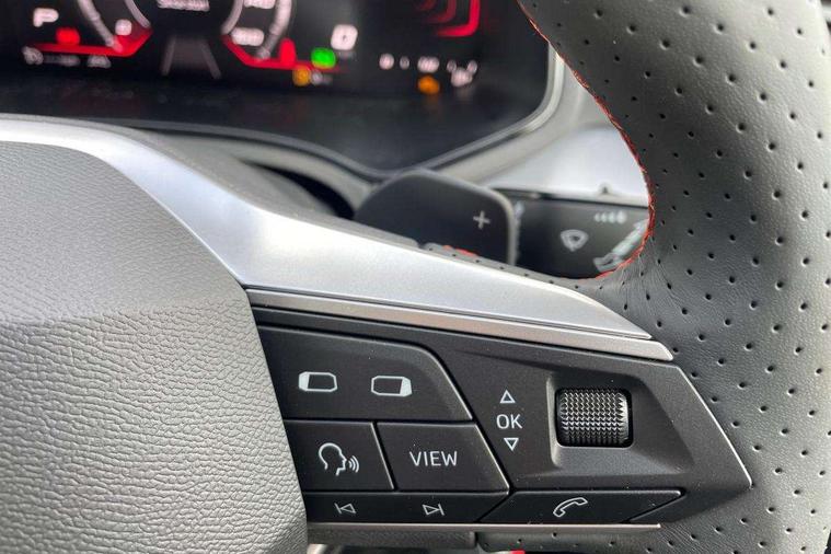 'Lights On' Reminder warning buzzer, 10" Digital cockpit, 9.2" touchscreen navigation system with type C USB socket, Voice control and DAB/AM/FM radio, Auto start and stop system, Bluetooth audio streaming with handsfree system, Digital clock, E-call, Full link smartphone integration with mirror link, wireless apple carplay, Google android auto + USB Type C cable for apple and android devices, Lane assist, Low fuel warning light, Outside temperature gauge, Power Steering, Rear parking sensor, Seat connect plus with safety, service, remote and online, SEAT drive profiles and ECO function, SEAT logo boot release, Speed limiter, Traffic sign recognition, Trip computer, Sports suspension, Auxiliary input socket, Radio/MP3 player, SD card slot, Steering wheel mounted controls, Anti theft roof antenna, Auto dimming rear view mirror, Automatic rain sensing wipers, Black door mirror caps, Black roof spoiler, Black side skirts, Body colour bumpers, Body colour door handles, Brilliant black window surrounds, Dark tinted rear windows, Electric adjustable/heated/folding door mirrors, Electric front windows, Electric headlight adjustment, Electric panoramic sunroof, Electric rear windows, Front/rear fog lights, FULL LED automatic headlights with dynamic headlight range control, coming and leaving home, LED daytime running lights, LED 3rd brake light, LED tail lights, Rear roof spoiler with FR twin exhausts, Rear side wing doors, Rear wiper, 3 seat bench in 2nd row, 60/40 split folding rear seat, Ambient interior lighting, Chrome detailing and black headlining, Dual zone climate control with combination filter, Front courtesy lights, Front cupholders x 2, Front reading lights, Front sport bucket seats, Gear shift indicator, Glovebox, Heated front seats, Height adjustable front and rear headrests (five), Height adjustable front seats, Height/reach adjust steering wheel, Illuminated air vent surrounds, Illuminated boot, Instrument lighting with brightness control, Isofix, Leather multifunction flat bottomed sports steering wheel with gearshift paddles, Microsuede cloth upholstery, Passenger sunvisor, Single front passenger seat, Storage pockets on back of front seats, Sunvisors with mirror and driver side card holder, Safety and driving pack (S) - Ibiza, ABS, Active front headrests, Child locks on rear doors, Electronic stability control, Energy recovery system, Front driver and passenger side airbags with curtain airbag and front passenger airbag deactivation, Hill hold control, Multi-Collision braking, Seat belt reminder for front and rear seats, Tiredness recognition system, Tyre pressure monitoring system, KESSY Keyless entry and go, Locking wheel bolts, Perimeter alarm and interior monitoring with backup horn and tow away protection, Remote central locking + deadlocks, 18" Performance alloy wheels in glossy black,