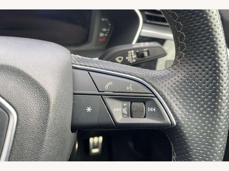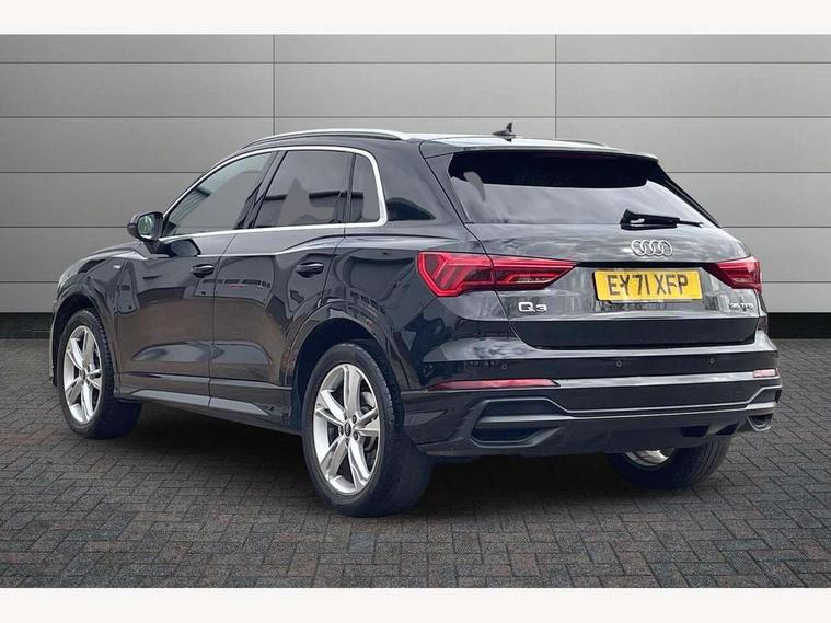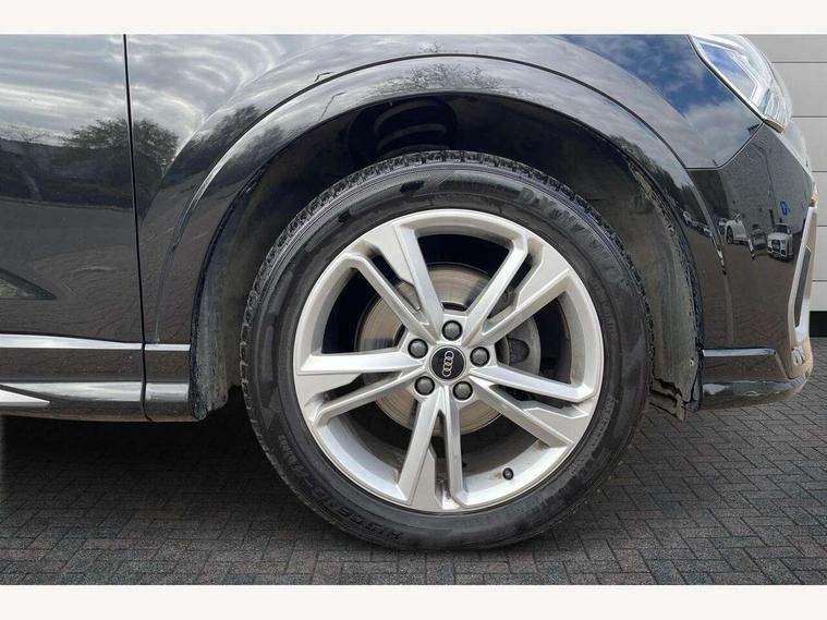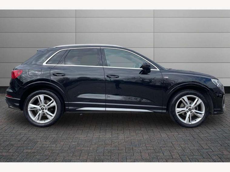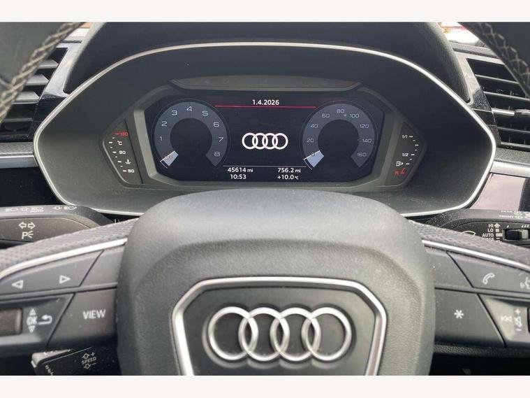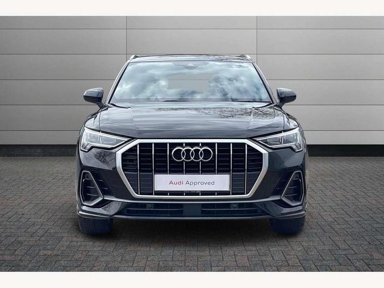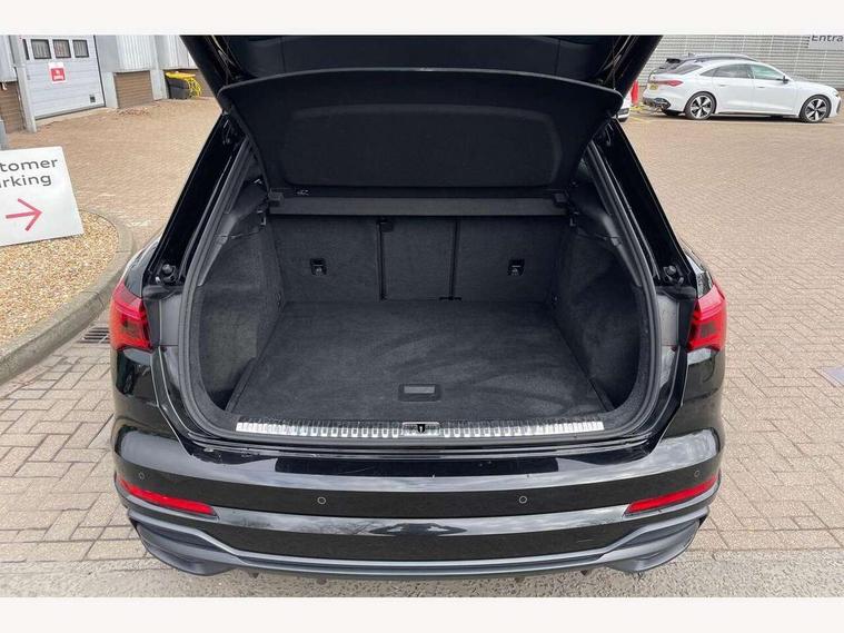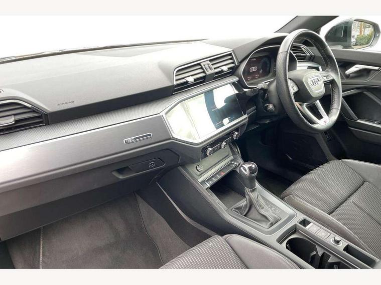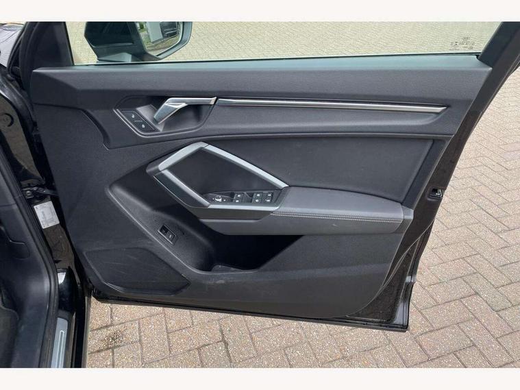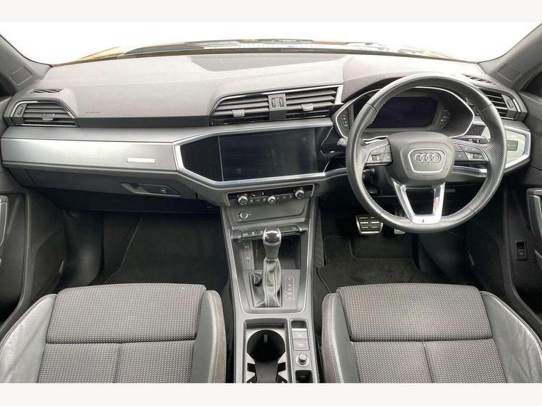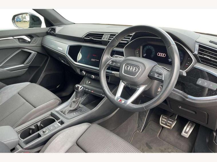Amazon alexa Integration, Audi connect safety and service (e-call), Audi drive select, Audi lane departure warning, Audi smartphone interface includes wireless Apple carplay/Android Auto, Audi Virtual Cockpit - 10.25" display, Bluetooth interface, Camera based traffic sign recognition, MMI Navigation Plus with high resolution 10.1 inch touchscreen colour display, Power operated tailgate, Progressive steering, Service interval indicator, Start stop system with recuperation, Voice control system with natural language interaction, 48V Mild hybrid technology, Sports suspension, 2 USB-C ports with charge and data functions, 6 passive loudspeakers, DAB digital radio module, Acoustic windscreen, Aluminium roof rails, Aluminium window trim, Auto dimming frameless rear view mirror, Body coloured bumpers, Electrically folding, adjustable and heated door mirrors with integrated LED side indicators and kerb view function for passenger side, Front and rear electric windows, Front fog lights, Front side air inlets in matt platinum grey, Front spoiler blade in matt platinum grey, Grille vertical bars in aluminium silver/Matt, High gloss black finish B and C pillars, LED headlights with LED daytime running lights and dynamic rear indicator, LED rear lights, Privacy glass dark tinted rear and rear-side windows (from B-pillar backwards), Rain and light sensors, Rear diffuser strip in matt titanium black, S line badges on front wings, S Line front and rear bumpers, Side skirt insert in matt Platinium grey, Silver chrome grille surround, Titanium black radiator grille, 12V socket in rear centre console, 40:20:40 folding with manual adjustment for 60:40 forwards/backwards position and backrest angle, Adjustable rear seat bench/backrest with centre armrest and cupholder, Black cloth headlining, Dual zone electronic climate control, Front and rear black floor mats with contrast stitching in rock grey, Front and rear headrests, Front and rear roof module including reading lights, Front centre armrest, Glove compartment lighting, Height and reach adjustable steering wheel, Illuminated door sill trims with S logo, ISOFIX child seat mounting for front passenger with airbag deactivation and outer rear seat including top tether attachment point for outer rear seats, Luggage compartment light, Manual front seats with height adjustment, Perforated leather gearknob, Stainless steel luggage compartment sill finisher, Stainless steel pedals, Tool kit, Non smoking pack - Q3, 3x3 point rear seatbelts, 6 airbags - Driver, front passenger, curtain and side windows, Audi pre-sense front with pedestrain and cyclist recognition, Electrically operated child locks on rear doors, Electromechanical parking brake, Electronic stabilisation control including ABS, ASR and EDL, Hill descent control, Hill hold assist, Pre sense basic, Seatbelt monitoring, Tyre pressure warning, Warning triangle and first aid kit, Anti theft alarm, Anti theft wheel bolts, Remote central locking, Dark matt brushed aluminium inlay, Detail dashboard around MMI touch colour display in glass look, black with surround in aluminium look, Leatherette door armrest, Tyre repair kit,