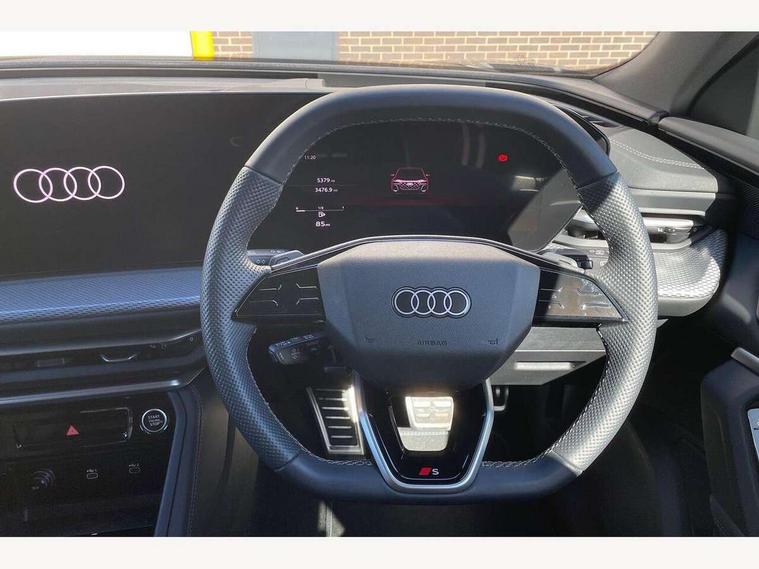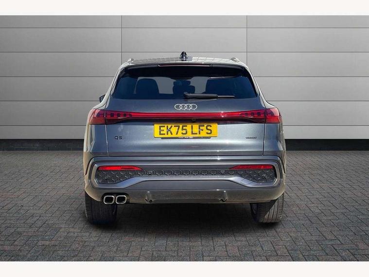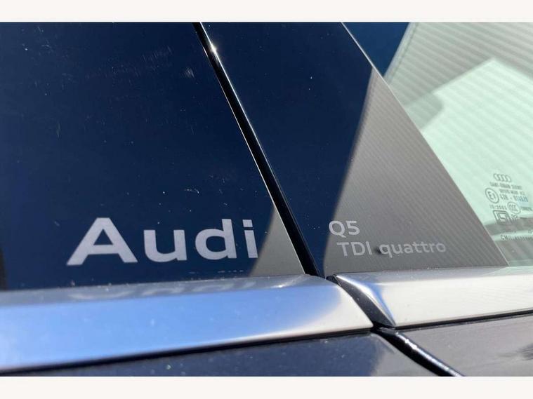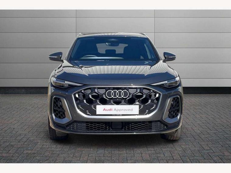 Adaptive cruise control, Advanced driver attention alert, Audi application store, Audi connect emergency call and service, Audi drive select, Audi smartphone interface, Audi virtual cockpit plus with 11.9" OLED colour display, Camera based traffic sign recognition, Fatigue monitor, Front cross traffic intersection assist, Lane departure warning system, MMI navigation plus with high resolution 14.5" OLED touchscreen colour display, Park assist plus, Parking system plus with 360 display, PAS, Reversing camera, Traffic sign based speed limiter, 2 USB-C ports in both the front and rear, Audi sound system impressive sound with 8 loudspeakers including centre speaker and subwoofer, 6-channel amplifier with a total output of 180 watts, DAB Digital radio, Smartphone compartment with wireless charging, Aluminium roof rails, Auto dimming rear view mirror, Body coloured door mirrors, Coming/leaving home lighting function, Electrically adjustable heated and folding + automatically dimming exterior mirrors, Front and rear electric windows, Front door sill trims with aluminium inlays, illuminated with 'S' logo, Grill frame, inlay and front air inlets in matt anthracite chrome, Headlight cleaning system, Heated rear window, High beam assist, High gloss window surrounds, LED headlights plus incl. digital DRL, dynamic coming and leaving home function with turning/all weather/motorway/manouevring and intersection lights, LED rear lights pro incl. dynamic rear indicators and illuminated light strip with animated coming and leaving home function, Logo projection light in exterior mirrors, Privacy glass, Projection third brake light for rear window in LED, Radiator grille in phantom black, Rear and side windows with heat insulating glass, Rear honeycombe grille in matt black with inlay in matt anthracite chrome, Rear side wing doors, Rear wash/wipe, S Line badge on the front wings, S line bumpers in contrasting Volcano grey metallic paint finish, Towbar preparation, Windscreen with acoustic glazing, 3 rear head restraints, 3 seat bench in 2nd row, 3 spoke leather steering wheel with multi-function buttons with touch control, flattened on top and bottom, with S badging and contrast stitching, Comfort centre armrest front, Deluxe 3 zone electronic climate control, Front and rear floor mats, Front sport seats with integrated head restraints, Headlining in black cloth, Heated front seats, i-Size child seat mounting on the front passenger side and outer rear seats, i-Size and top tether on the outer rear seats, Interior trim in aluminium look, Luggage compartment lid, electrically opening and closing, Manual steering column adjustment, S embossed logo on front sport seats, Single front passenger seat, Softwrap in leatherette, Stainless steel pedals and footrest, Steering wheel grips in perforated leather and shift paddles, Ambient lighting package plus - Q5, 3x3 point rear seatbelts, ABS, Acoustic vehicle alerting system, Convenience key with safelock, Driver and front passenger airbag with passenger airbag deactivation, Electric child safety locks, First aid kit with warning triangle and high visibility vests, Front emergency brake assist, Front side airbags with head airbag system and front interaction airbag, Hill hold assist, Rear seat occupant reminder, Tyre pressure loss indicator, Anti theft alarm, Anti-theft wheel bolts, Accent surfaces and control buttons in gloss black, Anthracite matt brushed aluminium inlays with linear embossing, Black dashboard with contrast stitching, Upper and lower interior elements in artificial leather, Tyre repair kit,