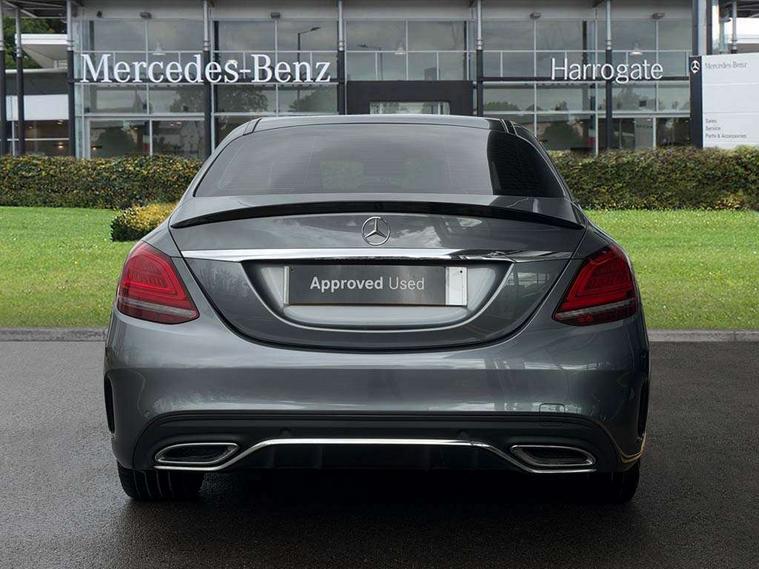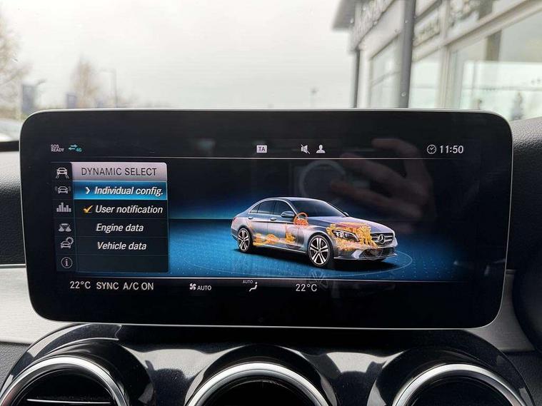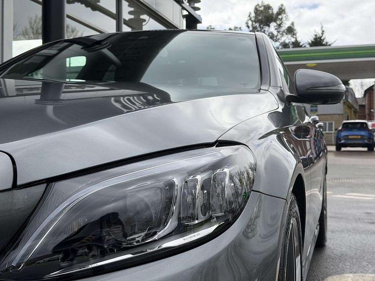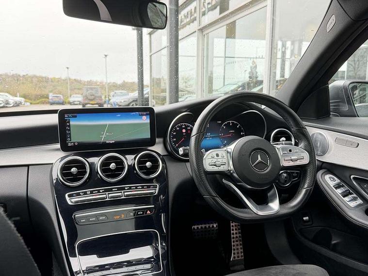 12.3" digital instrument cluster display, 360 degree parking camera, Active park assist with parktronic system, Attention assist, Bluetooth system, Collision prevention assist plus, Comand Online HDD Nav with media interface, radio/CD/DVD/MP3, 10.25 screen, linguatronic voice control, DYNAMIC SELECT with a choice of driving modes (ECO, Comfort, Sport, Sport+ and Individual), Multi function trip computer, Outside temperature gauge, Remote boot release, Service indicator (ASSYST PLUS), Smartphone integration with Apple CarPlay and Android auto, Wireless charging, Diesel particulate filter, 2 USB ports in centre console, Burmester surround sound system, DAB Digital radio, SD card slot, Steering wheel mounted audio controls, Adaptive brake lights, Aerial in rear window, AMG body styling, Body coloured bumpers, Body coloured door mirrors, Chrome pins diamond radiator grille with integrated stars, Electric front sliding and fixed rear panoramic glass sunroof, Electric windows one touch open/close, Electrically adjustable and heated door mirrors, Green tinted glass, Heated windscreen washers, LED daytime running lights, LED Indicators, LED tail lights, LED third brake light, Multi beam LED headlights, Rain sensor windscreen wipers, Side windows surround in polished aluminium, Twin exhaust pipes, 2 cupholders in front centre console, 3 spoke flat bottom AMG steering wheel in nappa leather, 40:20:40 split folding rear seats, AMG floormats, AMG sports seats, Auto Mercedes-Benz child seat recognition sensor, Dual zone automatic climate control, Electric front seat height adjustment, Front and rear head restraints, Front centre armrest with storage compartment, Front door sills with Mercedes benz lettering, Gearshift paddles, Heated front seats, Illuminated glovebox, Interior lighting - 64 colour Ambient lighting, Multifunction steering wheel, Rear top tether child seat ISOFIX attachment, Sports pedals with stainless steel surfaces and rubber studs, Sunvisors with illuminated vanity mirrors, Lighting pack - C class, Mirror pack - C Class, Seat comfort pack - C Class, Stowage space pack - C Class, 3 rear 3 point seatbelts, ABS with Brake Assist, Active bonnet, Adaptive brake system, Black seat belts, Brake calipers with Mercedes-Benz lettering + perforated brake discs, Child proof door locks, Crash sensor, Drivers knee airbag, Drivers pelvis airbag, Dual stage driver/passenger airbags, Electronic parking brake, ESP with ASR, Front passenger seat occupancy sensor, Front side airbags, Hill start assist, Rear seatbelt warning indicator, Tyre pressure monitoring system, Warning triangle and first aid kit, Window airbags, Alarm system/interior protection/immobiliser, Chrome surround electric key, Keyless entry and keyless start, Remote central locking, Tyre inflation kit,