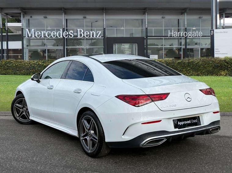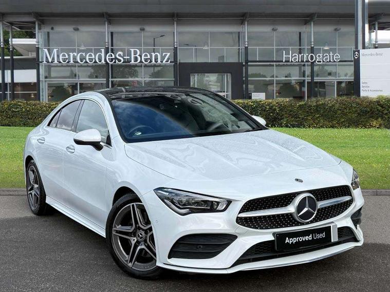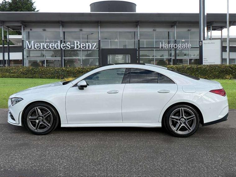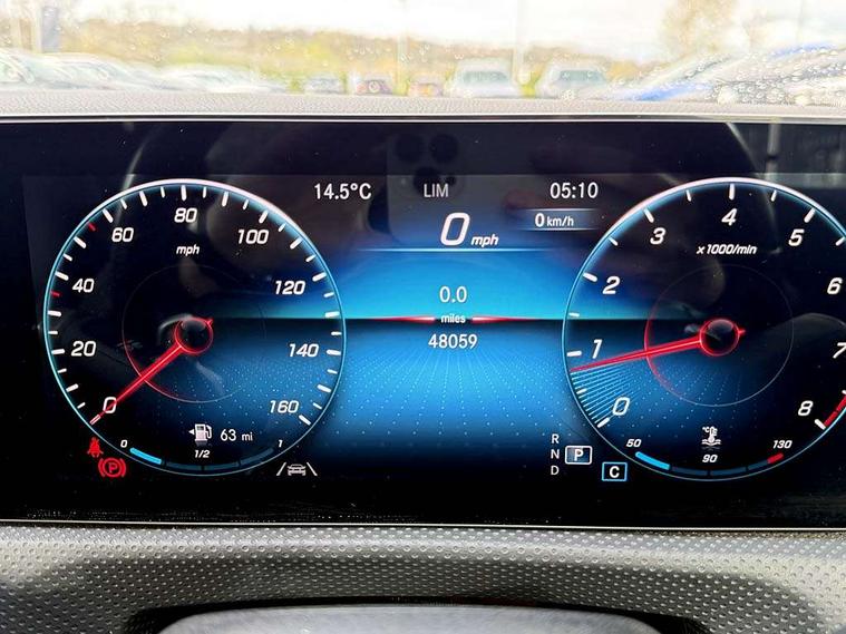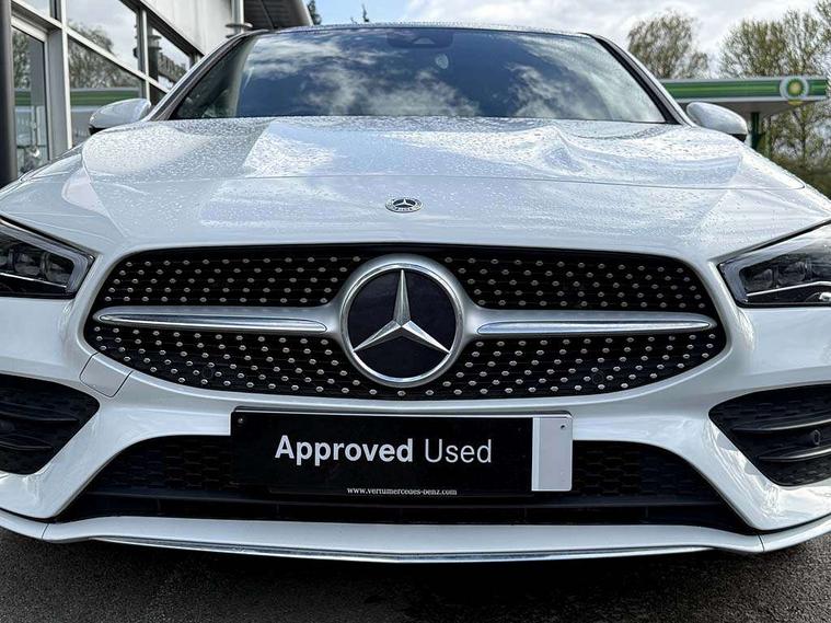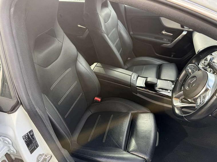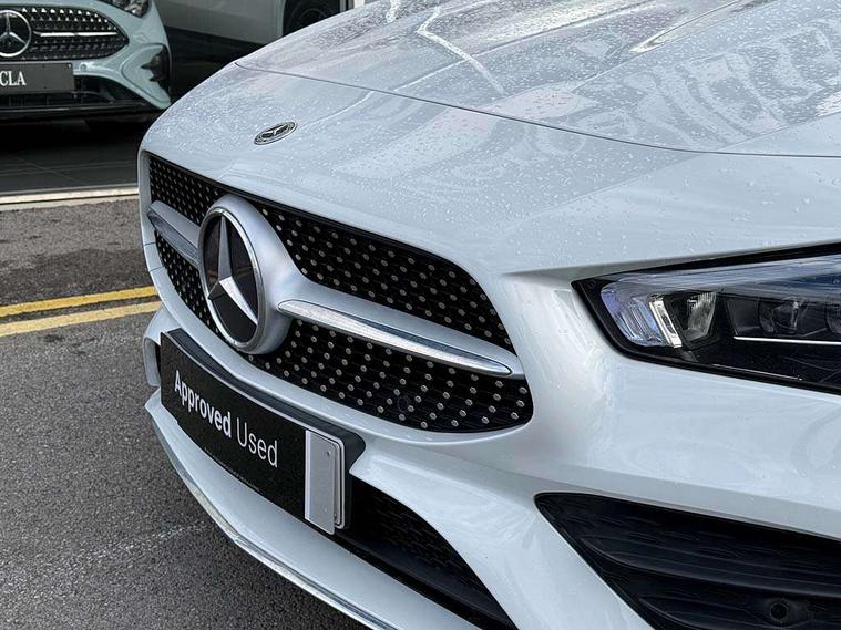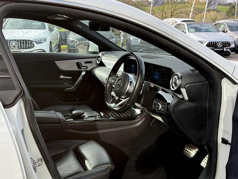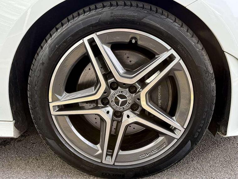 10.25 inch Instrument display with digital cockpit, 10.25 inch touchscreen central media display, Attention assist - Monitors steering behaviour and long journey fatigue, Bluetooth connection, Car wash mode, DYNAMIC SELECT with a choice of driving modes (ECO, Comfort, Sport and Individual), ECO start/stop function, Fluid level warning indicator for fuel, oil, coolant and washer fluid, Hard-disk navigation, Hey Mercedes Voice activation, Lamp failure indicator, Mercedes me connect including emergency call system, accident recovery, breakdown management and maintenance, Mercedes me remote services, Outside temperature gauge, Owners manual and service booklet in English, Pre-installation of private car share, Preinstallation for Mercedes Benz link, Radio aerial integrated into front and rear windshields, Service indicator (ASSYST), Smartphone integration with Apple CarPlay and Android auto, Traffic sign assist, Trip computer in multifunction display with current consumption indicator, 7G-DCT 7 speed automatic transmission, Lowered comfort suspension, Rear axle multi-link, DAB digital radio tuner, MBUX multimedia system with DAB digital radio and touchpad including satellite navigation, Mid-range sound system, USB (type C) ports (2) in stowage compartment and 1 in front of centre console, Adaptive brake lights, AMG body styling with AMG front apron and rear apron and visible exhaust tailpipe in chrome trim elements, AMG bodystyling side skirts, Auto headlights, Body colour bumpers, Body colour door handles, Chrome beltline strips, Chrome weather strip, Diamond radiator grille pins in chrome with silver painted louvres and chrome insert, Electric panoramic sliding sunroof, Electric windows, Electrically adjustable and heated door mirrors with integrated LED indicators, Exhaust system with 2 Visible tailpipe trim elements and rear apron with trim in chrome, Headlamp assist automatic headlamp activation, Heated glass rear windscreen + timer control, High level LED third brake light, Integrated LED daytime running lights, Interior mirror with black reading lamps and frameless, LED tail lamp, Multibeam LED headlamps with adaptive highbeam assist plus, Privacy glass with dark tinting on rear side windows and rear window, Rain sensing windscreen wipers with two sensitivity settings, Rear boot, Rear fog lamp, Rear side wing doors, Window line trim strip in chrome, 3 seat bench in 2nd row, 3 spoke flattened bottom nappa leather multifunction steering wheel with perforated leather in grip area, 40:20:40 split folding rear seats with backrest, Air conditioning - Two zone thermotronic luxury automatic climate control with display, Air vents with surround in silver chrome, Automatic child seat recognition sensor, Black roof lining, Brushed stainless steel sports pedals with rubber studs, Floor mats with stitched AMG lettering, Front centre armrest with stowage, Galvanished gear shift paddles on steering wheel, Heated front seats, Illuminated front door sills with changeable cover, Illuminated glove compartment stowage, Interior lighting - 64 colour Ambient lighting, Luggage net on driver/front passenger seat backrest, Manually height and reach adjustable steering column, Rear armrest with two integral cup holders for drinks, Rear head restraints, Single front passenger seat, Sport seats with fixed head restraints, Stowage compartment in centre console with retractable cover, Sunvisors with illuminated vanity mirrors, Touchpad on center console, Twin front cupholders, Two outer rear seat isofix and top tether child seat fixing points, Keyless go pack - CLA, Light and sight pack - CLA, Mirror pack - CLA, Parking package - CLA, Seat comfort pack - CLA, Active bonnet pedestrain safety measure which detects an impact and raises bonnet by 65mm, Adaptive brake assist with hold function and hill start assist, Anti-lock braking system (ABS), Black seat belts, Bonnet with power domes, Brake pad wear warning indicator, Childproof locks manually operated for rear doors and electrically operated for rear power windows, Crash responsive emergency lighting, Driver and front passenger head and sidebags, Driver and front passenger windowbags, Drivers knee airbag, Dual stage driver and front passenger airbags, Electric parking brake, Electronic stability programme with acceleration skid control, ESP curve dynamic assist, Front and rear seatbelt reminder, Front passenger seat occupancy sensor, Three point rear seat belts, Tyre pressure monitoring system, Warning triangle and first aid kit, Remote central locking and crash sensor with emergency opening function, Urban guard vehicle protection system with immobiliser and interior protection, Light aluminium with longitudinal grain interior trim, 18" 5 twin spoke design alloy wheels painted in titanium grey with high sheen finish, Summer tyres, Tirefit tyre sealant kit,