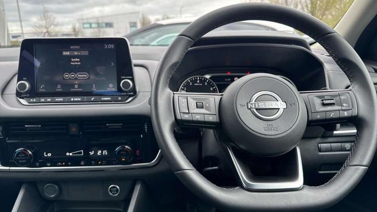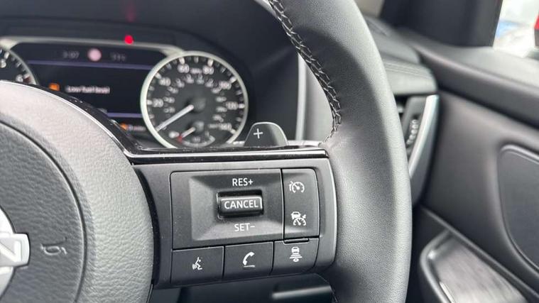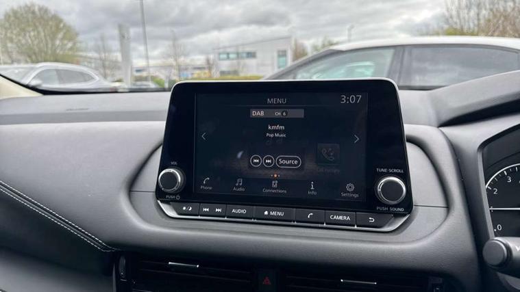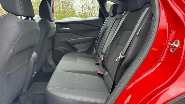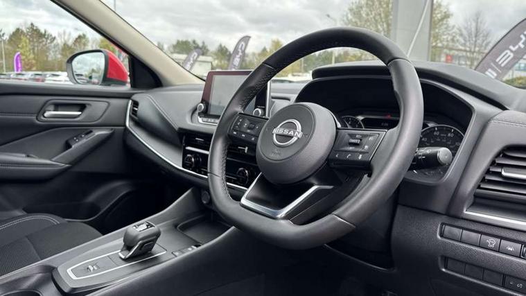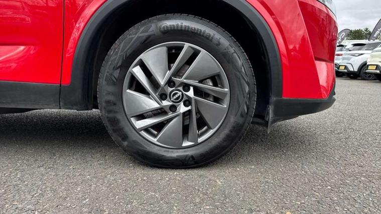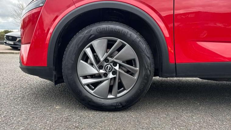 7" High definition full colour TFT screen combimeter, Android auto/Apple CarPlay (Wired), Blind spot warning, Drive modes (sport, normal, eco), Electric speed sensitive power steering, Emergency and breakdown call, Idle stop/start system, Intelligent Cruise control (ICC), Intelligent driver alert system, Intelligent forward collision warning, Intelligent lane intervention, Lane departure prevention, Lane departure warning system, Maximum speed limiter, Nissan connect 8" touchscreen infotainment system, Push button starter, Rear cross traffic alert, Rear parking sensors, Rear view camera, Traffic sign recognition with legal speed adjustment, Trip computer, 6 speakers, AM/FM audio system with DAB, Bluetooth audio streaming, Front USB connections (Type-A and Type-C), Auto dimming rear view mirror, Auto rear wiper when reversing, Automatic hazard signal with emergency stop signal, Body colour mirror caps, Body coloured door handles, Bodyside mouldings, Chrome side window finisher, Door handle with button, Electric auto folding door mirrors, Electrically adjustable and heated door mirrors with LED turn indicator, Follow me home headlights, High beam assist, Intelligent auto headlights, LED 3rd brake light, LED daytime running lights, LED Headlights, LED rear lights, One touch front and rear electric windows with remote opening and closing, Partially body coloured bumpers, Rear reversing light (bulb lighting), Rear roof spoiler, Rear side wing doors, Shark fin antenna, Splash free rain sensing wipers, Three blink turn signal, 12v power socket in dashboard and luggage, 2x Rear coat hooks, 3 bench rear seats in 2nd row, 3 rear headrests, 4 folding assist grip, 6-way manually adjustable driver's seat, 60/40 split folding rear seat bench, Centre console storage tray, Chrome interior door handles, Cloth monoform upholstery, Driver and front passenger sunvisors with illuminated vanity mirrors, Dual zone automatic climate control with pollen filter, Electrically adjustable lumbar support for driver, Front and rear door storage, Front centre console and armrest, Front cupholders x 2, Front door with bottle holders, Glovebox with light, Hard trunk cover, Height adjustable driver's seat, Height adjustable front headrests, Height adjustable passenger seat, Luggage space lighting, Manually adjustable passenger (slide recline + lifter), Multifunction steering wheel, Passenger seat back pocket, Rear armrest with 2 cupholders, Rear door bottle holders, Single front passenger seat, Steering wheel gearshift paddles, Steering wheel switches, Sunglasses holder, Tilt/telescopic adjustable steering wheel, Two rear isofix child seat anchorage points with top tether, 3x3 point rear seatbelt pretensioners + load limiters, ABS with EBD and brake assist, Active brake limited slip, Auto hold function, Child locks on rear doors, Curtain and front side, far side airbags, Driver and passenger airbags, Driver, passenger and 2nd row rear seat belt reminder, Electronic parking brake, Front seatbelt pretensioners + load limiters, Height adjustable front seatbelts, Hill start assist, Intelligent blind spot intervention, Intelligent front emergency braking with pedestrian, cyclist recognition and junction assist, Intelligent rear automatic braking, Tyre pressure monitoring system, Vehicle dynamic control, Capless fuel filler, Engine immobiliser, Intelligent Key, Remote central door locking with deadlocking, Thatcham Cat.1 alarm, Interior instrumental panel A finisher, 17" Alloy wheels, Tyre puncture repair kit,