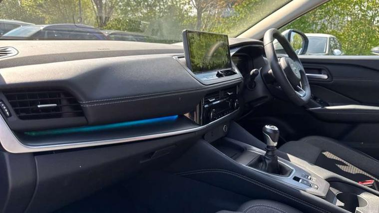 360 degree Intelligent around view monitor with moving object detection, Blind spot intervention, Blind spot warning, Drive assist, Drive assist custom mode, Drive modes (sport, normal, eco), Driver drowsiness and attention warning, Electric speed sensitive power steering, Emergency and breakdown call, Emergency lane keep assist, Emergency Stop Signal (ESS), Engine start/stop button, Event data recorder, Front and rear parking sensors, Full Digital 12.3" TFT Digital Combimeter, Google virtual personal assistance, Idle stop/start system, In-car WIFI hotspot, Intelligent Cruise control (ICC), Intelligent forward collision warning, Intelligent speed assist, Lane departure warning system, Nissan connect 12.3 inch touchscreen infotainment system, Nissan connect navigation with google maps, Nissan connect services 2.0 (Google Automotive System), Outside temperature sensor, Rear cross traffic alert, Reversing detection, Wireless Apple CarPlay/Android Auto, Wireless charging pad, Limited slip differential, 2 front USB-C ports, 2 rear USB-C ports, 6 speakers, AM/FM audio system with DAB, Bluetooth audio streaming, Auto rear wiper when reversing, Body colour mirror caps, Body coloured door handles, Bodyside mouldings, Chrome side window finisher, Electric auto folding door mirrors, Electrically adjustable and heated door mirrors with LED turn indicator, Follow me home headlights, High beam assist, Intelligent auto headlights, LED 3rd brake light, LED daytime running lights, LED Headlights, LED rear lights, One touch front and rear electric windows with remote opening and closing, One touch passenger window, Partially body coloured bumpers, Rear privacy glass, Rear roof spoiler, Rear side wing doors, Rear styling plate, Shark fin antenna, Splash free rain sensing wipers, Super UV and infrared cut glass, Three blink turn signal, 3 bench rear seats in 2nd row, 3 rear headrests, 60/40 split folding rear seat bench, Chrome interior door handles, Cloth upholstery, Dark headlining, Driver seat back pocket, Dual zone automatic climate control with pollen filter, Front door with bottle holders, Height adjustable front headrests, Leather shift knob, Luggage board system, Luggage space lighting, Multifunction steering wheel, Passenger seat back pocket, Rear door bottle holders, RGB ambient light (Full area coverage), Single front passenger seat, Smooth leather steering wheel, Tilt/telescopic adjustable steering wheel, Two rear isofix child seat anchorage points with top tether, 3x3 point rear seatbelt pretensioners + load limiters, Autonomous emergency braking, Child locks on rear doors, Curtain and front side, far side airbags, Driver and passenger airbags, Driver, passenger and 2nd row rear seat belt reminder, Electric handbrake with auto hold function, Front seatbelt pretensioners + load limiters, Height adjustable front seatbelts, Hill start assist, intelligent front emergency braking, Rear automatic braking, Tyre pressure monitoring system, Vehicle dynamic control, Engine immobiliser, Intelligent key with walk away lock and approach unlock functions, Remote central door locking with deadlocking, Thatcham alarm, 18" Diamond cut alloy wheels, Tyre puncture repair kit,