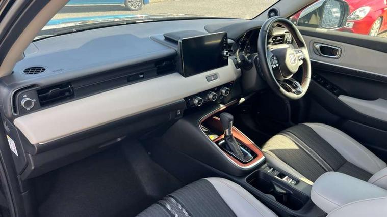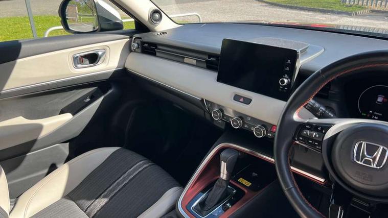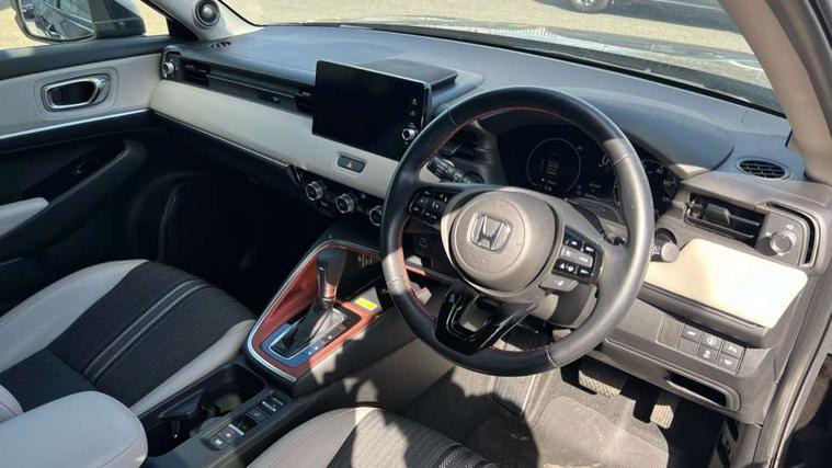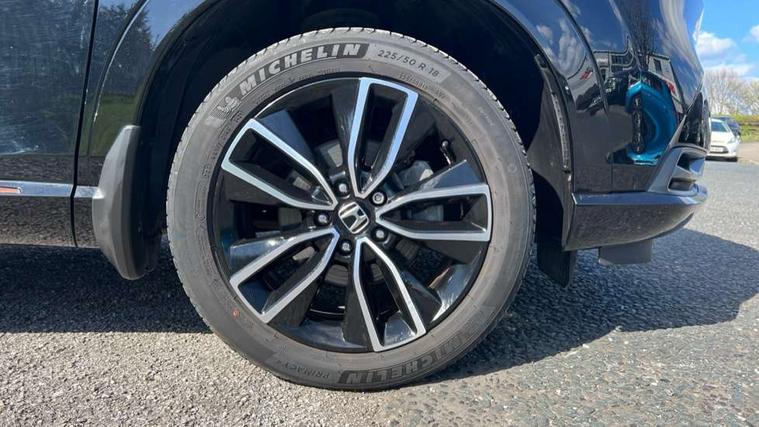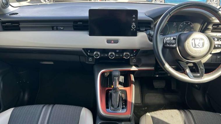 7" TFT instrument cluster, Adjustable speed limiter, Agile handling assist, BLIS (Blind Spot Information System) with Cross Traffic Monitor, Bluetooth hands free telephone connection, Drive modes select (Eco, normal and sport), eCall emergency system, Electric power steering, Emergency stop signalling system, Forward collision warning, Handsfree power tailgate with walkaway close, Honda CONNECT with navigation, 9" touchscreen, AM/FM/DAB/Apple Carplay and android auto, Honda sensing with blind spot information, adaptive cruise control and lane keep assist, Idle stop, Intelligent speed limiter, Low speed following, Rear parking sensors and rear view camera, Tachometer, Traffic sign recognition, WiFi connectivity, Wireless charger, Vehicle stability assist, 'Shark fin' mobile antenna, 2 USB sockets in rear, 2x USB Front socket (1 data & 1 charge), Premium audio system, Steering wheel mounted remote controls, Auto dimming rear view mirror, Auto headlight levelling, Auto high beam, Automatic coming home lighting, Automatic headlights, Automatic rain sensing wipers, Body colour bumpers, Body colour tailgate spoiler, Body coloured door handles, Electric front and rear windows, Electrically adjustable and heated door mirrors, Exterior and interior unique colour scheme (orange, white & blue accents), Front sequential turn, Front wiper de-icer, Headlight washers, Heated front windscreen, Heated rear window, High gloss side window surrounds, High level third brake light, LED cornering lights, LED daytime running lights, LED front fog lights, LED headlamps, Rear side wing doors, Rear wiper, Retractable/reverse auto tilt door mirrors, Roof rails, Smoked tail lights, Two tone roof, Variable front intermittent wipers, Windscreen shadeband, 3 rear headrests, 3 seat bench in 2nd row, 60/40 split folding rear seat, Ambient interior lighting, Cargo net hooks, Courtesy lights, Driver seat back pocket, Driver's seat height adjustment, Driver/passenger sunvisors with illuminated vanity mirrors, Dual automatic air conditioning, Front and rear map reading lights, Front head restraints, Front seat armrests, Heated front seats, Heated steering wheel, Isofix points, Luggage area under floor storage box, Magic seat flexibility system, Manual height/reach adjust steering wheel, Paddle shift controls, Passenger seat back pocket, Rear centre armrest, Rear ventilation, Single front passenger seat, Smooth leather steering wheel, Tonneau cover, Trunk cargo band, Trunk light, 3x3 point rear seatbelts, ABS+EBD+Brake assist, Anti-whiplash front headrests, Collision mitigation braking system, Collision mitigation throttle control, Deflation detection system, Dual front SRS airbags, Electric child locks, Electronic parking brake, Front and rear curtain airbags, Front and rear safety belts with Emergency Locking Retractor, Front side airbags, Hill descent control, Hill start assist, Low speed safety system, Passenger SRS airbag cut-off device, Regenerative braking system, Door deadlocks, Immobiliser, Keyless smart entry with push button start, Mirrors and windows key fob operation, Remote central locking with 2 remote folding keys, Security alarm, 18" Black cut alloy wheels, Tyre repair kit,