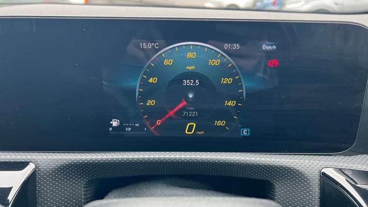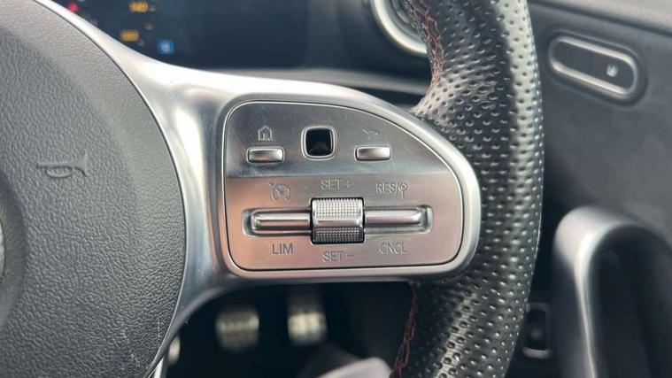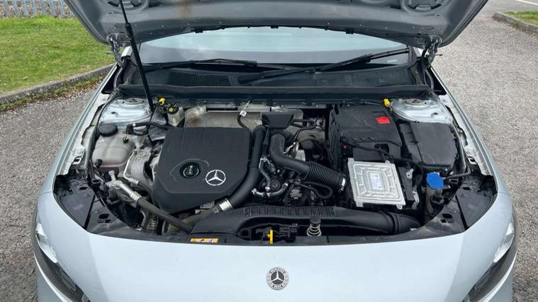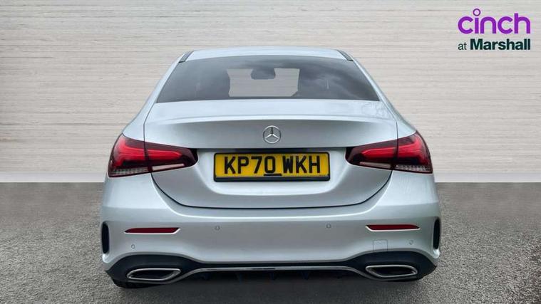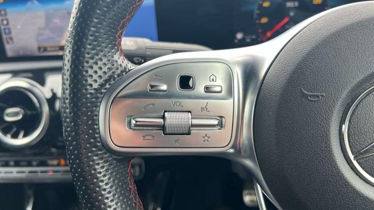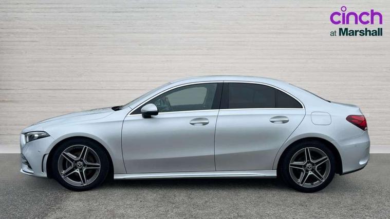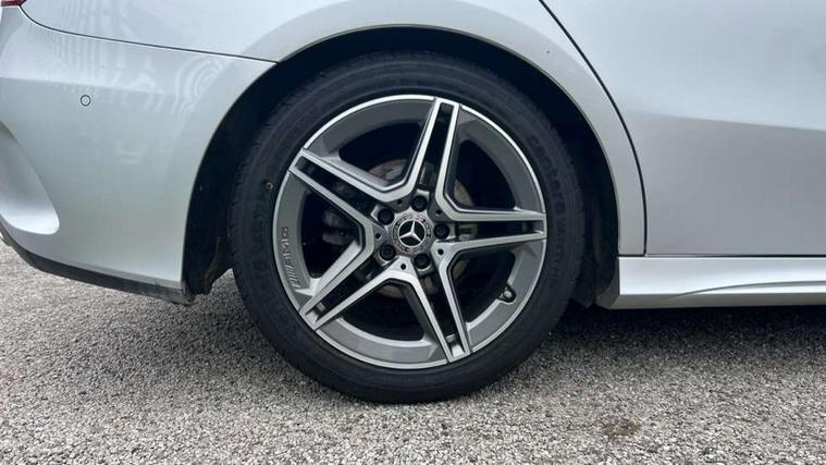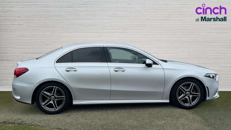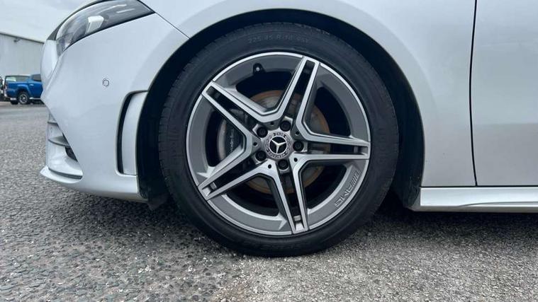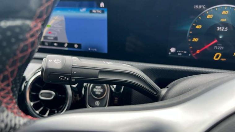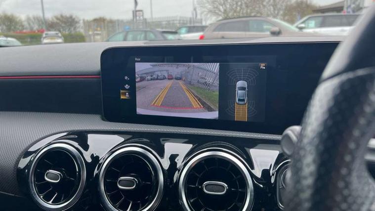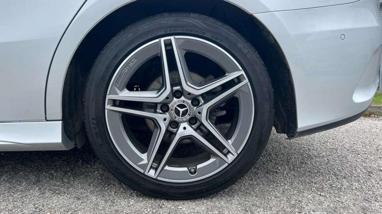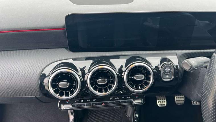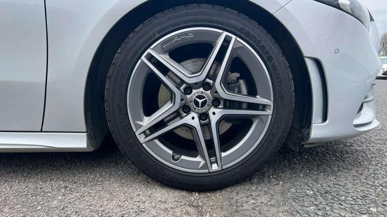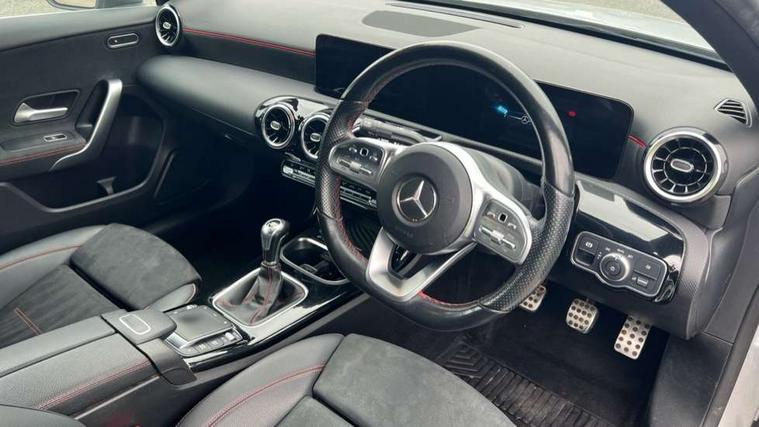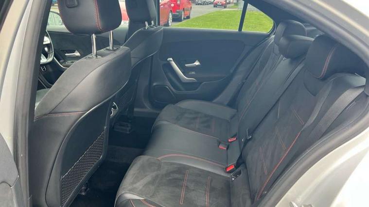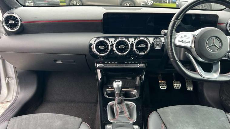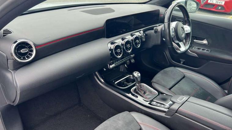 10.25" media display, 180 degree rear view camera with parking guidelines, 7" colour screen in instrument panel, Active parking assist with visual and audible warning of detected obstacles, Attention assist, Brake pad wear indicator warning light, Car wash mode, Cruise control + speed limiter, Direct steering, Dual bluetooth interfaces, DYNAMIC SELECT with a choice of driving modes (ECO, Comfort, Sport and Individual), ECO start/stop function, Fluid level warning indicator for fuel, oil, coolant and washer fluid, Hard-disk navigation, Hey Mercedes Voice activation, Lamp failure indicator, Mercedes me connect including emergency call system, accident recovery, breakdown and maintenance management, Mercedes me remote services, Outside temperature gauge, Owners manual in English, Pre-installation for private car sharing, Preinstallation for Mercedes Benz link, Service indicator (ASSYST), Smartphone integration with Apple CarPlay and Android auto, Speed sensitive power steering, Trip computer, Ultrasonic sensors positioned in the front and rear bumpers, Wireless charging, Lowered comfort suspension, Rear axle torsion beam, 2 USB ports (type C) in rear stowage compartment and one in front of center console, 6 speakers, DAB Digital radio, MBUX multimedia system with DAB digital radio and touchpad including satellite navigation, Mercedes-Benz sound system - 100W, 4 Electric Front and Rear windows, Adaptive brake lights, AMG bodystyling - Front apron with splitter in chrome, rear apron with chrome trim and chrome visible trim elements in tailpipe, Black weather strip, Body colour bumpers, Body colour door handles, Body colour side skirt, Body coloured door mirrors, Chrome beltline trim, Diamond radiator grille with chrome pins and silver louvre + chrome insert, Electric adjustable and heated door mirrors with integrated LED side indicators, Exhaust system - Twin visible tailpipes in polished stainless steel, Headlamp assist automatic headlamp activation, Heated glass rear windscreen + timer control, LED high performance headlamps with integrated LED daytime running lights, LED tail lamp, LED third brake light, Privacy glass, Radio aerial, Rain sensing windscreen wipers with two sensitivity settings, Rear fog lights, Window line trim strip in chrome, 3 Spoke flat bottom leather multi function steering wheel with perforated leather in grip area, 40:20:40 split folding rear seats, Artico man-made leather/Microfibre Dinamica upholstery with red contrast stitching, Auto Mercedes-Benz child seat recognition sensor, Black air vents with surround in silver chrome, Black roof lining, Brushed stainless steel sports pedals with rubber studs, Controller on centre console with chrome surround, Floor mats with stitched edging and AMG lettering, Front centre armrest with storage compartment, Front door sills with Mercedes Benz lettering, Front seat backs luggage nets, Front seat cushion length adjustment, Front sports seats with adjustable head restraints, Heated front seats, Height/reach adjustable steering column, Interior mirror with reading lamps in black and frameless, Manual height adjustable front seats, Rear head restraints, Seat occupancy sensor for front passenger seat, Sunvisors with illuminated vanity mirrors, Touchpad on center console, Twin front cupholders, Two zone thermotronic luxury automatic climate control, Light and sight pack - A Class, Mirror package - A Class, Seat comfort pack - A Class, 3 rear 3 point seatbelts, ABS with Brake Assist, Active bonnet, Active brake assist includes forward collision warning system with autonomous braking, Adaptive brake assist with hold function and hill start assist, Childproof locks manually operated for rear doors and electrically operated for rear power windows, Crash responsive emergency lighting, Driver and passenger head and side airbags, Drivers knee airbag, Dual stage driver/passenger airbags, Electronic parking brake, ESP curve dynamic assist, ESP with ASR, Front and rear seatbelt reminder, Front brake callipers with Mercedes Benz lettering, ISOFIX and top tether child seat fixing points in two outer rear seats, Tyre pressure monitoring system, Warning triangle and first aid kit, Window airbags, Alarm system/interior protection/immobiliser, Keyless Go, Remote central locking and crash sensor with emergency opening function, Urban guard vehicle protection system with immobiliser and interior protection, Black seatbelts, Dinamica microfibre trim in black, 18" AMG 5 twin spoke light alloy wheels in titanium grey with highsheen finish, Summer tyres, Tirefit sealant kit,