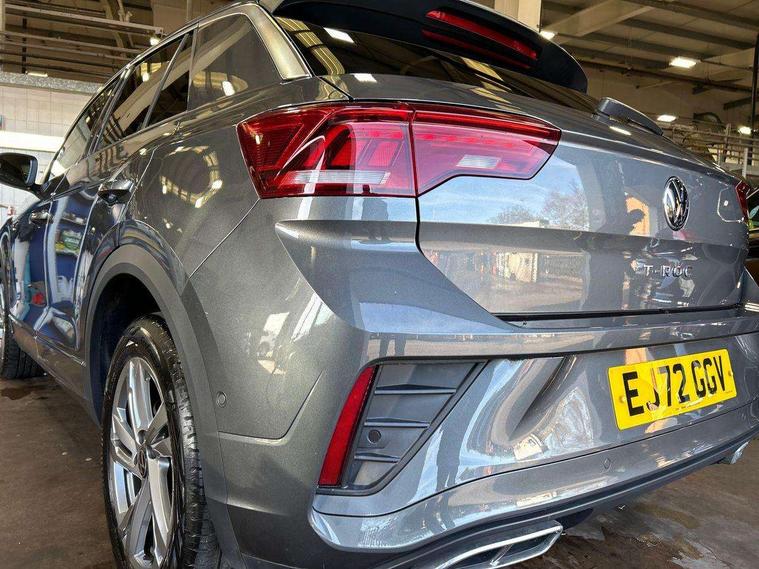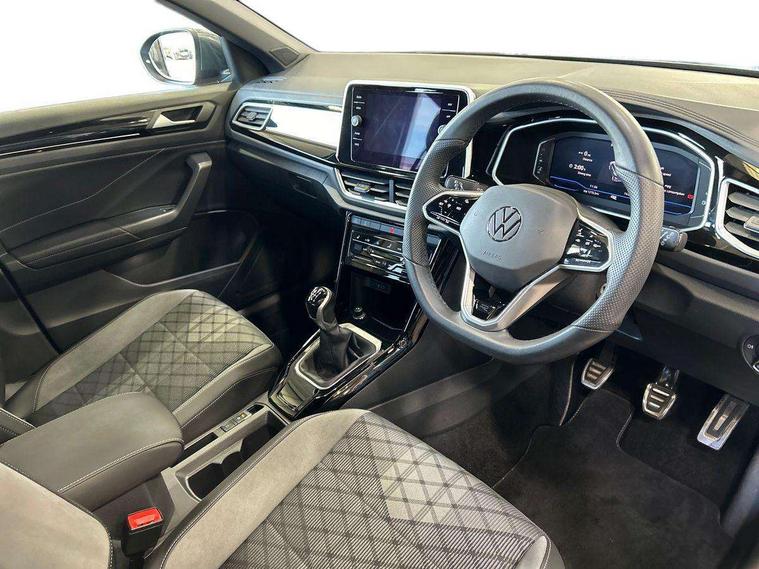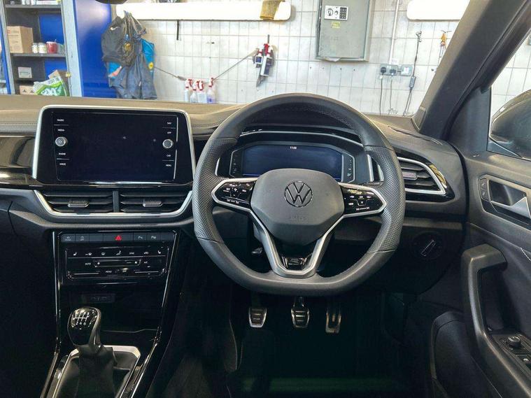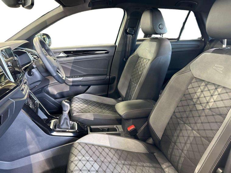 10.25" Digital cockpit pro, Bluetooth mobile phone interface, Driver alert system with fatigue detection, Driver tips and journey analysis, Emergency call service, Lane keeping system Lane Assist, Modified key software - reduce switch off time for key status change to Long no motion, Online services, Park assist including front and rear parking sensors, Service interval indicator, Tailgate/trunk lid release from outside, Think blue trainer driver tips and journey analysis, Warning sound and light for front seatbelts unfastened, Wireless app connect, Battery regeneration during braking, Start/stop function with battery regeneration, Diversity antenna for FM reception, Front and rear 6 speakers, Music playback - MP3, WMA and AAC files, Premium USB cable in choice of either Apple or Android smartphone compatibility, SD card slot, Simultaneous pairing of 2 compatible mobile devices, Title and cover art display, We Connect and We Connect Plus functionality, 3rd brake light, Auto dimming interior rear view mirror, Automatic hazard lights activation under emergency braking, Automatic headlight control with LED separate daytime running lights with coming/leaving home function, Extended roof spoiler, Exterior mirrors aspherical on driver side, convex on front passenger side, External USB type C socket and charging sockets, Front windscreen wiper with intermittent wipe and 4 position delay, Heated rear window, LED Plus headlamps, LED rear combination lamps, LED rear number plate lights, LED tail lamp rear comination lamps, Power windows with comfort operation and circuit breaker, R-Line design body coloured bumpers, Rain sensor, Rear exhaust tailpipe, Rear fog light on one side and reversing lights on both sides, Rear side wing doors, Rear wash/wipe with intermittent wipe setting, Remote electrically foldable door mirrors, puddle lights and reverse activated passenger's door mirror, 12V power socket in centre console, 3 rear head restraints, 3 seat bench in 2nd row, 4 load lashing points in luggage compartment, Air care climatronic air conditoning system with active combination filter and 2-zone temperature control, Black roof lining, Chrome plated radiator grille inserts, air vent surrounds and light switch surrounds, Door and side trim panel with leatherette insert, Drawer under drivers seat, Front + rear carpet mats, Front centre armrest, Front cupholders x 2, Front footwell illumination, Front reading light, Front scuff plates with R logo, Instrument lighting, white adjustable panel illumination, Interior ambient lighting and surround lighting, Interior light delay, Isofix child seat preparation, Leather gearshift handle, Load-through provision with cup holder when folded down ('Unsplit rear seat bench, split folding backrest, with centre armrest), Luggage compartment lighting, Single front passenger seat, Stainless steel pedals, Storage compartment in left and right luggage area, Storage compartment in rear doors, Storage compartments in driver and front passenger doors, Sunvisors with illuminated vanity mirrors, Variable boot floor, height adjustable and removable, Driver assistance pack without proactive passenger protection - T-Roc, 3 point height adj front seatbelts + pretensioners, 3 point seatbelts in outer rear with ECE label, ABS, Child locks on rear doors, Driver and front passenger airbag with front passenger airbag deactivation, Driver and front passenger safety-optimised head restraints, Drivers seatbelt reminder, Electronic parking brake, Electronic Stability Control (ESC) inc EDL (Electronic Differential Lock) and ASR (Traction Control), Front and rear passengers curtain airbag system including front side airbags, Front assist with city emergency braking and pedestrian monitoring, Front seat side impact airbags, Hill start assist, Predictive pedestrian protection, Rear disc brakes, Single tone horn, Tyre pressure loss indicator, Volkswagen roadside assistance, Alarm with interior protection, Anti-theft alarm system with interior monitoring, backup horn, and towing protection, Remote central locking with SAFELOCK, radio remote control with 2 remote control folding keys, Trims for alloy wheels,