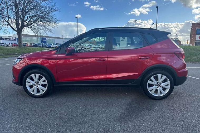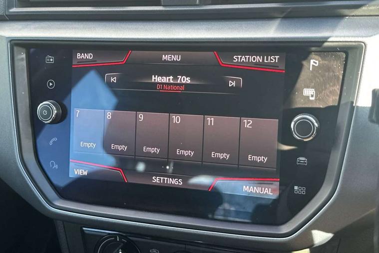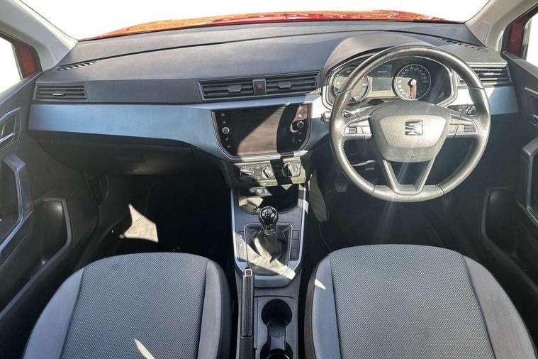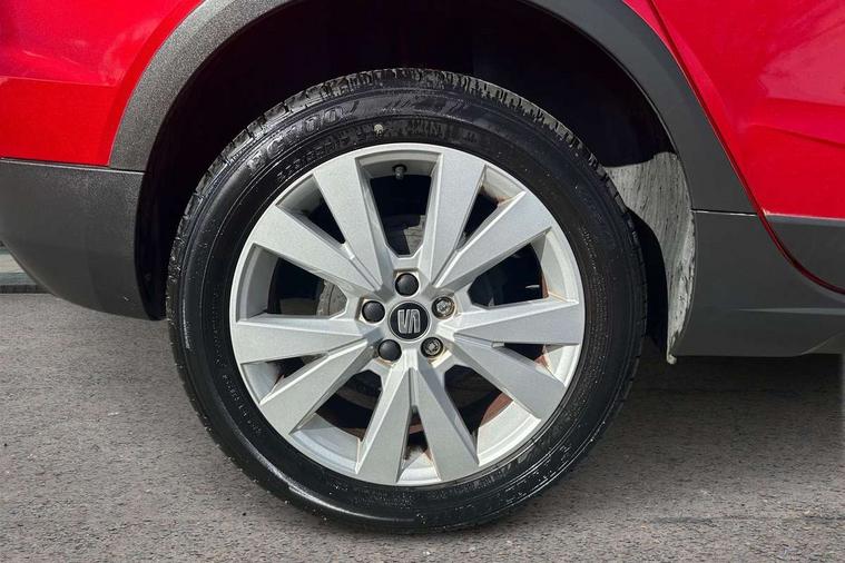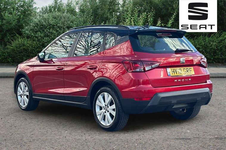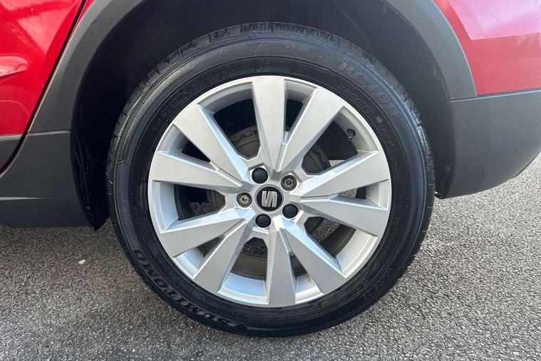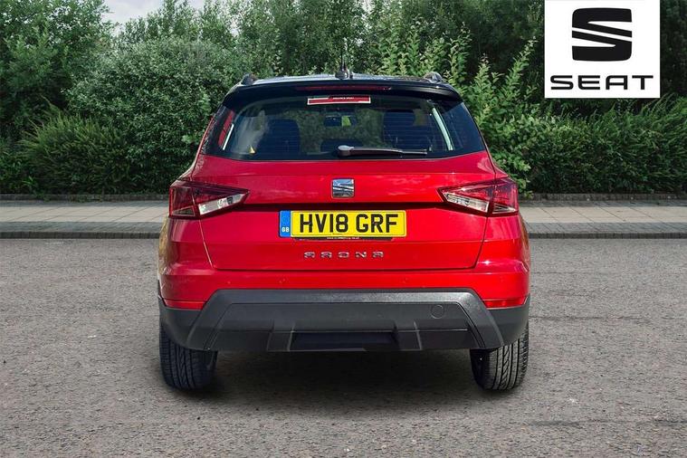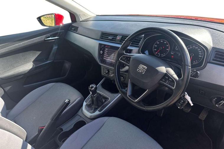 'Lights On' Reminder warning buzzer, Cruise control, Electric speed sensitive power steering, Front assistant collision mitigation, Outside temperature display, Rear parking sensor, Trip computer, Comfort suspension, 6 speakers, Bluetooth interface for hands free and audio streaming, DAB Digital radio, Steering wheel mounted audio controls, Automatic activation of hazard warning lights, Automatic headlights, Black roof rails, Black window surrounds, Body coloured bumpers, Body coloured door handle inserts, Chrome grille surround, Electric adjustable door mirrors, Electric front/rear windows with one touch/auto up/down, Electric headlight adjustment, Front fog lights with static cornering function, LED daytime running lights, LED tail lights, Rear window wash/wipe, 2 cupholders, 3 rear height adjustable headrests, 60/40 split folding rear seat, Air conditioning, Ambient interior lighting, Cloth upholstery, Double boot floor, Driver and passenger sunvisors, Driver/front passenger seat height adjustment, Dust/pollen filter, Footwell ambient lighting, Front courtesy lights, Front reading light, Height/reach adjustable steering column, Illuminated boot, Isofix attachments on outer rear seats, Leather handbrake, Leather steering wheel and gear knob, Connectivity pack plus - Arona, 3 point seatbelts on all rear seats, ABS+EBA, Child locks on rear doors, Driver/Front Passenger airbags, Electronic stability control, Front and rear seatbelt reminder, Front side/curtain airbags, Height adjustable active front headrests, Hill hold control + Tyre Pressure monitor, Multi-Collision braking, Passenger airbag deactivate switch, Tiredness recognition system, Traction control, 2 folding remote keys with window open/close function, Immobiliser, Locking wheel bolts, Remote central locking + deadlocks, Interior chrome line trim, 17" Dynamic alloy wheels,
