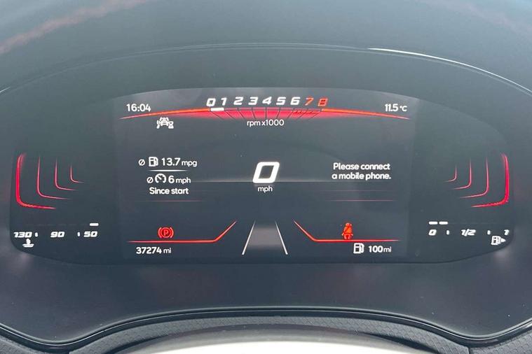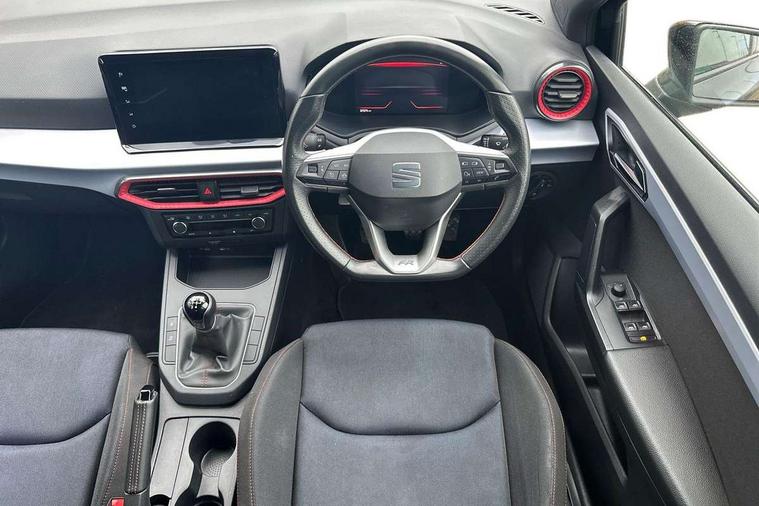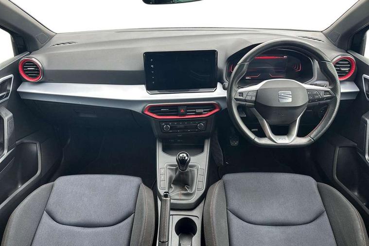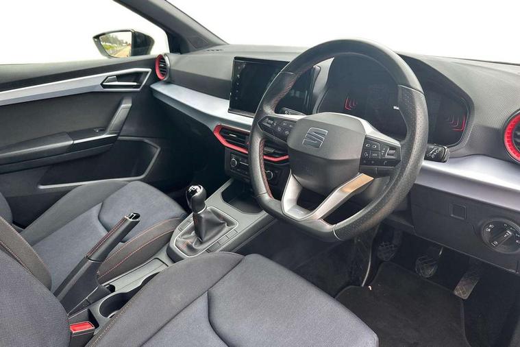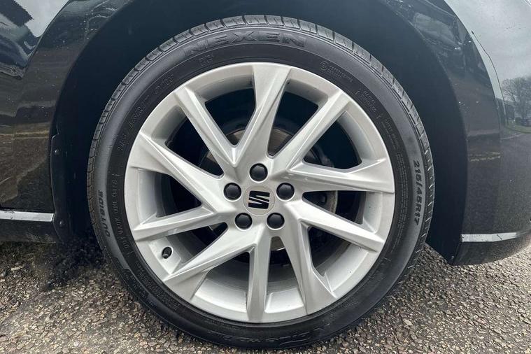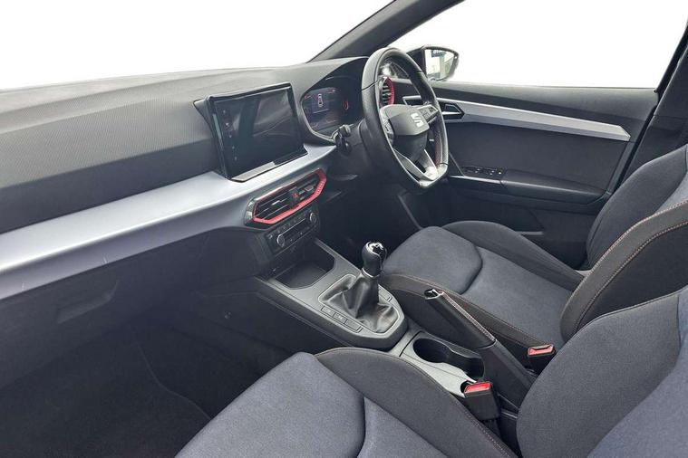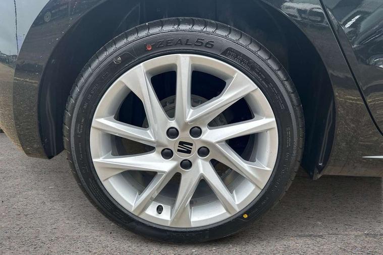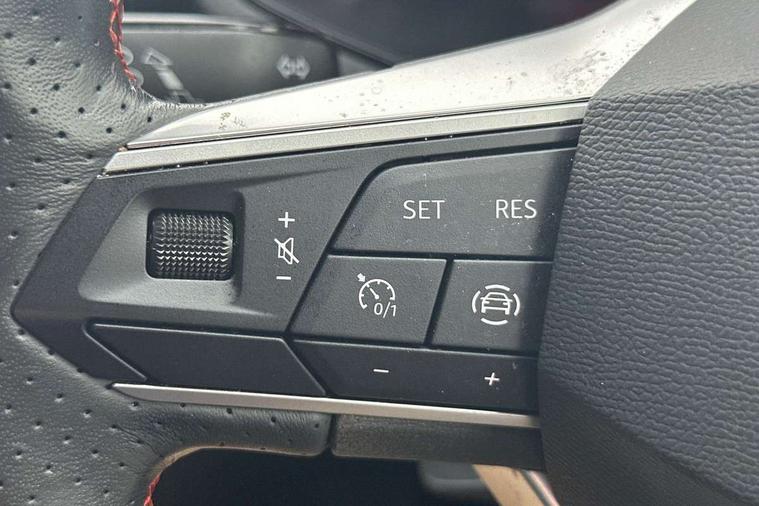'Lights On' Reminder warning buzzer, 8" Digital cockpit, 9.2" touchscreen navigation system with type C USB socket, Voice control and DAB/AM/FM radio, Auto start and stop system, Bluetooth audio streaming with handsfree system, Cruise control, Digital clock, E-call, Full link smartphone integration with mirror link, wireless apple carplay, Google android auto + USB Type C cable for apple and android devices, Lane assist, Low fuel warning light, Outside temperature gauge, Power Steering, Seat connect with safety, service, remote and online, SEAT logo boot release, Speed limiter, Trip computer, Sports suspension, Auxiliary input socket, Radio/MP3 player, SD card slot, Steering wheel mounted controls, Anti theft roof antenna, Auto dimming rear view mirror, Automatic rain sensing wipers, Black door mirrors, Body colour bumpers, Body colour door handles, Brilliant black window surrounds, Dark tinted rear windows, Electric adjustable/heated/folding door mirrors, Electric front windows, Electric headlight adjustment, Electric rear windows, Front/rear fog lights, FULL LED automatic headlights with dynamic headlight range control, coming and leaving home, LED daytime running lights, LED tail lights, Rear roof spoiler with FR twin exhausts, Rear side wing doors, Rear wiper, Third brake light, 3 seat bench in 2nd row, 60/40 split folding rear seat, Ambient interior lighting, Chrome detailing and black headlining, Cloth upholstery, Dual zone climate control with combination filter, Front courtesy lights, Front cupholders x 2, Front reading lights, Gear shift indicator, Glovebox, Height adjustable front and rear headrests (five), Height adjustable front seats, Height/reach adjust steering wheel, Illuminated air vent surrounds, Illuminated boot, Instrument lighting with brightness control, Isofix, Leather multifunction flat bottomed sports steering wheel, Passenger sunvisor, Single front passenger seat, Sports seats, Sunvisors with mirror and driver side card holder, 3 point seatbelts on all 3 rear seats, ABS, Active front headrests, Child locks on rear doors, Electronic stability control, Energy recovery system, Front assist forward collision warning and autonomous emergency braking, Front driver and passenger side airbags with curtain airbag and front passenger airbag deactivation, Hill hold control, Multi-Collision braking, Seat belt reminder for front and rear seats, Tiredness recognition system, Tyre pressure monitoring system, Electronic engine immobiliser, Locking wheel bolts, Perimeter alarm and interior monitoring with backup horn and tow away protection, Remote central locking + deadlocks, 17" Alloy wheels in Brilliant silver, Emergency tyre repair kit,