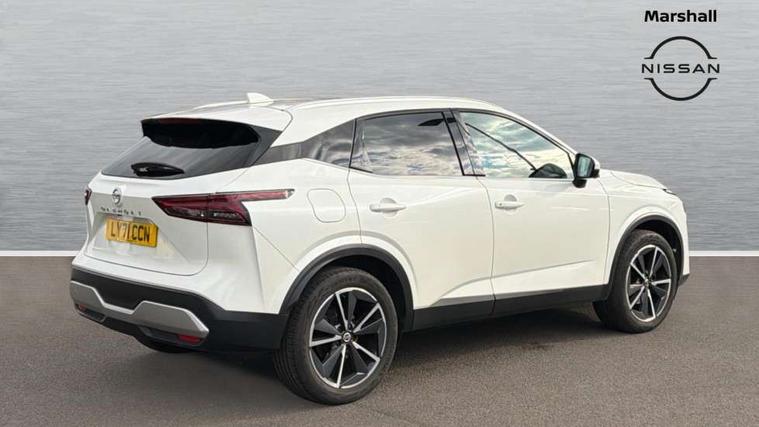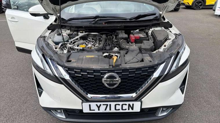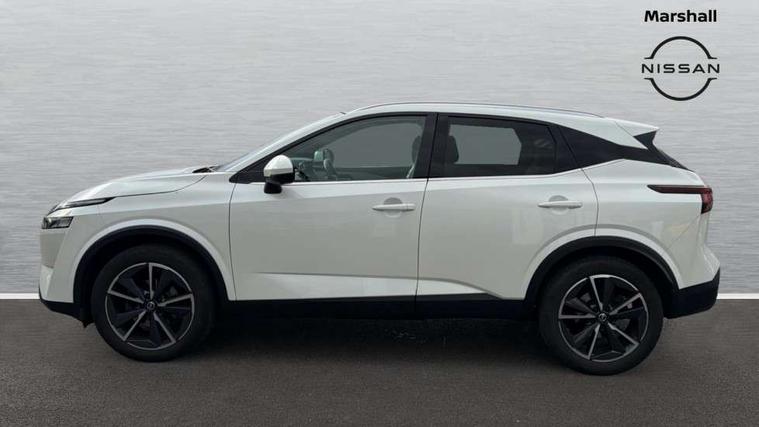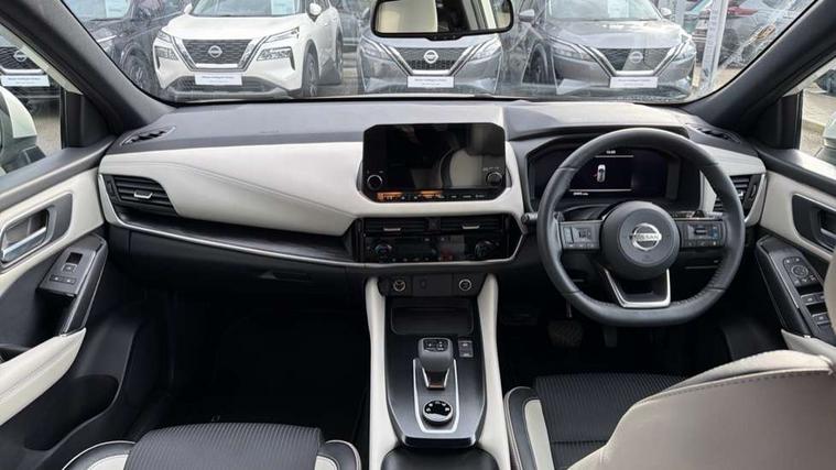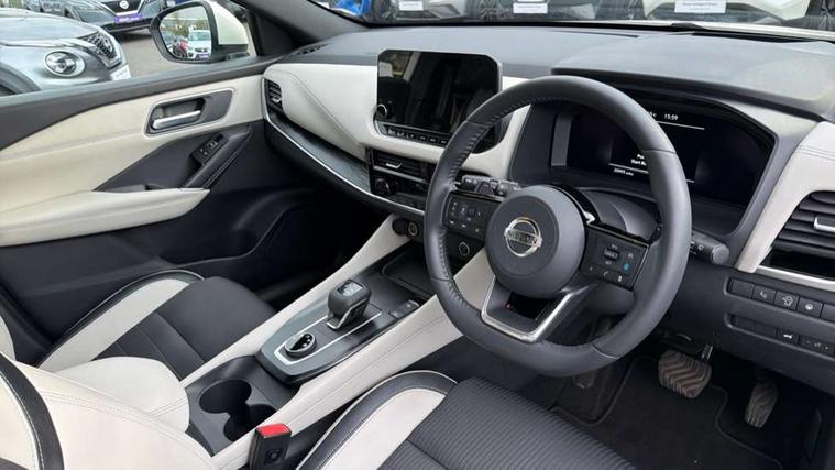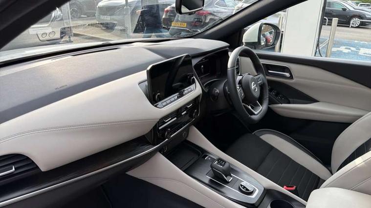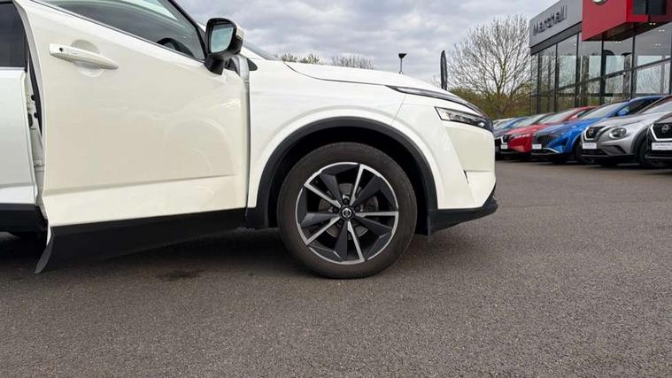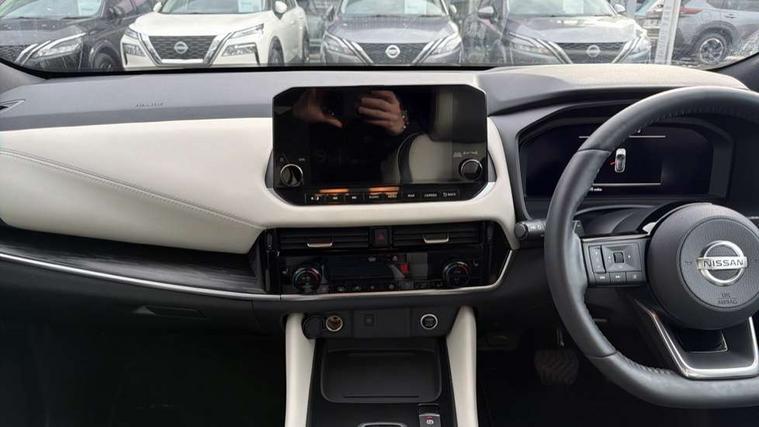 Blind spot warning, Drive modes (sport, normal, eco, snow, off-road), Electric speed sensitive power steering, Emergency and breakdown call, Front and rear parking sensors, Full Digital 12.3" TFT Digital Combimeter, Google maps services - search, weather, 3D maps and Google street view, Hands free power tailgate, Idle stop/start system, Intelligent around view monitor, Intelligent Cruise control (ICC), Intelligent driver alert system, Intelligent forward collision warning, Intelligent lane intervention, Lane departure prevention, Lane departure warning system, Moving object detection, Nissan connect 9" touchscreen infotainment system, Nissan connect navigation, Push button starter, Rear cross traffic alert, Remote control services - door locks, lights, horn and car locator, Telematics - notifications and connectivity services, TomTom live traffic services, Traffic sign recognition with legal speed adjustment, Trip computer, Virtual personal assistant and firmware over the air capability, Wireless Apple CarPlay and wired Android Auto, Wireless charging pad, 6 speakers, AM/FM audio system with DAB, Bluetooth audio streaming, Front USB connections (Type-A and Type-C), Rear USB charging only ports (Type-A and Type-C), Auto dimming rear view mirror, Auto rear wiper when reversing, Body colour mirror caps, Body coloured door handles, Bodyside mouldings, Chrome side window finisher, Door handle with button, Dusk sensor, Electric auto folding door mirrors, Electrically adjustable and heated door mirrors with LED turn indicator, Fixed panoramic glass roof with electric sunshade, Follow me home headlights, Front and rear LED turning signals, Intelligent auto headlights, LED daytime running lights, LED rear lights, One touch front and rear electric windows with remote opening and closing, Partially body coloured bumpers, Privacy glass, Rear roof spoiler, Rear side wing doors, Rear styling plate, Roof rails, Shark fin antenna, Splash free rain sensing wipers, Super UV and infrared cut glass, Three blink turn signal, 12v power socket in dashboard and luggage, 2 way electrical driver lumbar adjustment, 2x Rear coat hooks, 3 bench rear seats in 2nd row, 3 rear headrests, 4 folding assist grip, 6 Luggage hooks - 4 on floor, 2 on side, 60/40 split folding rear seat bench, 8 way electric adjustable drivers seat, Ambient lighting around centre console, Ambient lighting in front doors, Centre console storage tray, Chrome interior door handles, Cloth/syntech leather monoform upholstery, Dark headlining, Driver and front passenger sunvisors with illuminated vanity mirrors, Driver seat back pocket, Dual zone automatic climate control with pollen filter, Front and rear door storage, Front cupholders x 2, Front door with bottle holders, Glovebox with light, Hard trunk cover, Height adjustable front headrests, Leather steering wheel, Luggage board system, Luggage space lighting, Manual lumbar support on passenger seat, Manually adjustable passenger (slide recline + lifter), Multifunction steering wheel, Passenger seat back pocket, PVC front centre console and armrest, Rear armrest with 2 cupholders, Rear door bottle holders, Single front passenger seat, Soft PVC kneepad, Steering wheel gearshift paddles, Steering wheel switches, Tilt/telescopic adjustable steering wheel, Two rear isofix child seat anchorage points with top tether, Welcome light and doors with console tray ambient lighting, Heat pack - Qashqai, Tech Pack (ProPILOT + HUD), 3x3 point rear seatbelt pretensioners + load limiters, ABS, ESP, EBD and brake assist, Active brake limited slip, Auto hold function, Child locks on rear doors, Curtain and front side, far side airbags, Driver and passenger airbags, Driver, passenger and 2nd row rear seat belt reminder, Electronic parking brake, Front seatbelt pretensioners + load limiters, Height adjustable front seatbelts, Hill start assist, Intelligent blind spot intervention, Intelligent front emergency braking with pedestrian, cyclist recognition and junction assist, Intelligent rear automatic braking, Tyre pressure monitoring system, Vehicle dynamic control, Capless fuel filler, Engine immobiliser, Nissan i-key, Rear bumper with silver insert, Remote central door locking with deadlocking, Thatcham Cat.1 alarm, 19" Alloy wheels,