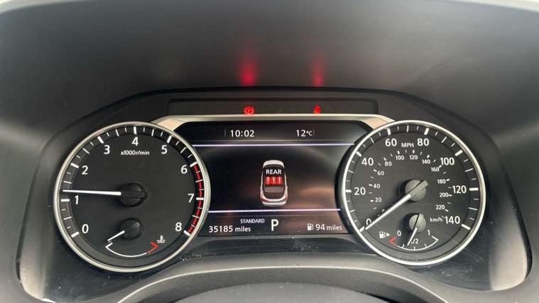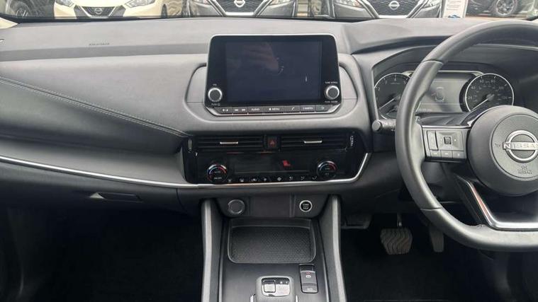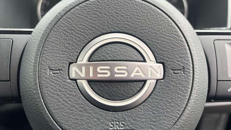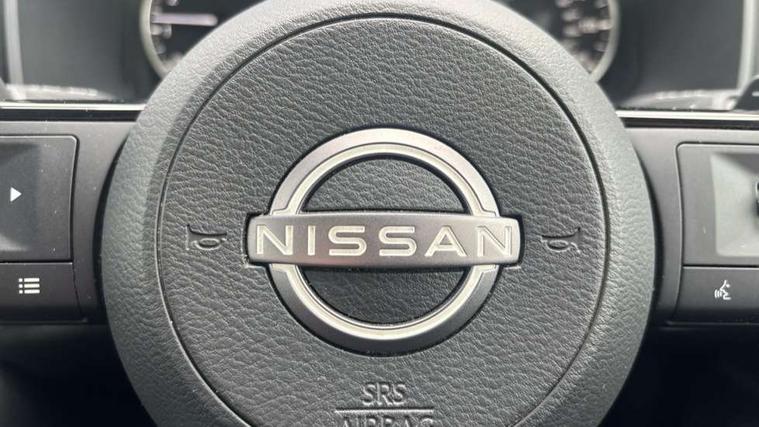 7" High definition full colour TFT screen combimeter, Android auto/Apple CarPlay (Wired), Blind spot warning, Drive modes (sport, normal, eco), Electric speed sensitive power steering, Emergency and breakdown call, Idle stop/start system, Intelligent Cruise control (ICC), Intelligent driver alert system, Intelligent forward collision warning, Intelligent lane intervention, Lane departure prevention, Lane departure warning system, Maximum speed limiter, Nissan connect 8" touchscreen infotainment system, Push button starter, Rear cross traffic alert, Rear parking sensors, Rear view camera, Traffic sign recognition with legal speed adjustment, Trip computer, 6 speakers, AM/FM audio system with DAB, Bluetooth audio streaming, Front USB connections (Type-A and Type-C), Auto dimming rear view mirror, Auto rear wiper when reversing, Automatic hazard signal with emergency stop signal, Body colour mirror caps, Body coloured door handles, Bodyside mouldings, Chrome side window finisher, Door handle with button, Electric auto folding door mirrors, Electrically adjustable and heated door mirrors with LED turn indicator, Follow me home headlights, High beam assist, Intelligent auto headlights, LED 3rd brake light, LED daytime running lights, LED Headlights, LED rear lights, One touch front and rear electric windows with remote opening and closing, Partially body coloured bumpers, Rear reversing light (bulb lighting), Rear roof spoiler, Rear side wing doors, Shark fin antenna, Splash free rain sensing wipers, Three blink turn signal, 12v power socket in dashboard and luggage, 2x Rear coat hooks, 3 bench rear seats in 2nd row, 3 rear headrests, 4 folding assist grip, 6-way manually adjustable driver's seat, 60/40 split folding rear seat bench, Centre console storage tray, Chrome interior door handles, Cloth monoform upholstery, Driver and front passenger sunvisors with illuminated vanity mirrors, Dual zone automatic climate control with pollen filter, Electrically adjustable lumbar support for driver, Front and rear door storage, Front centre console and armrest, Front cupholders x 2, Front door with bottle holders, Glovebox with light, Hard trunk cover, Height adjustable driver's seat, Height adjustable front headrests, Height adjustable passenger seat, Luggage space lighting, Manually adjustable passenger (slide recline + lifter), Multifunction steering wheel, Passenger seat back pocket, Rear armrest with 2 cupholders, Rear door bottle holders, Single front passenger seat, Steering wheel gearshift paddles, Steering wheel switches, Sunglasses holder, Tilt/telescopic adjustable steering wheel, Two rear isofix child seat anchorage points with top tether, 3x3 point rear seatbelt pretensioners + load limiters, ABS with EBD and brake assist, Active brake limited slip, Auto hold function, Child locks on rear doors, Curtain and front side, far side airbags, Driver and passenger airbags, Driver, passenger and 2nd row rear seat belt reminder, Electronic parking brake, Front seatbelt pretensioners + load limiters, Height adjustable front seatbelts, Hill start assist, Intelligent blind spot intervention, Intelligent front emergency braking with pedestrian, cyclist recognition and junction assist, Intelligent rear automatic braking, Tyre pressure monitoring system, Vehicle dynamic control, Capless fuel filler, Engine immobiliser, Intelligent Key, Remote central door locking with deadlocking, Thatcham Cat.1 alarm, Interior instrumental panel A finisher, 17" Alloy wheels, Tyre puncture repair kit,