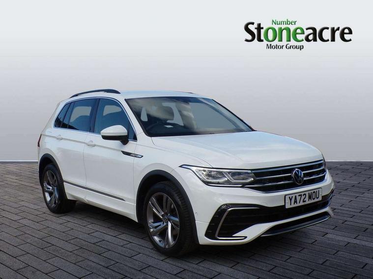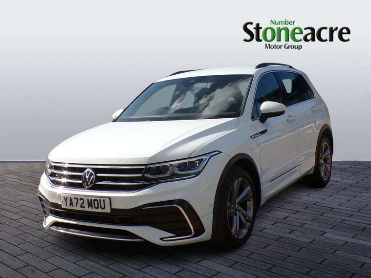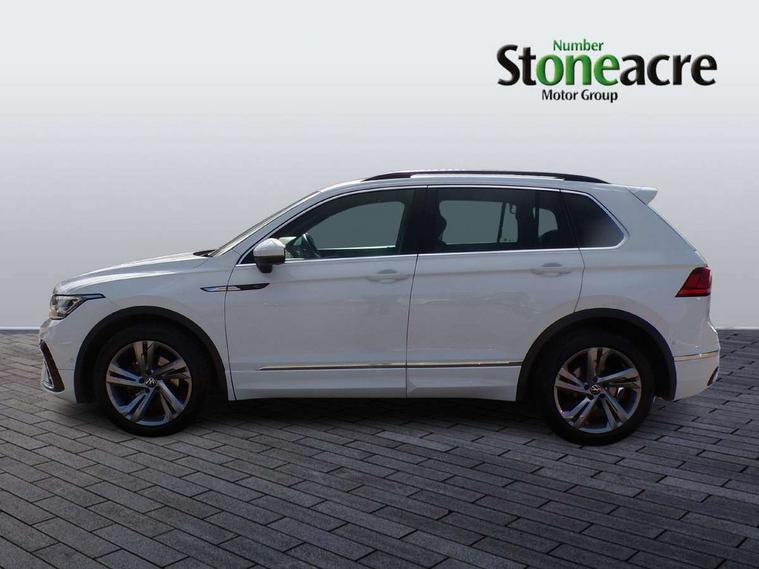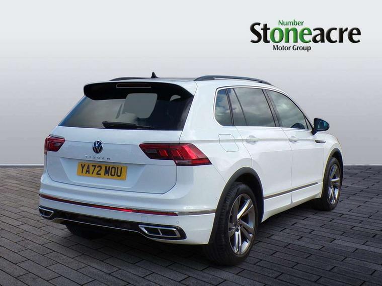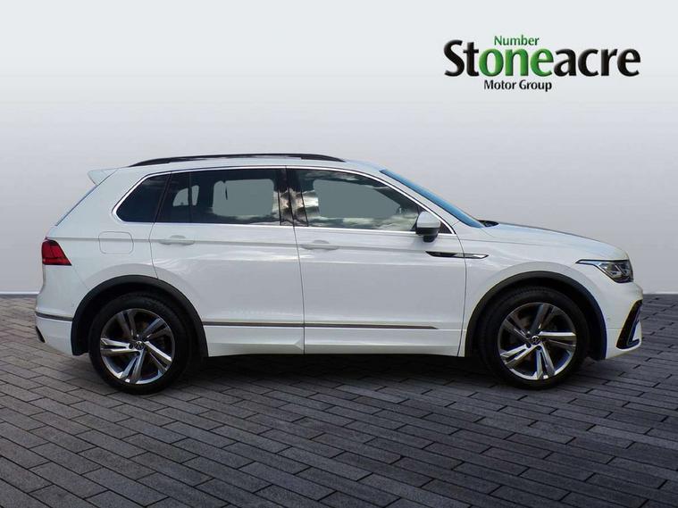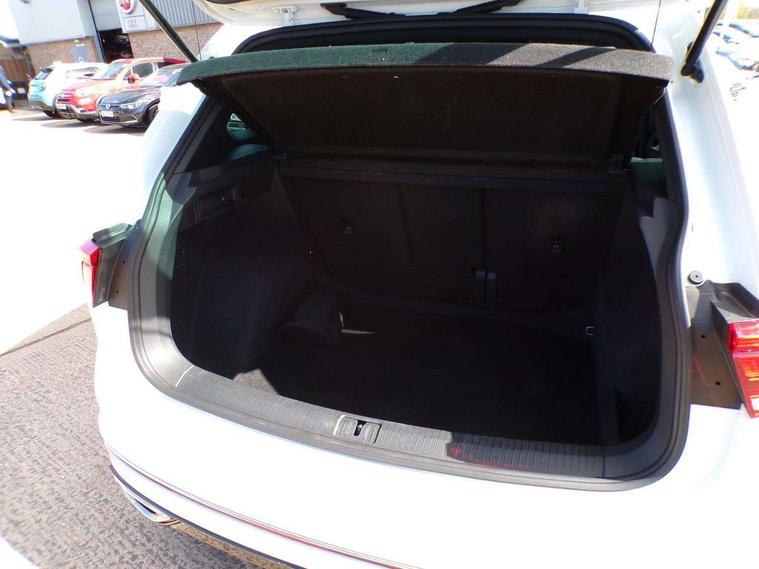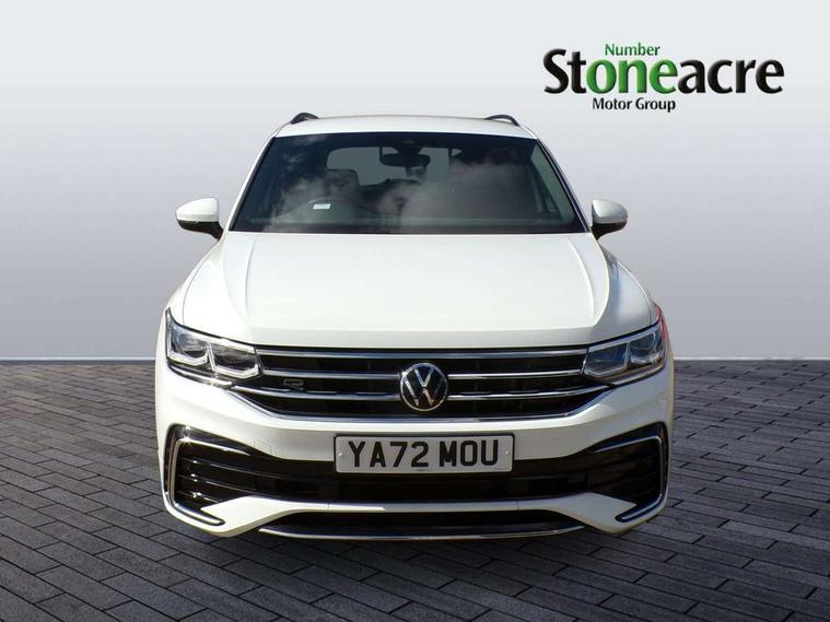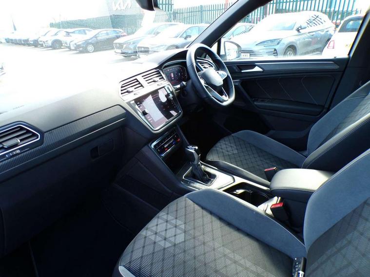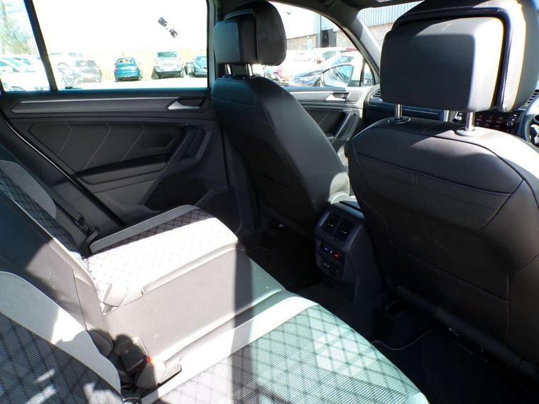 Adaptive cruise control ACC stop and go including speed limiter, App-Connect incl. App-Connect Wireless for Apple CarPlay and Android Auto, Bluetooth phone integration system, Comfort drive travel assist, Digital cockpit pro, Driver alert system, Driver profile selection, Dynamic road sign display, eCall emergency call system, Electromechanical speed sensitive power steering, Emergency assist, Front and rear parking distance sensors, Instrument cluster mph speedometer Great Britain, Lane keeping system Lane Assist, Lights on warning, Multifunction front facing camera, Outside temperature display, Premium multifunction display with multi colour display, Preparation for subsequent activation Navigation feature Discover Media includes Streaming and Internet, Remote control boot opening, Rev counter, Service interval indicator, Speed limit display, Start/stop system with regenerative braking, Tailgate/trunk lid unlocking from outside, Trip computer, Warning sound and light for doors and tailgate open, Battery regeneration during braking, Sports suspension, 8 Speakers, Digital radio reception DAB+, Diversity antenna for FM reception, Radio, Auto dimming interior rear view mirror, Automatic headlight control system, Body colored bumpers in R-Line style, Body colored exterior mirror housings, Body colour door handles, Chrome moldings on the side windows, Coming/leaving home lighting function, Dynamic headlight range control, Front and rear electric windows, Heated rear window, High level 3rd brake light, Laminated safety glass windshield, heat and sound insulating, LED headlamps with LED separate daytime running light and dynamic cornering light, LED rear combination lamps, LED rear number plate lights, License plate carrier in front and rear, Poor weather light and cornering light, Power adjustable, folding and heated door mirrors with surround lighting, front passenger exterior mirror lowering function, Privacy glass for rear side windows and rear window, R Line body kit, R Line side sills, Rain sensor, Rear exhaust tailpipe, Rear fog lamp, Rear side wing doors, Rear spoiler in R style, Rear windscreen washer and wiper with interval delay, Side and rear windows in heat insulating glass, Trailer Stability Programme, Unique R Line badging, Windscreen wipers/ intermittent wipe + 4 position delay, 12V outlet in center console rear and in luggage compartment, 12V outlet in front and tray, 2 LED front reading lights, 2 LED rear reading lights, 3 bench rear seats in 2nd row, 3 rear headrests, Air Care Climatronic 3 zone automatic climate control with enhanced air filter and controls in the rear, Art Velours greyson sports cloth upholstery, Backrest release for left front seat, Black headlining, Brushed stainless steel pedals and footrest, Carpet mats in front and rear with decorative stitching in Gray, Climate control unit rear with touch function, Door and side trim panel in foam film, insert in leatherette, Driver + front passenger lumbar support, Front footwell illumination, Front scuff plates in aluminum with R-Line logo, Front seats head restraints (x-adjustment), Height adjustable front seats, Height/reach adjust steering wheel, Isofix Preparation 2 Rear child seats, Leather gear knob, Rear bench seat asymetrically split folding, longitudinally movable and folding with load-through hatch and center armrest, Remote unlocking for rear seat backrest, Single front passenger seat, Sun visors with illuminated vanity mirrors, Top front comfort seats, Winter pack - Tiguan, 3 point seat belt for centre rear seats, 3 point seat belts with seat belt pretensioners for the outer rear seats, Curtain airbags for front and rear passengers, Driver/Front Passenger airbags, Drivers knee airbag, Electronic parking brake with auto hold, Electronic Stability Control with driver steering recommendation, ABS, ASR, EDL, EDTC and trailer stabilization, Front assist with autonomous emergency braking (for Adaptive Cruise Control ACC up to 130 mph), Front disc brakes, Front passenger airbag deactivation, Front side airbags, Height adjustable front 3 point seatbelts + pretensioners, Manual child proof rear door locks, Pedestrian monitoring system, Proactive passenger protection system in combination with front assist, Rear disc brakes, Two tone horn, Tyre pressure loss indicator, Warning sound and light for front seat belts if unfastened, Warning triangle, Anti theft alarm system with interior monitoring, backup horn and towing protection, Anti theft wheel bolts, Electronic engine immobiliser, Keyless locking and starting system keyless access with safelock, Chrome elements on the mirror switch power window switches and door pulls, Decorative inserts Carbon Gray for dashboard and front door trim panels, Interior door handle in matte chrome, 19" Valencia alloy wheels with AirStop tyres, Tool kit, Tyre mobility kit Includes 12V compressor and tyre sealant,