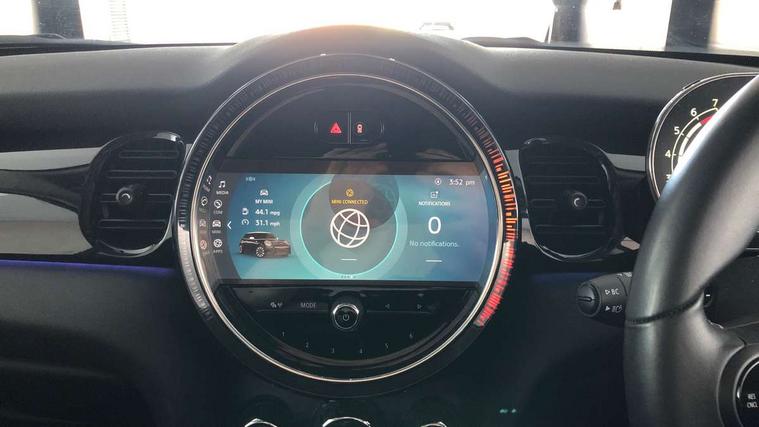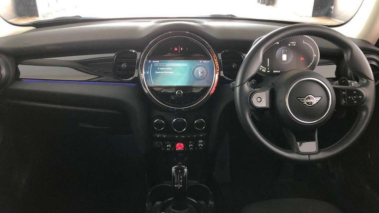 Automatic start/stop function with brake energy recuperation, Compatible mobile phone bluetooth with audio streaming, Electro-mechanical speed dependant steering assistance, Instrument cluster, MINI Driving Modes - centre toggle switch to control driving setting (sport, mid and green), Mini E-call, MINI TeleServices, On board computer, Service interval indicator, Double Vanos system, Fully variable valve control, Gear change indicator display, High precision injection, Performance Control, Steptronic transmission with double clutch, 6.5" touchscreen with LED ring, FM tuner and DAB digital radio, Automatic headlight activation switch, Bonnet scoop, Chrome border honeycomb structure radiator grille with S badge, Chrome plated fuel cap, Dynamic brake lights, Electric front+rear windows, Heated rear window, Heated windscreen washer jets, LED headlight with closed ring and daytime driving lights, Metal door sill strips with Cooper S imprint, Model logo Cooper S on right of tailgate, Rain sensor window wipers, Rear fog lights, Rear LED lights with union jack design, Rear window wiper, Side scuttle panel with integrated indicator, Sun/heat protection glass, Two central exhaust tailpipes with chrome finisher, White indicator lenses, 12V Accessory socket in centre console, 4 lashing eyes in luggage compartment, 60/40 split folding rear seat, Carbon Black colour line, knee roll and door armrests, Chrome interior highlights, Colour line - Carbon black, Cupholders, Front and rear head restraints, Front and rear isofix with front passenger airbag deactivation, Glove compartment, Height and length steering column adjustment, Interior lighting with 12 basic colours selectable via toggle switch in roof, Leather gearshift lever and handbrake gaiters, LED reading lights, vanity mirror lights, front foot well light and spotlight on front seats, Manual air conditioning, Mechanical seat adjustment, driver seat height adjust, forward/back and front seats backrest, Mini logo projection on floor from drivers exterior mirror, Multifunction steering wheel, Satellite grey headlining, Storage compartments in doors, Storage pocket on back of front seats, Sunvisors with vanity mirrors, 3 point seatbelts on all four seats, 6 Airbags - front, side, head and seat belt tensioners, Anti-lock braking system (ABS), DSC - Dynamic Stability Control, Front and rear disc brakes, Hill start assist, Two tone horn, Tyre pressure monitoring system, Alarm system with tilt sensor, monitoring doors, bonnet interior and tailgate, Electronic vehicle immobiliser, Start/stop toggle with keyless go, Tool kit, Tyre repair kit,