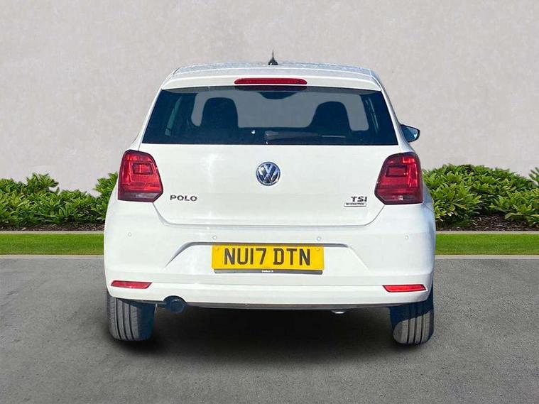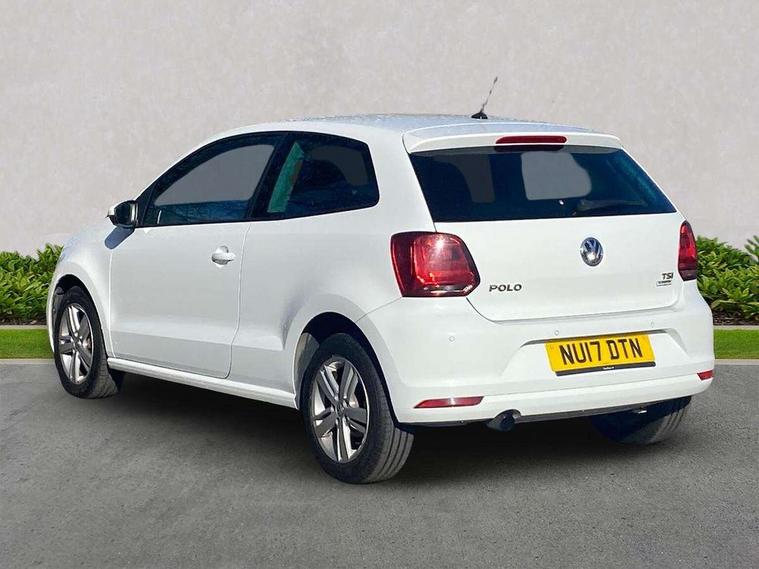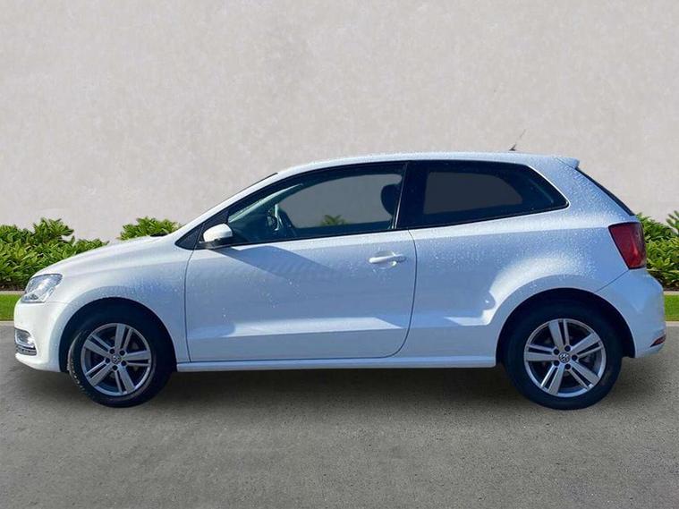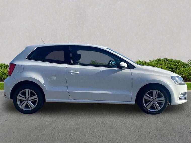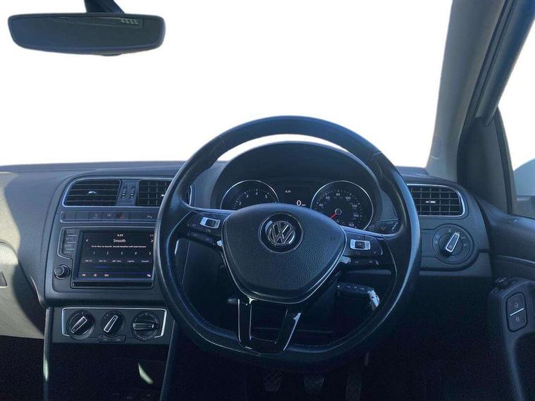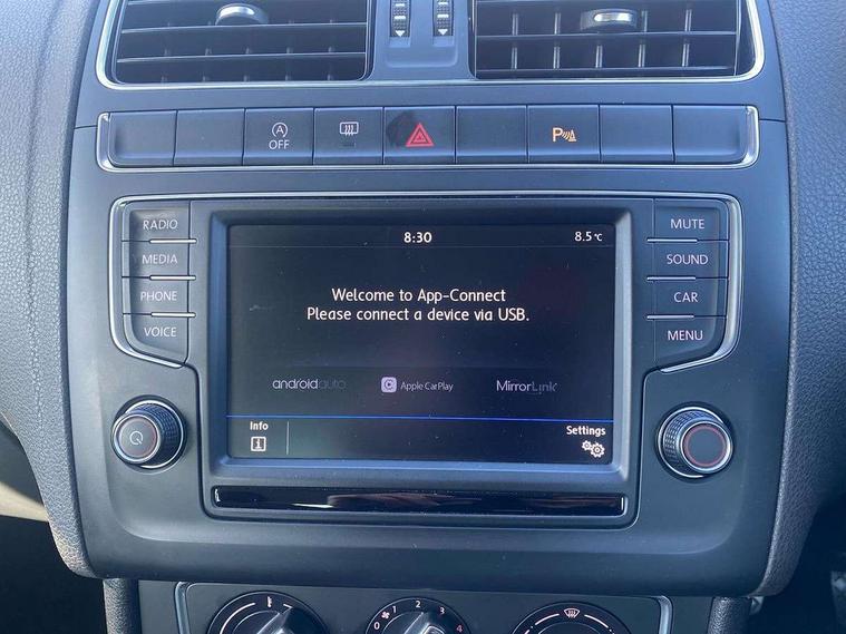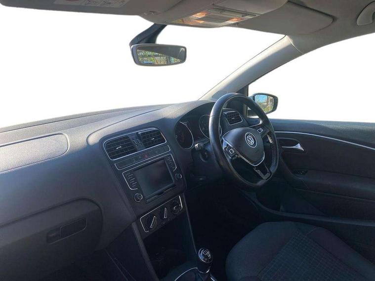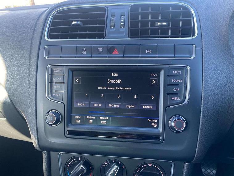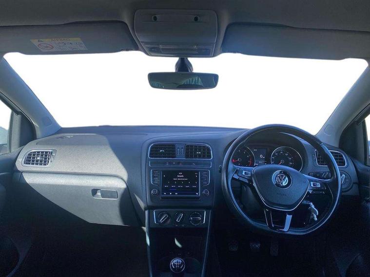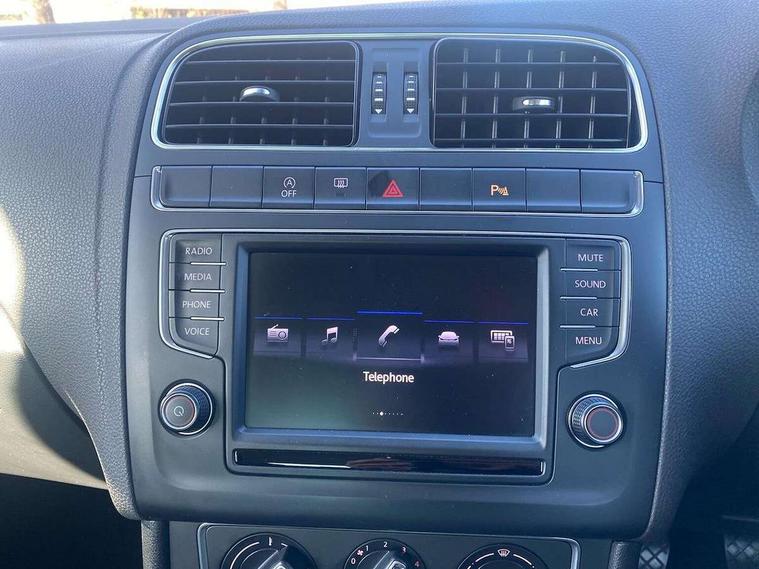App-Connect, Bluetooth Telephone preparation, Driver alert system, Multi function display, Multifunction computer, PAS - speed related, Service interval indicator, Ultrasonic front and rear optical and audible parking sensors, Warning buzzer and light for front seatbelts unfastened, 6 speakers, Composition media system with radio, glovebox mounted CD, colour touch screen, SD card, aux-in, USB, multimedia interface, DAB Digital radio, Black grille with chrome surround, Body colour bumpers, Body colour door handles, Body colour door mirrors, Body coloured side sills, Chrome trimmed front air intake surrounds, Electric folding door mirrors, Electric front windows, Electric operated/heated door mirrors, Front fog lights with static cornering function, Front wash/wipe with interval delay, Heat insulated tinted glass 65% light absorbing from B pillar back, Heated rear window with auto timer, Rear windscreen washer and wiper with interval delay, 12V power socket in centre console, 2 bag hooks in luggage compartment, 2 cupholders, 3 rear head restraints, 3 spoke steering wheel, 4 grab handles, 60/40 split folding rear seat, Centre console storage, Chrome interior door handles, Driver and passenger sunvisors, Driver seat height adjust, Dust/pollen filter, Easy entry slide seats (access to rear seats), Front door pockets, Front passenger seat height adjust, Front seat backrest storage nets, Front/rear reading lights, Glovebox, Height/reach adjustable steering column, Illuminated vanity mirror, Interior light with delay, Isofix Preparation 2 Rear child seats, Luggage compartment cover, removable, Luggage compartment lighting, Matt chrome gear lever gaiter surround, Multifunction leather steering wheel with leather gear knob/handbrake grip, Storage compartment in front doors, Sunglasses holder, Variable boot floor, Light and sight pack - Polo, 3 point height adj front seatbelts + pretensioners, 3x3 point rear seatbelts, ABS, Automatic post collision braking, Driver/front passenger airbag, Driver/Passenger whiplash optimised head restraints, ESC - Electronic Stability Control + traction control, ESP with EDL + ASR, Hill hold control, Hydraulic Brake Assist (HBA), Tyre pressure monitoring system, Alarm with remote central locking and interior protection, Electronic engine immobiliser, Air vents in Matt chrome, Matt chrome interior trim, 15" steel spare wheel,