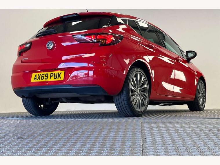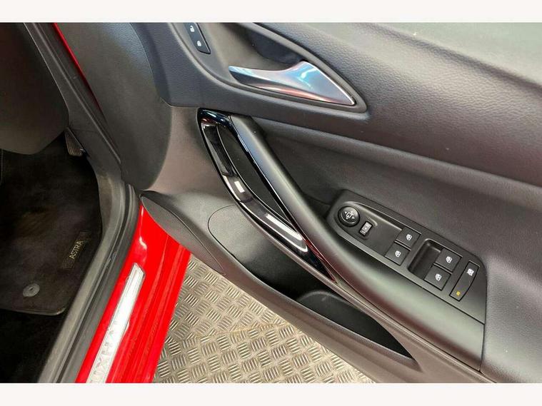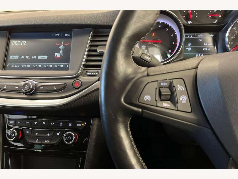 Central facia display with digital clock, outside air temperature and audio information, Cruise control + speed limiter, Digital fuel gauge with low fuel warning light, Digital water temperature gauge with warning light, Electric speed sensitive power steering, Gearshift up/down indication light, Left Key in ignition audible warning, Lights on audible warning, Monochrome display in instrument cluster, Multi function trip computer, Oil life monitoring system, Rev counter, Service due indicator, Speedometer, 6 speakers, AM/FM radio, R4 Intellilink infotainment Sat Nav, 7" screen, DAB, traffic program, USB/iPod/Bluetooth audio stream, microphone, 2D map, Apple CarPlay/Android Auto, Steering wheel mounted audio controls, Adaptive brake lights, Alloy effect front door sill covers, Automatic lighting control, Automatically dimming anti dazzle rear view mirror, Body colour door handles, Body colour rear roof spoiler, Body coloured door mirrors, Chrome effect upper window trim, Chrome-effect front grille bar, Chrome-effect headlight detail, Dark tinted rear windows, Door to door illumination, Electric folding door mirrors, Electric front/rear windows/one touch facility, Front fog lights, Gloss black finish B pillar, Gloss black finish C pillar, Griffin badges, Halogen Projector Headlamps, Hazard warning lamps, Heated rear screen with timed cut off, High level LED centre rear brake light, Intermittent rear wash/wipe, LED daytime running lights, LED side repeat indicators, Manual headlight beam levelling, Rain sensor windscreen wipers, Rear fog lights, Reversing light, Side window demist vents, Solar heat absorbing windscreen and windows, Tinted windows, Tunnel detection for auto light control, Twin electrically adjustable and heated door mirrors, Two speed windscreen wipers with variable intermittent wipe, Windscreen demist vents, 12V electrical accessory socket in front, 16 way adjustable driver seat, 3 spoke steering wheel, 4 way electrically adjustable lumbar support for drivers seat, 60/40 split folding rear seat, Adjustable front armrest, Ambient LED downlighter in facia/centre console, Ambient LED lighting in front door, Athena fabric/Premium leather upholstery, Black door panels with black Sienna cloth inserts, Black leather effect side bolsters and surrounds, Chrome interior door handles, Driver and front passenger illuminated vanity mirrors with flip up covers, Driver and front passenger seat cushion extension, Driver and front passenger sunvisors, Driver's ergonomic active seat with sports-style front passenger seat, Dual zone electronic climate control including air conditioning, Fade up/down courtesy light, Folding storage box on driver side lower facia, Four adjustable facia vents, Four load restraint lashing eyes, Front and rear door pockets, Front centre armrest with storage, Front courtesy lights, Front seat back storage pockets, Fully carpeted load area, Glovebox with lid, Griffin branded floor mats, Height adjustable and removable rear head restraints (x3), Height adjustable front head restraints, Illuminated load area, Interior tailgate handle, Isofix child seat mounting points on outer rear seats, Luggage compartment cover, Reach + rake adjustable steering column, Reach adjustable for front passenger seat, Rear courtesy lights, Reclining backrests, Satin chrome effect bezel on steering wheel, Storage compartment in centre console, Titanium headlining, Twin front reading lights with illuminated switches, Twin gas assisted tailgate struts, Twin rear reading lights with illuminated switches, Two drinks holders in centre console, Winter Pack - Astra, 3x3 point rear seatbelts, Anti-lock braking system (ABS), Child locks on rear doors, Electronic parking brake, Electronic Stability Programme, Height adjustable front seatbelts, Hill start assist, Passenger airbag deactivate switch, Pedal release system, Seatbelt pretensioners on front/outer rear seats, Seatbelt warning, Six airbags - Driver's dual stage airbag/front passenger's dual stage airbag/front seat side impact airbags/full size curtain airbags, Traction control, Tyre pressure monitoring system, Electronically protected audio, Engine Immobiliser & Deadlocks, Freewheeling door locks, Locking wheel bolts, Remote control central locking, Remote control ultrasonic security alarm system, Visible vehicle identification number, Black facia with piano black trim inserts, Instrument panel bar in satin chrome, Piano black trim inserts on front doors, Silver air vent surrounds, 18" Bi-colour alloy wheels, Tyre inflation kit,