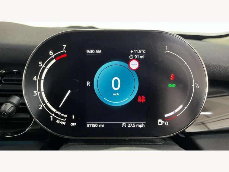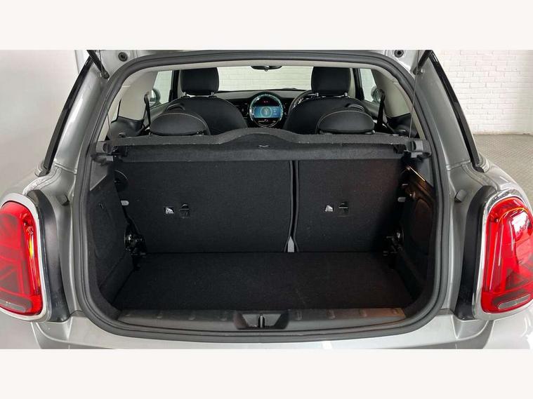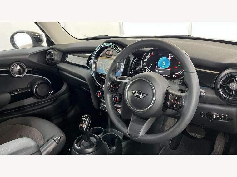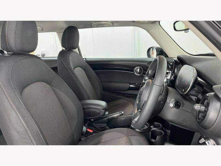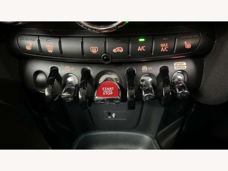 Apple CarPlay, Automatic start/stop function with brake energy recuperation, Compatible mobile phone bluetooth with audio streaming, Cruise control with brake assist, Electro-mechanical speed dependant steering assistance, Flexible car sharing preparation, Instrument cluster, Mini E-call, MINI TeleServices, On board computer, Service interval indicator, Double Vanos system, Fully variable valve control, High precision injection, Performance Control, Steptronic transmission with double clutch, 8.8" touchscreen with LED ring, FM tuner and DAB digital radio, 3rd brake light, Automatic headlight activation switch, Body colour fuel filler cap, Chrome border high gloss black slats radiator grille, Dynamic brake lights, Electric front windows, Exhaust tailpipe on left with chrome finisher, Heated rear window, Heated windscreen washer jets, LED headlight with closed ring and daytime driving lights, Metal door sill strips with MINI imprint, Model logo Cooper on right of tailgate, Rain sensor window wipers, Rear fog lights, Rear LED lights with union jack design, Rear window wiper, Side scuttle panel with integrated indicator, Sun/heat protection glass, White indicator lenses, 12V Accessory socket in centre console, 2 seat bench in 2nd row, 4 lashing eyes in luggage compartment, 60/40 split folding rear seat, Ambient lighting, Carbon black colour line - Knee roll and door armrest, Chrome interior highlights, Cupholders, Front and rear head restraints, Front and rear isofix with front passenger airbag deactivation, Front floor mats in velour, Glove compartment, Height and length steering column adjustment, Interior lighting with 12 different colours across the dashboard, underneath door bezel with illuminated laser-engraved design on central display, Leatherette gearshift lever and handbrake gaiters, LED reading lights, vanity mirror lights, front foot well light and spotlight on front seats, Manual air conditioning, Mechanical seat adjustment - forward/back & backrest for front seats and driver seat height adjust, Multifunction steering wheel, Passenger seat height adjuster, Satellite grey headlining including grab handles and clothes hooks, Single front passenger seat, Sport leather steering wheel with speed limiter and audio/communication controls, Storage compartments in doors, Sunvisors with vanity mirrors, 3 point seatbelts on all four seats, 6 Airbags - front, side, head and seat belt tensioners, Anti-lock braking system (ABS), DSC - Dynamic Stability Control, Front and rear disc brakes, Single tone fanfare horn, Tyre pressure monitoring system, Alarm system with tilt sensor, monitoring doors, bonnet interior and tailgate, Electronic vehicle immobiliser, Start/stop toggle with keyless go, Piano black interior trim, Tool kit, Tyre repair kit,