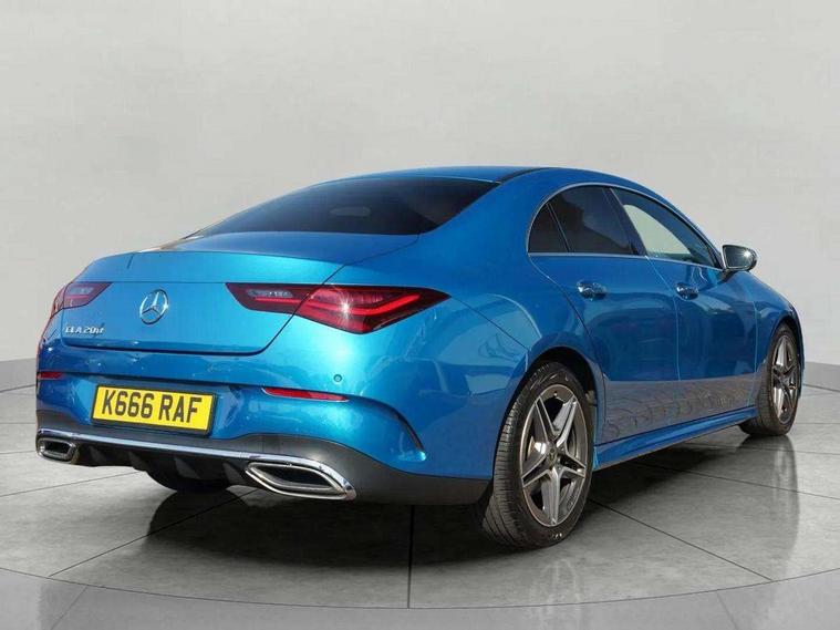 10.25 inch Instrument display with digital cockpit, 10.25 inch touchscreen central media display, Active lane keeping assist, Attention assist - Monitors steering behaviour and long journey fatigue, Bluetooth connection, Car wash mode, Cruise control with limiter, Direct steer system, DYNAMIC SELECT with a choice of driving modes (ECO, Comfort, Sport and Individual), ECO start/stop function, Fluid level warning indicator for fuel, oil, coolant and washer fluid, Hard-disk navigation, Hey Mercedes Voice activation, Lamp failure indicator, Mercedes me connect including emergency call system, accident recovery, breakdown and maintenance management, Mercedes me remote services, Outside temperature gauge, Owners manual in English, Pre-installation of private car share, Radio aerial integrated into front and rear windshields, Service indicator (ASSYST), Smartphone integration with Apple CarPlay and Android auto, Speed limit assist, Trip computer in multifunction display with current consumption indicator, Wireless charging in the front centre console, Comfort suspension with ride height lowering, Rear axle multi-link, DAB digital radio tuner, MBUX multimedia system, Mercedes Benz sound system (100 W) with 6 speakers, Pre installation for Mercedes Benz Link, Adaptive brake lights, AMG body styling with AMG front apron and rear apron and visible exhaust tailpipe in chrome trim elements, Body colour door handles, Electric windows, Electrically adjustable and heated door mirrors with integrated LED indicators, Exhaust system with 2 Visible tailpipe trim elements and rear apron with trim in chrome, Headlamp assist automatic headlamp activation, Heated glass rear windscreen + timer control, High gloss aluminium beltline strips, High level LED third brake light, Interior mirror with black reading lamps and frameless, LED high performance headlamps with integrated LED daytime running lights and adaptive highbeam assist, LED tail lamp, Privacy glass with dark tinting on rear side windows and rear window, Radiator grille with Mercedes-Benz pattern in chrome with central Mercedes star and single louvre with chrome inserts, Rain sensing windscreen wipers with two sensitivity settings, Rear boot, Rear fog lamp, Rear side wing doors, Variable front intermittent wipers, Window line trim strip in high gloss aluminium, 3 seat bench in 2nd row, 3 twin spoke flattened multifunction steering wheel in nappa leather - horizontal twin spoke in high gloss black, vertical twin spoke in silver chrome, 4 way lumbar support, 40:20:40 split folding rear seat backrests, Air conditioning - One zone THERMATIC automatic climate control with automatically controlled air distribution, Air vents with surround in silver chrome, Artico man-made leather/Microcut microfibre upholstery, Automatic child seat recognition sensor, Black roof lining, Brushed stainless steel sports pedals with rubber studs, Floor mats with stitched AMG lettering, Front centre armrest with stowage, Galvanished gear shift paddles in silver chrome, Heated front seats, Interior lighting - 64 colour Ambient lighting, Luggage net on driver/front passenger seat backrest, Manually height and reach adjustable steering column, Rear head restraints, Single front passenger seat, Sport seats with fixed head restraints, Stowage compartment in centre console with retractable cover, Sunvisors with illuminated vanity mirrors, Twin front cupholders, Two outer rear seat isofix and top tether child seat fixing points, Keyless go comfort pack - CLA, Light and sight pack - CLA, Mirror pack - CLA, Parking pack with reversing camera - CLA, Seat comfort pack - CLA, USB package plus - CLA, Active bonnet pedestrain safety measure which detects an impact and raises bonnet by 65mm, Active brake assist includes forward collision warning system with autonomous braking, Adaptive brake assist with hold function and hill start assist, Anti lock braking system (ABS) with brake assist, Black seat belts, Bonnet with power domes, Brake calipers with Mercedes-Benz lettering, Brake pad wear warning indicator, Childproof locks manually operated for rear doors and electrically operated for rear power windows, Crash responsive emergency lighting, Driver and front passenger head and sidebags, Driver and front passenger windowbags, Drivers knee airbag, Dual stage driver and front passenger airbags, Electric parking brake, Electronic stability programme with acceleration skid control, ESP curve dynamic assist, Front and rear seatbelt reminder, Front passenger seat occupancy sensor, Perforated front brake discs, Three point rear seat belts, Tyre pressure monitoring system, Warning triangle and first aid kit, Alarm system with immobiliser and interior protection -Thatcham category 1, Guard 360 deg vehicle protection - tow away protection with visual, acoustic warning, interior monitoring, preinstallation for parking damage, Remote central locking and crash sensor with emergency opening function, Light aluminium with longitudinal grain interior trim, 18" AMG 5 twin spoke light alloy wheels painted in termolite grey with high sheen finish, Summer tyres, Tirefit tyre sealant kit,