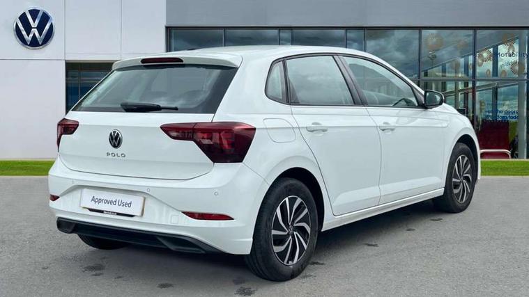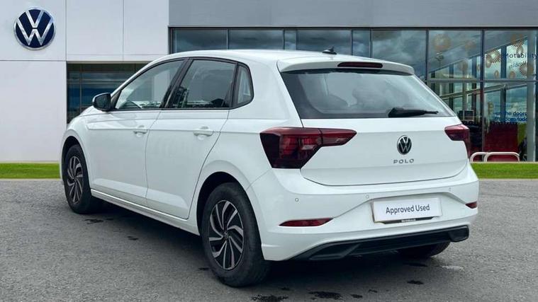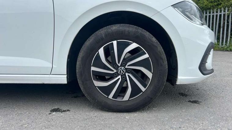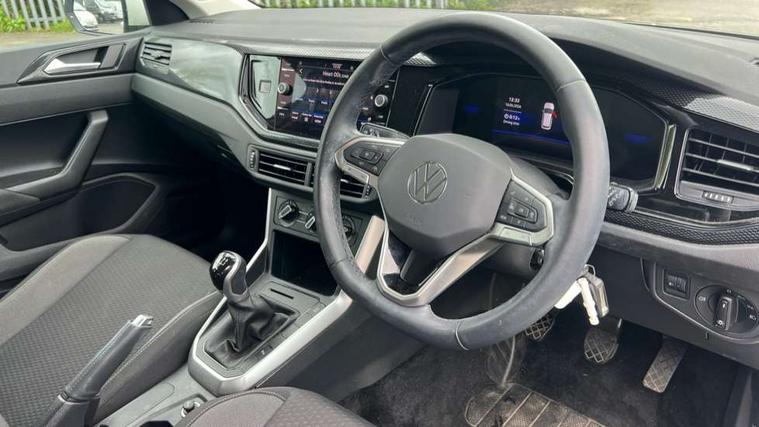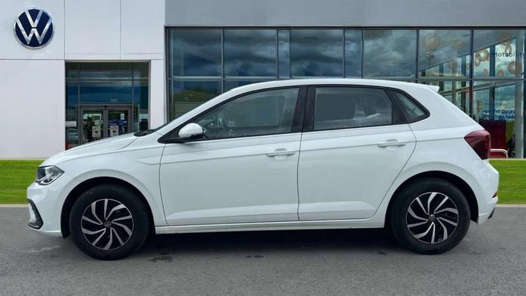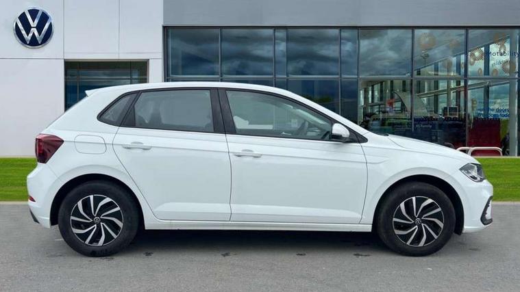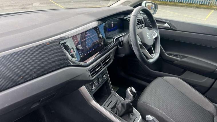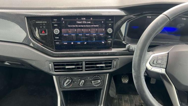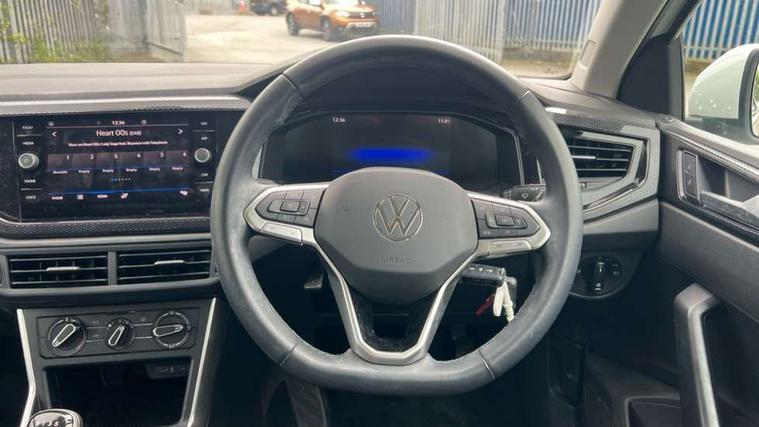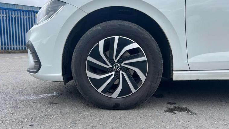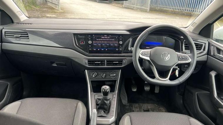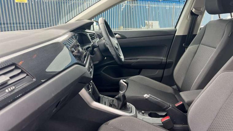 Adaptive cruise control without follow-to-stop and speed limiter, Advanced driver attention and drowsiness monitor, Bluetooth mobile phone interface, Dynamic road sign display, Emergency call service, Power assisted speed sensitive steering, Preparation for navigation system with media and internet package, Preparation for We connect and We connect plus, Speedo and rev counter, electronic odometer, trip, service interval display and exterior temperature gauge, Standard rear axle, Travel Assist - Lane keeping system and traffic jam assist, Travel assist including emergency assist, Trip computer, Warning signal and warning light for front and rear seatbelts not fastened, Washer fluid level indicator, Wireless app connect, Front wheel drive, Rear shock absorpion, Start-stop system with battery regeneration (recuperation - energy recovery during braking), DAB Digital radio, Diversity antenna for FM reception, Automatic dimming interior rear view mirror, Automatic headlight control with LED separate daytime running lights with coming/leaving home function, Body colour bumpers with chrome inserts, Body colour door handles, Body colour door mirrors, Electric front windows, Engine badge deletion, Headlight range adjustment, Heat insulating and laminated safety glass windshield, Heat insulating darkened glass in side and rear windows, Heat insulating glass windscreen, LED Headlights, LED rear combination lamps, Power folding adjustable/heated exterior mirrors and front passenger exterior mirror lowering function, Rain sensor, Rear electric windows, Rear fog light, Rear side wing doors, Rear windscreen washer and wiper with interval delay, Third brake light, 12V power socket in centre console, 2 front and 2 rear reading lights with switch off delay and dimmer, 2 USB-C ports in the front, 2 USB-C charging sockets on the center console in the rear, 3 rear head restraints, 60/40 split folding rear seat and rear seat bench not split, Ceramique roof lining, Chrome plated radiator grille inserts, air vent surrounds and light switch surrounds, Door and side trim panel, Driver and front passenger seat height adjustment, Driver/passenger sunvisors with illuminated vanity mirrors, Front centre armrest, Front seat backrest storage pockets, Front standard seats, Handbrake lever handle in leather, Hartley/Thomas cloth upholstery, Headliner in recycled material, Isofix child seat preparation easy-fit (for two outer rear seats, and front passenger seat) compatible with I-size, Leather trimmed gear knob, Luggage compartment cover, Luggage compartment lighting, Removable luggage compartment floor, Single front passenger seat, Standard climatic zones, Standard pedal cluster, Three spoke leather wrapped multifunction steering wheel, Light and vision pack - Polo, 3 point height adj front seatbelts + pretensioners, 3x3 point rear seatbelts, ABS, Driver and front passenger airbag with front passenger airbag deactivation, Drivers and front passengers safety optimised head restraints, ESC (Electronic stability control) + EDL (Electronic Differntial lock) and ASR (Traction control), Extended and predictive pedestrian/ cyclist protection, Front assist with autonomous emergency braking (for Adaptive Cruise Control ACC up to 130 mph), Front curtain and side airbags with center airbag, Front disc brakes, Hill hold control, Manual child lock in rear doors, Rear drum brakes, Single tone horn, Tyre pressure loss indicator, Alarm with interior protection, Anti-theft alarm system with interior monitoring, backup horn, and towing protection, Anti-theft wheel bolts, Electronic engine immobiliser, Lava stone black gloss/matt decorative inserts in dash and front door panels, Low rolling resistance tyres,