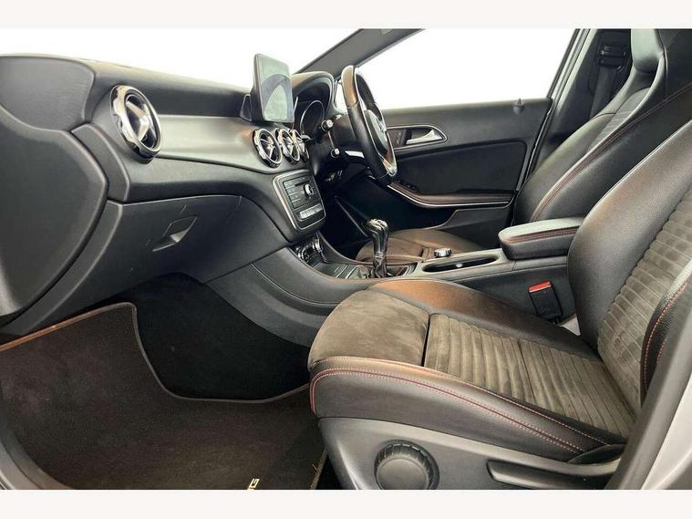 8" colour display screen, Attention assist, Cruise control + speed limiter, DYNAMIC SELECT with a choice of driving modes (ECO, Comfort, Sport, Sport+ and Individual), Easy-pack tailgate - Powered opening/closing automatically, Low fuel level warning light, Multi function trip computer, Outside temperature gauge, Reversing camera, Service indicator (ASSYST), Smartphone integration with Apple CarPlay, Sports steering system, Comfort suspension, 6 speakers, Bluetooth connectivity including audio streaming, Media interface, Mercedes Audio 20 radio/single CD, SD card slot, USB port, Adaptive brake lights, AMG body styling, AMG front and rear apron, Aspherically curved door mirror glass, Automatic headlamp activation, Body colour bumpers, Body colour door handles, Body colour side skirt, Electric front windows, Electric heated + adjustable door mirrors, Electric rear windows, Front fog lights, Heated rear window with timer, Heated windscreen wash system, LED indicators in door mirrors, LED tail lights, Rain sensor windscreen wipers, Rear privacy glass, Rear windscreen wiper with auto activation when reversing, Roof spoiler, Twin chrome exhaust tailpipes, 1/3 to 2/3 split folding rear seats, 12V power socket in centre console, 12V socket in luggage compartment, 3 spoke flat bottom multifunction nappa leather steering wheel, Ambient lighting, AMG brushed stainless steel sports pedals with rubber studs, AMG floor mats with red stitching, Artico man-made leather/Dinamica upholstery, Auto Mercedes-Benz child seat recognition sensor, Black headlining, Centre console storage, Centre console with cupholders, Courtesy light in boot, Footwell lights, Front and rear headrests, Front centre armrest with storage compartment, Height adjustable front seats, Height/reach adjustable steering column, Illuminated door sills, Illuminated glovebox, Interior door handle illumination, Isofix rear child seat preparation, Leather trimmed gearknob, Load securing rings in luggage compartment, Luggage compartment cover, Luggage compartment lighting, Rear Reading Lamps, Sports seats, Sunvisors with illuminated vanity mirrors, THERMOTRONIC automatic climate control, 3 rear 3 point seatbelts, ABS with Brake Assist, Active bonnet, Adaptive brake system, Black seat belts, Brake calipers with Mercedes-Benz lettering + perforated brake discs, Child proof door locks, Crash responsive emergency lighting, Drivers knee airbag, Dual stage driver/passenger airbags, Electronic parking brake, ESP with ASR, Front and rear seatbelt reminder, Front passenger seat occupancy sensor, Front side airbags, Hill start assist, Tyre pressure monitoring system, Warning triangle and first aid kit, Window airbags, Alarm system/interior protection/immobiliser, Chrome surround in electric key, Keyless start, Remote central locking, Chrome air vent surrounds, Light aluminium with longitudinal grain interior trim, Run flat tyres,