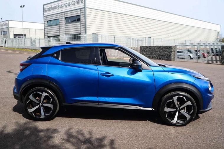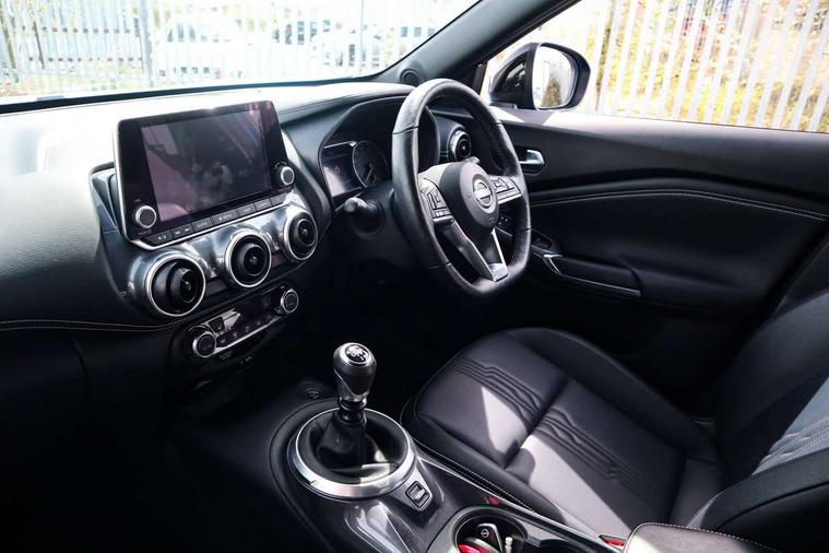 7" full colour TFT screen combimeter, Apple CarPlay and Google Android auto, Drive modes select (Eco, normal and sport), Emergency and breakdown call, Front parking sensor, Idle start/stop system, Intelligent lane intervention, Lane departure warning system, Nissan connect 8" touch screen entertainment system, Nissan connect nav with TomTom traffic, Nissan connect services and Wifi connection, Outside temperature sensor, Power Steering, Rear parking sensor, Traffic sign recognition, Trip computer, Voice recognition, Gasoline particulate filter, 10 Bose speakers 6 speakers and 2 headrest speakers for driver/passenger seats, Bluetooth system, USB, Aux-in and 12V socket, Bose personal sound stage control, DAB Digital radio, Rear console USB port, Auto dimming interior rear view mirror, Auto headlights, Automatic hazard signal with emergency stop signal, Body colour bumpers, Body colour door handles, Electrically adjustable door mirrors with integrated indicators, Follow me home headlights, Front and rear electric window with one touch driver window, Heated and auto folding door mirrors, High beam assist, LED daytime running lights, LED front fog lights, LED headlamps, LED rear fog lamp, LED rear lamps, Rain sensor windscreen wipers, Rear privacy glass, Rear side wing doors, Rear wiper, Thermaclear heated windscreen, Three blink turn signal, 3 height adjustable rear headrests, 3 seat bench in 2nd row, 60/40 split folding rear seat, Automatic climate control, Card holder on driver sunvisor, Door ambient lighting, Driver and passenger sliding and reclining seats, Driver seat back pocket, Driver side rear coat hanger, Driver/passenger sunvisors and vanity mirrors, Front and rear cabin lights, Front armrest, Front door pockets with bottle holders, Front head restraints, Front passenger isofix child seat anchorage point, Front/rear passenger grab handles, Gear console ambient circle lighting, Grey synthetic leather kneepad, Heated front seats, Height adjustable driver's seat, Height adjustable passenger seat, Internal chrome door handles, Leather gearshift knob, Leather steering wheel, Luggage board, Luggage space lighting, Monoform sporty seats, Multifunction steering wheel, Passenger seat back pocket, Rear door bottle holders, Single front passenger seat, Synthetic leather upholstery, Telescopic steering wheel adjustment, Two cupholders in front centre console, Two rear isofix child seat anchorage points with top tether, Welcome light and console tray ambient lighting, Advanced safety shield pack - Juke, ABS with EBD and brake assist, Active ride control, Active Trace Control, Driver and passenger airbags, Driver and passenger side airbags, Electric handbrake with auto hold function, Electronic Stability Programme (ESP), Front and rear curtain airbags, Height adjustable seatbelts, Hill start assist, Intelligent emergency braking with pedestrian and cyclist recognition, Rear door child safety locks, Seatbelt reminder for driver/front passenger and rear seats, Single tone horn, Three 3 point rear seatbelts, Traction control, Tyre pressure monitoring system, VDC Dynamic Vehicle Control, Ventilated rear brake discs, Alarm, Immobiliser, Intelligent key and start push button with walk away lock and approach unlock functions, Remote central locking,