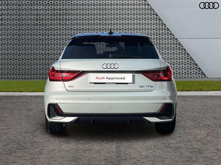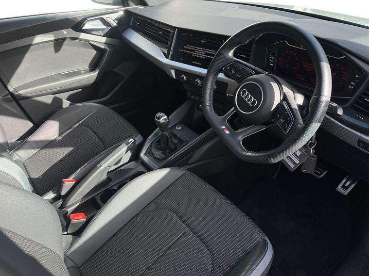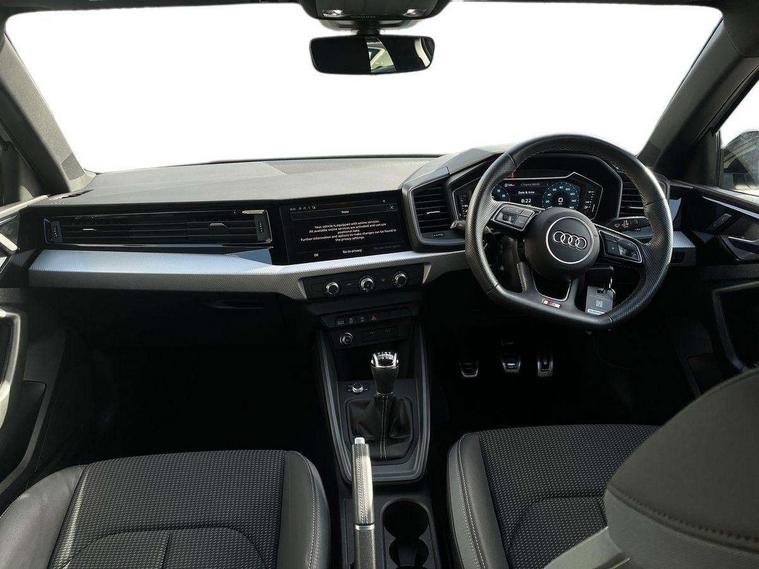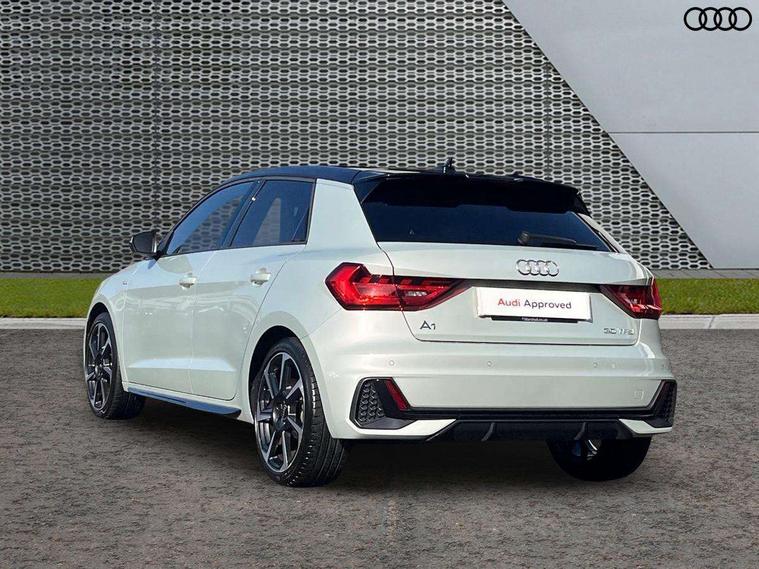 10.25" Digital instrument cluster display classis style instrument dials + speed, odometer, time, outside temperature, telephone menu + fuel level warning, Audi drive select - power steering assistance + engine, Audi smartphone interface with connect compatible smartphone via USB directly MMI display + Nav, music, third party apps controlled via MMI controller, Automatic start/stop system, Bluetooth interface, Cruise control, Driver's information system, Electromechanical power steering, Emergency e-call, Emergency services call system, Lane departure warning system, Service interval indicator, Speed limiter, Voice control system, Washer fluid level indicator, Sports suspension, 1 x SDXC card reader, 2 x USB type C connection points, DAB Digital radio, MMI radio plus with 8.8" colour MMI display screen and MMI touch, Auto dimming rear view mirror, Black door mirrors, Black side skirts, Body coloured bumpers, Door sill trims with aluminium inlays and logo, Electric front and rear windows, Electrically adjustable, heated, folding door mirrors with integrated LED side indicator, Front side air inlets in grained matt black and C frame in anthracite black, Front wing badges, Heat insulating glass windscreen and side windows, Heated rear windscreen, High level LED brake light, LED headlights with LED rear lights + dynamic rear indicators + headlight adjustment and high beam, turning light + LED daytime running lights, Radiator protective grille frame in matt aluminium silver, Rain and light sensors, Rear diffuser strip in matt titanium black, Rear fog lights, Rear side wing doors, Rear wing door, Rear wiper, Side front spoiler lips in grained matt black, 12V socket in centre console with two cup holders, 3 rear seats with headrests, 3 seat bench in 2nd row, 3 spoke flat bottomed multi-function plus leather steering wheel with S badging, grips in preforated leather and contrast stitching, 40:60 Split folding rear seat or folded fully, Black cloth headlining, Driver and passenger seat with manual height adjust with forward and backwards adjustment, Front and rear black floor mats with contrast stitching in fine silver, Front head restraints, Front passenger seat, Height and reach adjustable steering wheel, ISOFIX child seat mounting for front passenger and outer rear seats including top tether attachment point of outer rear seats, Leather gear knob with aluminium trim, Luggage compartment light with front and rear reading lights, Manually adjustable lumbar support in front seats, Stainless steel pedals, Black styling pack - A1 Sportback Black Edition, LED interior lighting pack - A1, Luggage compartment pack - A1, 3x3 point rear seatbelts, Audi pre-sense front with pedestrain and cyclist recognition, Brake assist function, Driver and front passenger airbag with front side and head airbags, Electronic Stability Control including ABS, EBD, ASR and EDL, Front passenger airbag deactivation switch, Hill hold assist, Manual rear child locks, Seatbelt height adjustment for front seats, Seatbelt monitoring, Tyre pressure warning light, Warning triangle and first aid kit, Anti theft alarm, Anti theft wheel bolts and loose wheel warning, Immobiliser, Remote central locking with 2 foldaway keys, Aluminium trim for control switches, air vents and digital instrument cluster, Silver grey inlays polygon structure in diamond paint finish, Structured grey accent areas including air vents, door handle recesses and centre console in quartz paint finish, 18" 7 spoke rotor design alloy wheels in gloss anthracite black, diamond cut finish,