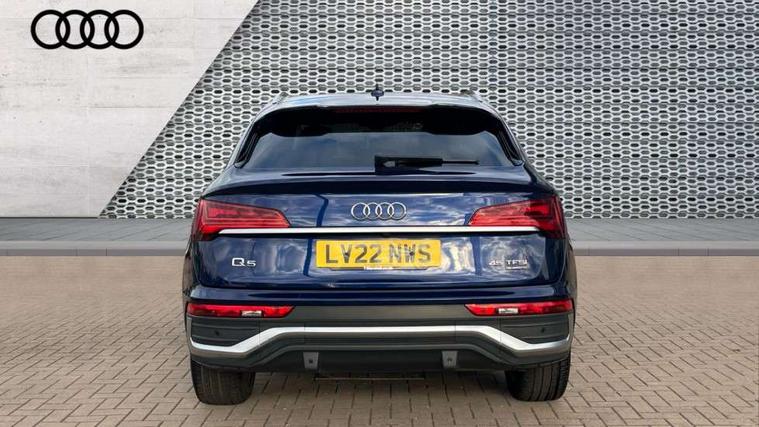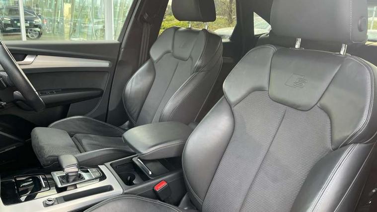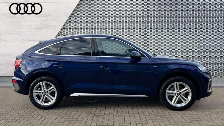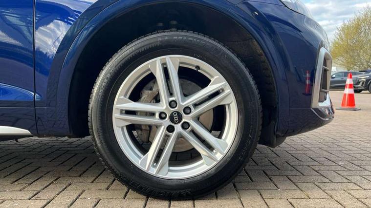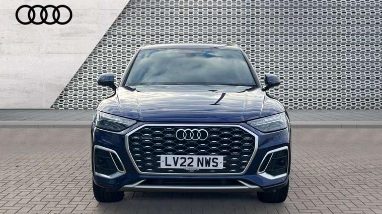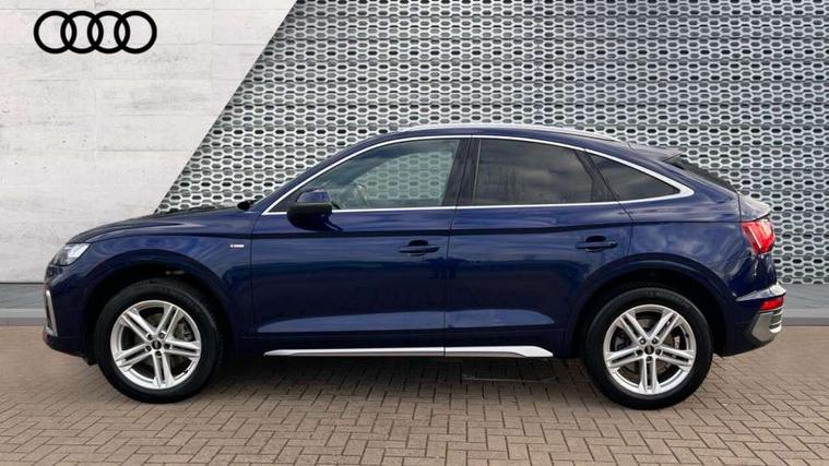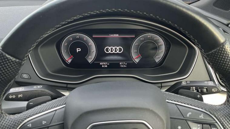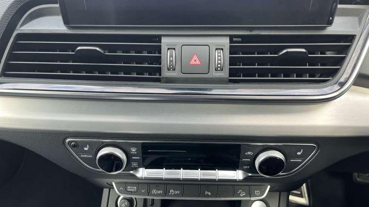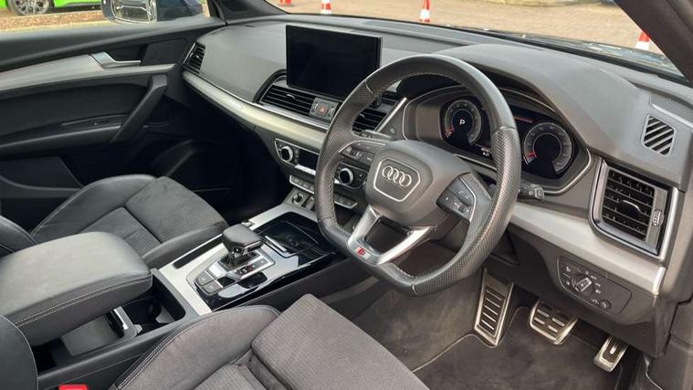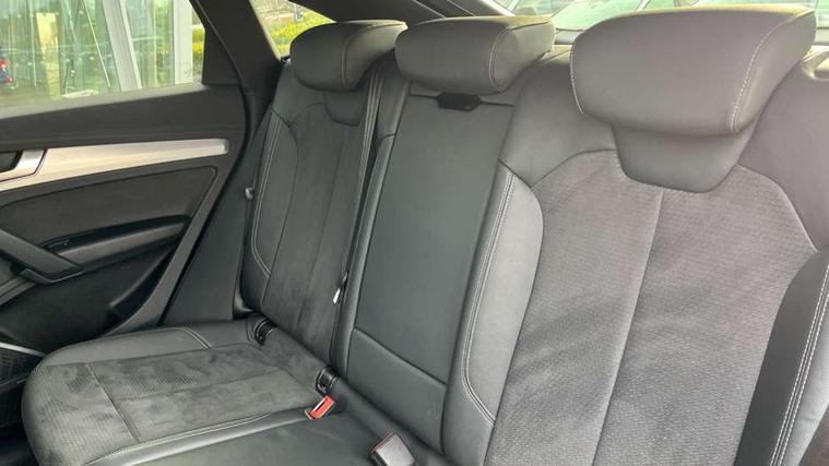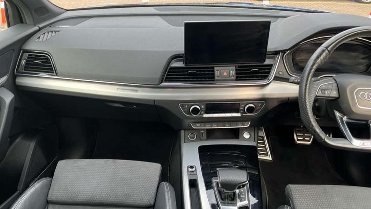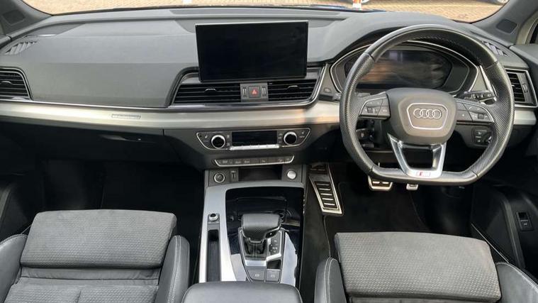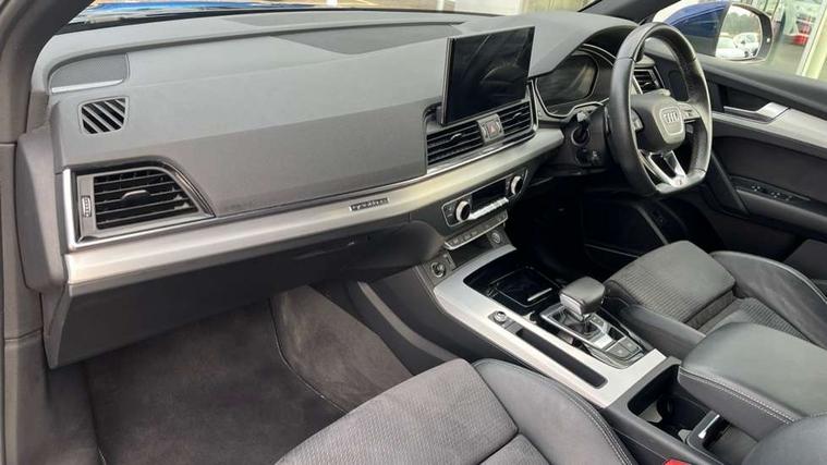 Audi connect safety and service (e-call), Audi connect with Amazon Alexa Integration, Audi drive select, Audi virtual cockpit plus with 12.3" screen and three different layout designs, Audi wireless smartphone interface, Automatic start-stop system with coasting functionality and efficiency programme, Bluetooth interface, Electro - mechanical power assisted steering, MMI navigation plus with 10.1" touch screen, Power tailgate, Reversing camera, Service interval indicator, Voice control system with Audi hotword activation "Hey Audi", Quattro on demand, S line sports suspension, 2 x USB charging port with aux input socket, DAB Digital radio, Acoustic windscreen, Aluminium roof rails, Audi matrix LED headlights with dynamic front and rear indicators, Auto dimming door mirrors, Auto dimming rear view mirror, Automatic headlights and windscreen wipers, Body colour door mirrors, Body colour rear diffuser with matt aluminium silver surrounds, Body colour underbody protection, Chrome plated exhaust trims, Daytime running lights, Door sills in Selenite silver, Electric adjustable/heated/folding door mirrors, Front air inlet surrounds in aluminium, Front and rear electric windows, Front radiator grille in honeycomb design, Headlight washers, High level LED brake light, Lower bumpers painted in contrast Manhattan grey, Rear chrome trim strip below lights, Rear privacy glass and rear side windows, Rear side wing doors, Rear wiper, Roof bars, S Line badges on the front wings, S Line front and rear bumpers, S Line rear spoiler, S Line side skirts, 3 rear headrests, 40:20:40 split folding 3 rear bench seat in 2nd row with rear centre armrest, Black cloth headlining, Comfort front centre armrest, Contrast stitching on seats, steering wheel and gear lever gaiter, Deluxe 3 zone electronic climate control, Front head restraints, Front/rear floor mats, Gear lever in black leather, Heated front seats, Height/reach adjustable steering column, Illuminated door sill trims with S logo, ISOFIX child seat mounting and top tether, Manual seat adjustment with 4-way electric lumbar support, Removable luggage compartment floor, Single front passenger seat, Stainless steel pedals, Sunvisors with vanity mirrors, Trunk roller cover, High gloss pack - Q5, LED interior light pack - Q5, 3 point seatbelts on all seats, 6 airbags - Driver, front passenger, curtain and side airbags, Electrically operated child locks on rear doors, Electromechanical parking brake, Electronic stabilisation control including ABS, ASR and EDL, Front passenger airbag deactivation, Hill descent control, Hill hold assist, Multi collision brake assist, Pop-up bonnet for pedestrian protection, Pre sense city, Seat belt force limiter, Seatbelt monitoring, Tyre pressure warning, Warning triangle and first aid kit, Anti theft alarm, Anti-theft wheel bolts, Keyless Go access/ignition system, Remote central locking, Matt brushed aluminium inlays,