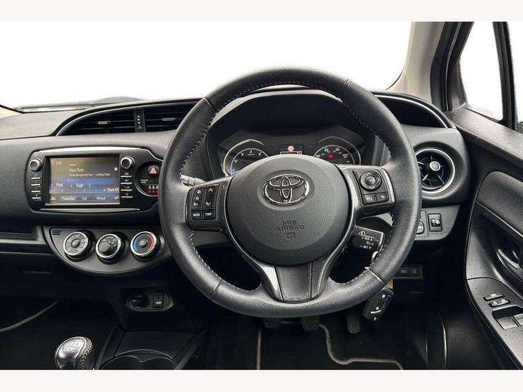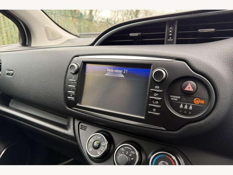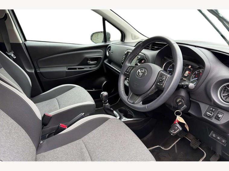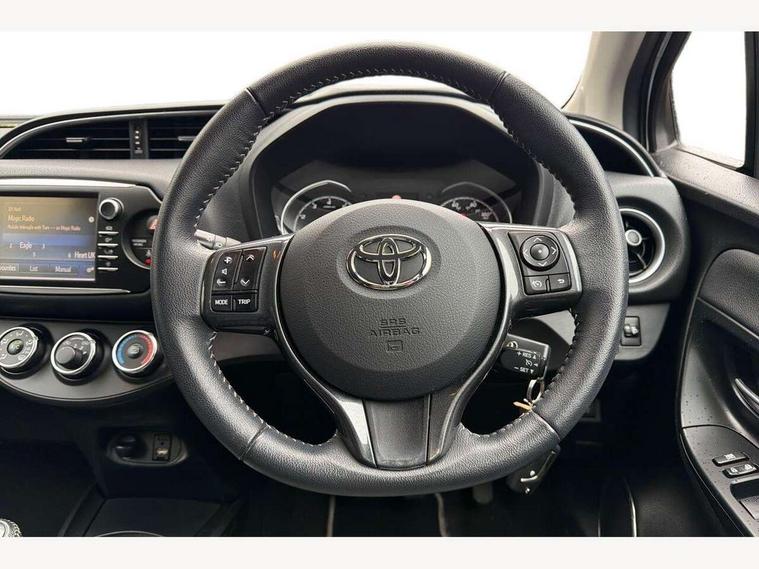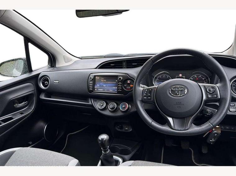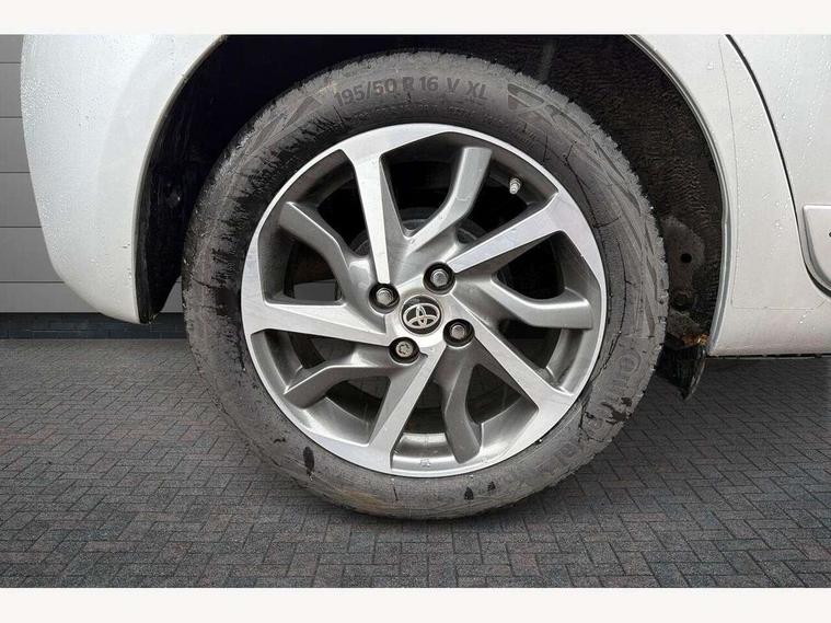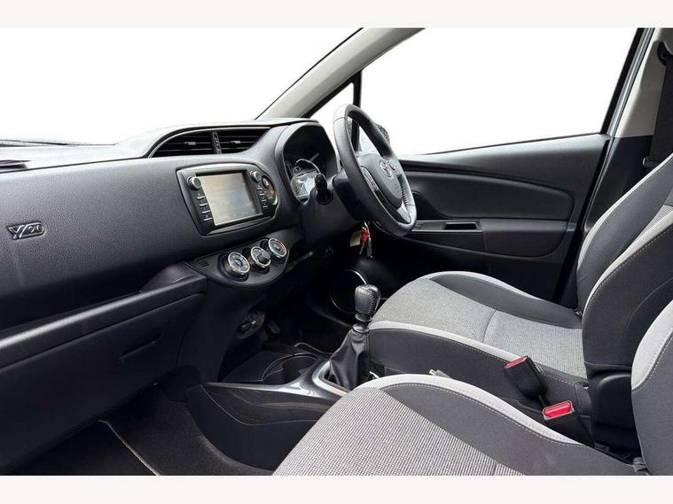 4.2" coloured LED TFT multi information display, Analogue speedometer, Analogue tachometer, Auto speed limiter, Bluetooth connectivity, Cruise control, External temperature gauge, Fuel indicator with low level warning, Key reminder warning, Lights on warning, Multi information display switches on steering wheel, Power Steering, Reversing camera, Trip computer, 6 speakers, Auxiliary input socket, Steering wheel mounted audio/telephone switches, Toyota Touch 2 with DAB, USB connection, Auto up and down function on drivers window, Automatic wipers, Bi-tone grey roof, Black lower front grille, Body colour bumpers, Body colour door handles, C pillar decal, Daytime running lights, Electric adjustable heated door mirrors, Electric front windows, Follow me home headlights, Front fog lights, Grey contrasting colour door mirrors, Grey door moulding, Grey door side sills, Grey front grille and fogs, Headlight cut-off reminder, LED High mounted stop lamp, Manual dimming rear view mirror, Privacy glass, Projector headlights, Rain sensitive windscreen wipers, Rear combination lights bulb type, Rear window defogger, Rear wiper, Turning signal integrated indicators in door mirrors, Y20 Badging, 12v power outlet - front, 3 adjustable rear headrests, 3 spoke leather steering wheel, 60/40 split folding rear seat, Active headrests, Boot light, Data Communication Module (DCM) connected services, Driver and front passenger personal light, Driver and front passenger Whiplash Injury Lessening seats, Fabric upholstery, Front and rear cup holders, Front map reading lights, Front seats with lumbar support, Glovebox, Height adjustable driver's seat, Height adjustable front head restraints, Illuminated entry system, Isofix seat fixing, Leather gearshift, Manual air conditioning, Map pockets on the backs of the front seats, Pollen filter, Removable rear parcel shelf, Sliding front seats, Soft touch inner door garnish, Tilt/telescopic steering column, Y20 badge interior and in seat trim, 3 point seatbelts on all rear seats, ABS+EBD+Brake assist, Collision mitigation braking system, Emergency brake light system (EBS), Front passenger airbag on/off switch, Front seatbelt reminder, Height adjustable front seatbelts with pre-tensioners and load limiters, Hill start assist control (HAC), Rear child proof door locks, Rear seat belt reminder, Road sign information display, Seatbelt warning lamp and buzzer, Supplemental restraint system (SRS) airbags - 7 airbags including driver, front passenger, curtain, side and knee airbags, Toyota safety sense including Road sign assist, Pre collision system, auto high beam and lane departure alert), Tyre pressure warning system, Vehicle stability control VSC + traction control, Engine immobiliser, Power and remote door locking, Interior satin accents, Soft touch instrument panel, 16" 10 spoke grey machined alloy wheels, Space saver spare wheel,