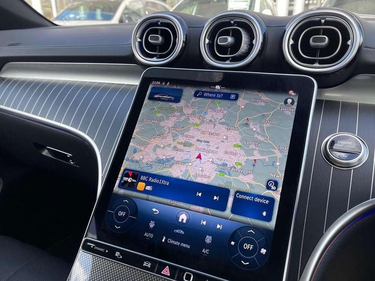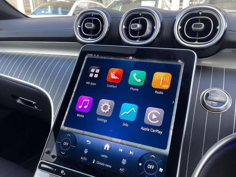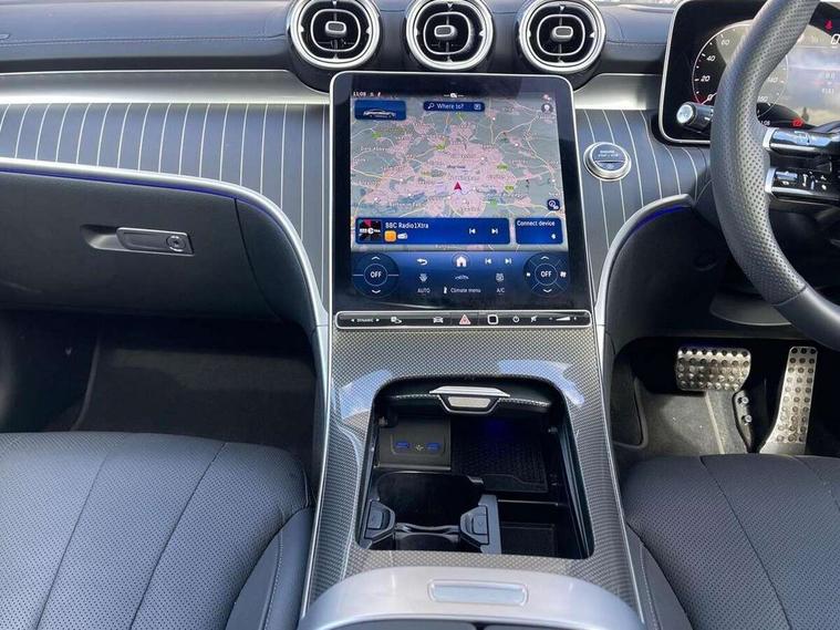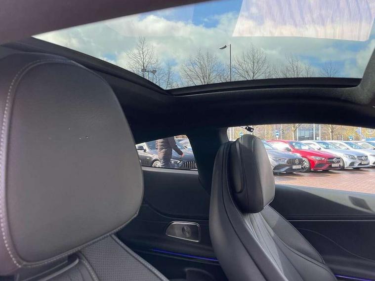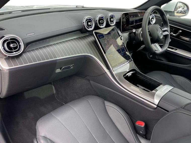 5G Communications module, Active lane keeping assist, Bluetooth connection, Car wash mode, DYNAMIC SELECT with a choice of driving modes (ECO, Comfort, Sport, Sport+ and Individual), eCall emergency call system, Fingerprint scanner, Fluorescent jacket for driver, Fully digital 12.3" driver display screen, Hard-disk navigation, Head up Display, Hey Mercedes Voice activation, MBUX augmented reality for navigation, MBUX navigation premium, PAS, Passive person presence reminder, Portrait format 11.9" touchscreen central display with driver orientation, Smartphone integration with Apple CarPlay and Android auto, Traffic sign assist, Wireless charging system for mobile devices in the front, 66 litre fuel tank, 9G TRONIC plus automatic transmission, Agility control sports suspension lowered by 15 mm, Integrated starter generator Gen 2, Sporty engine sound system, Burmester 3D surround sound system with sound personalisation, Digital radio, MBUX extended functions, MBUX multimedia system, AMG bodystyling, AMG Line exterior, Auto headlights, Electric windows, Heat insulating dark tinted glass, LED 3rd brake light, LED Day time running light, LED digital light with adaptive highbeam assist plus, Panoramic sliding sunroof, Rain sensor windscreen wipers, Rear boot, Variable front intermittent wipers, 2 individual rear seats, 2 rear head restraints, Ambient lighting premium, Ambient lighting with projection of brand logo, AMG floor mats, AMG line interior, Belt feeder, Black fabric roof liner, Climatised massage multicontour front seats, Folding rear seat backrests, Front headrests, Heated front seats, Heated steering wheel, Illuminated door sill panels with Mercedes Benz lettering, Instrument panel and beltlines in ARTICO manmade leather in nappa look, Leather upholstery, Multifunction sports steering wheel in nappa leather, Power height and reach adjustable steering column, Single front passenger seat, THERMATIC automatic climate control, Interior light pack - CLE, Keyless-Go comfort package - CLE, Memory seat pack - CLE, Mirror pack - CLE, Parking package with 360 degree camera - CLE, Stowage space package - CLE, USB package plus - CLE, Anti-lock braking system (ABS), Braking system with larger brake discs on the front axle, Centre airbag, Dual front airbags, Electric parking brake, Electronic Stability Programme (ESP), Front and rear seatbelt reminder, Hill start assist, Pedestrian protection, Rear side airbags, Tyre pressure monitoring system, Anti theft alarm system, Guard 360 degree vehicle protection plus, Increased anti-theft protection, Interior monitoring system, Black open-pore aluminium lines wood trim with mixed fabric look metal finish centre console, 20" AMG multi spoke light alloy wheels painted in black with high sheen finish - RVM, Tirefit,