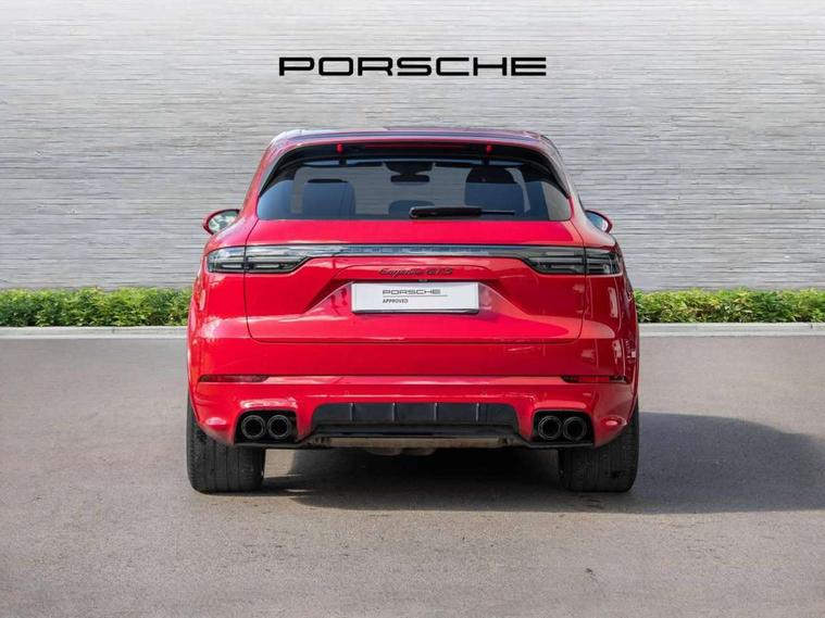 Android Auto, Apple car play, Brake pad wear indicator, Central analogue rev counter with black dial face and GTS logo, Driver personalisation for climate, audio and communication, assistance systems and other customisable car systems, Emergency call service, High resolution 12.3-inch touchscreen display in full HD resolution, Individual mode for individual selection of vehicle drive settings, Instrument cluster with two high-resolution displays, Mobile phone preparation with Bluetooth interface for telephone and music, Porsche Communication Management (PCM) including online navigation module, mobile phone preparation, audio interfaces and voice control system, Power tailgate, Vehicle electrical system recuperation, Warn and brake assist including pedestrian protection, 8 Speed Tiptronic S transmission with auto Start-Stop and coasting function, 90 litre fuel tank, Adaptive cylinder control, Aluminium cylinder heads and engine block, Direct fuel injection (DFI) with central injector position, Front and rear aluminium multi link axles, Gasoline particulate filter, Porsche Torque Vectoring Plus (PTV Plus), Sport mode, Twin turbo charged with twin scroll turbochargers, VarioCam, Water cooled with thermal management, AM radio, Digital radio, Two USB charge ports in rear compartment, Two USB charging and connectivity ports in the front centre console storage compartment, Active air intake flaps, Automatic headlight activation including welcome home functionality, Bumper system with high strength cross members and two deformation elements + Two receptacles with screw threads towing lug + onboard tool kit, Door lower cladding trim in exterior colour, Electric windows + anti trap protection + one touch open/close drivers side, Electrically adjustable, folding and heated exterior mirrors, aspherical on drivers side including courtesy lights, Exclusive tinted LED tail lights with three dimensional lighting graphic including light strip and integrated four point brake lights, Extensive aerodynamic underbody protection, Four point signature LED daytime running lights, Front end with integrated air intakes and airblades for the side air intakes, Front light modules including position lights and direction indicators in LED light guide technology, Front windscreen wipers with two speeds, intermittent wipe and rain sensor, Fully galvanised steel / aluminium hybrid lightweight bodyshell and Aluminium bonnet, tailgate, doors, side panels, roof and front wings, Gloss black side window trims, Heated rear window with automatic switch off, LED High level third brake light integrated into roof spoiler, Porsche logo and cayenne GTS model designation on tailgate in matt black, PORSCHE' lettering integrated in tailgate strip, Rear apron lower cladding painted in exterior colour, Rear side wing doors, Rear window wiper with intermittent function and washer jet, Sports exhaust system including sports tailpipes in black, Tailgate with integrated roof spoiler in exterior colour, Two twin exhaust tailpipes, left and right and brushed stainless steel finish, 3 seat bench in 2nd row, Alcantara roof lining, B-pillar clothes hooks on driver and passenger's side, Charge air cooling, Double sun visors for driver and front passenger, Driver/passenger sunvisors and vanity mirrors, Elevated centre console with handles, Five seats rear seat system with two comfort outer seats and a central seat, Front and rear bottle holders in door panels, Front centre armrest, GTS logo on door sills front, left and right in black, Integrated front headrests/2-way headrests rear, Isofix fastening system for child seats on outer rear seats, LED interior light with switchoff delay function, footwell + glove compartment light, ashtray + ignition lock illumination, front + rear reading light, Manual height adjust for driver and front passenger seat belt, Particle/pollen filter with active carbon filter, Rear seat split folding design 40:20:40, Fold out centre armrest with integrated cup holder, manual fore/after adjust and backrest angle adjust, Retractable roller luggage compartment cover in detachable cassette, Sideskirts in black plastic, Single front passenger seat, Stainless steel pedals, Storage compartments - Cooled glove compartment, front centre console, door and map pockets on front seat backrests + side luggage compartment, Three 12V power sockets - front below the glove compartment, centre console and at side of luggage compartment, Two integrated cup holders in front and rear with variable diameter, Sport design package - Cayenne, 3-point automatic seatbelts with front and outer rear seats pretensioners and front force limiter with 3-point automatic seatbelt for rear centre seat, 4 piston aluminium monobloc fixed caliper brakes at rear and internally vented brake discs, 6-piston aluminium monobloc fixed caliper brakes at front, internally vented brake discs, Active bonnet, Auto hold function, Brake discs with diameter 390mm at front 358mm at rear, Curtain airbags along roof frame and side glazing from the A-pillar to the C-pillar, Distance warning, Electronic parking brake, Front passenger airbag deactivation function for front seat mounting of child seat, Front side airbags integrated into seat, Full size driver and front passenger airbags, Knee driver and passenger airbags, Mounting points on passenger seat for ISOFIX child seat mounting system, Multi-Collision braking, Porsche hill control (PHC), PTM Porsche Traction Management active all-wheel drive with an electronically variable, map-controlled multi-plate clutch, ABD and anti-slip regulation, Rear door child safety locks, Rollover detection for activation of curtain airbags and seat belt pretensioners, Seat belt warning system for driver and front passenger and rear seat system, Side impact protection in doors, Tyre pressure monitoring system, Vehicle stability system, Porsche stability management (PSM) including ABS, ASR, ABD, MSR and trailer stability management, Alarm system