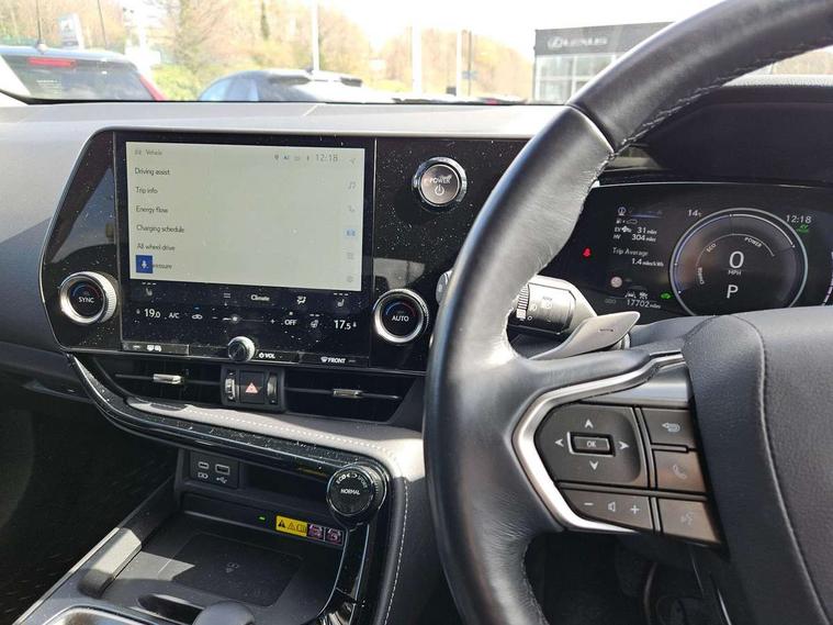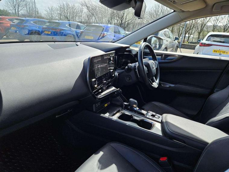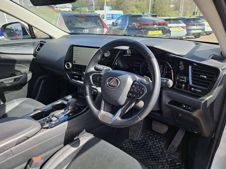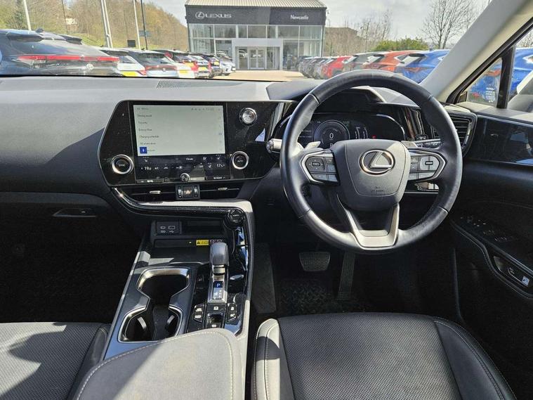 4 driving modes EV/Eco/Normal/Sport, 7" display in instrument binnacle, Blind spot monitoring with rear cross traffic alert, Bluetooth telephone connectivity, eCall emergency system, Electric speed sensitive power steering, Intelligent parking sensors - 4 front and 4 rear, Lane change flasher function, Lexus link connect - Cloud based navigation, cloud based voice assistant, always online and 9.8" VGA touchscreen, Push button starter, Reversing camera with back guidelines, Service interval indicator, Wireless Apple CarPlay and wired Android Auto, Wireless Smartphone charger, 6.6 kW onboard charger, All Wheel Drive (AWD), Hybrid automatic transmission, Vehicle Dynamics Integrated Management (VDIM), Vehicle Stability Control (VSC), 10 speakers, 4 USB ports - 2 front, one USB C, 2 rear USB C, DAB Digital radio, Auto dimming interior rear view mirror, Automatic headlights, Bi LED headlights, Double hidden exhaust pipes, Front and rear one touch power windows, with anti-jam protection, Heated, auto-folding, auto-dimming outside mirrors with reverse tilt function and turn indicators, Illuminated door handles with puddle light, LED brake lights and rear lights with emergency brake signal, LED daytime running lights, LED front fog lights, LED Indicators, Power back door with kick sensor, Privacy glass, rear doors and tailgate, Rain sensor windscreen wipers, Rear side wing doors, Rear wiper, Roof rails, 12V accessory port centre console and luggage compartment, 2 cupholders in front centre console, 2 way electrical lumbar adjustment for driver, 2 x fixed shopping bag hooks in boot, 2 x sun visors with vanity mirror and lamp, 3 seat bench in 2nd row, 4 x tie down hooks in the boot, 6 way manually adjustable front seats, 60/40 split folding rear seat, Adjustable rear seat backrest, Card holder installed in driver and passengers sun visors, Centre armrest with storage box, Dual climate control air conditioning system, Front and rear head restraints, Front and rear textile carpet mats, Front passenger seat, Heated front seats, Heated steering wheel, Leather gear lever, LED interior illumination, Power adjustable leather steering wheel with paddle shifts, Rear centre armrest with 2 cupholders, Tahara leather upholstery, Whiplash Injury Lessening (WIL) feature (active headrest) for seats, 2 x Isofix child rear seat restraints, 3 point ELR front seatbelts with pretensioners, 3x3 point rear seat belts, ABS, Adjustable seat belt anchor points, Driver and front passenger 2 stage airbag, Driver/front passenger side airbags, Drivers knee airbag, E-Latch with safe exit assist, EBD + Brake Assist, ECB (Electronically Controlled Brake System), Electronic parking brake, Front and rear curtain shield airbags, Front center airbag, Front passenger seat cushion airbag, Hill assist control, Lexus safety system - dynamic radar cruise control, pre collision system day and night, lane tracing assist, road sign, automatic high beam, OTA, Manual rear child locks, Passenger airbag cut-off device, Traction control, Tyre pressure warning, 2 x remote key fobs, Anti-theft system with alarm, intrusion sensor, glass breakage sensor, tilt sensor and engine immobiliser, Locking wheel nuts, Smart keyless entry, Speed sensitive auto door locking, Two motion door lock with double lock, VIN Window etching, 3D prism black Inlay, Tyre repair kit,