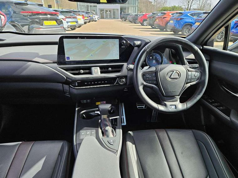 4 driving modes EV/Eco/Normal/Sport, 7" Lexus media display, 8" LFA inspired TFT meters with movable meter ring, Analogue clock with GPS function, Apple car play/Android Auto, Compatible mobile phone bluetooth with audio streaming, E-call, Electric power steering (EPS) with speed sensitive features, Front and rear parking sensor with intelligent clearance sonar, Lane change flasher function, Lexus link connected services, Lexus navigation system, Lexus safety systems + includes dynamic radar cruise control, pre collision system day and night, lane tracing assist, road sign assist, Push button start, Remote touch interface, Reversing camera with back guide lines, Trip computer, F Sport suspension tuning and rear performance dampers, Vehicle Dynamics Integrated Management (VDIM), Vehicle Stability Control (VSC), 2 front USB and 2 rear USB charging points, 6 speakers, AM/FM and DAB radio, AUX socket with VTR compatibility, CD player, Acoustic windscreen, Aero stabilising arch mouldings, Aero stabilising rear lights, Aero ventilated wheels, Aluminium roof rails, Auto dimming interior rear view mirror, Bi-LED (low and high beam) headlights with Auto High Beam (AHB), Black roof drip mouldings, Body adhesive, laser screw welding and laser brazed roof structure, Body coloured bumpers, Colour coded wheel arches, Electric adjustable/heated door mirrors, F SPORT exterior styling consists of black Mesh front grille, enhanced side rockers, metallic coated front bumper and F SPORT badging, Front and rear one touch power windows, with anti-jam protection, Headlight cleaners, LED cornering headlights, LED daytime running lights, LED front and rear fog lights, LED tail lights, LED third brake light, Privacy glass, rear doors and tailgate, Rain sensor windscreen wipers, Rear side wing doors, Rear wiper, Shark fin roof aerial, Single hidden exhaust pipe, Towing preparation, Variable front intermittent wipers, 12V accessory port centre console and luggage compartment, 2 cup holders in the front and rear centre console, 2 way electrical lumbar adjustment for driver, 2 x folding shopping bag hooks in boot, 2 x sun visors with vanity mirror and lamp, 3 seat bench in 2nd row, 4 x tie down hooks in the boot, 5 headrests, 60/40 split folding rear seat, 8 way driver/passenger electrically adjustable front seats, Active sound control, Card holder installed in driver and passengers sun visors, Centre armrest with storage, Driver and passenger door pocket, Dual zone electronic climate control + Nano-E humidity sensor, F Sport aluminium sports pedals, F SPORT dimpled leather gear lever, F SPORT front seat headrest adjustable forwards and backwards, F Sport interior styling, F Sport leather steering wheel with paddle shifts, Fabric/Tahara leather upholstery, Glovebox, Heated steering wheel, Illuminated entry system, LED interior illumination, Map pockets in the rear of passenger's front seat, Rear air vents with 2 USB chargers, Rear armrest with 2 cupholders, Single front passenger seat, Storage tray under audio panel, Textile carpet mats, Tilt/reach adjustable steering column, Under deck storage, Under desk side storage, 2 x Isofix child rear seat restraints, 3x3 point rear seatbelts, Anti-lock braking system (ABS), BAS (Brake Assist System), Driver and front passenger 2 stage airbag, Driver and front passenger knee airbag, Driver/front passenger side airbags, EBD - Electronic brakeforce distribution, ECB (Electronically Controlled Brake System), Electric child locks, Electric parking brake, Front adjustable seatbelt anchor points, Front and rear curtain shield airbags, Front outer seatbelt+pre-tensioners, force limiter+tension reduction: 3-point with active safety link to PCS, Hill start assist control (HAC), Passenger airbag cut-off device, Rear outer seatbelt+pre-tensioners, force limiter+tension reduction: 3-point with active safety link to PCS, Centre belt w/o pre tensioner+force limiter, Secondary Collision Brake (SCB), TRC (Traction Control), Tyre pressure warning, 2 x remote key fobs, Anti theft system : Alarm instruction sensor, glass breakage sensor and engine immobiliser, Locking wheel nuts, Remote central door locking, Speed sensitive auto door locking, Two motion door lock with double lock, VIN Window etching, 18" F Sport alloy wheels with run flat tyres,