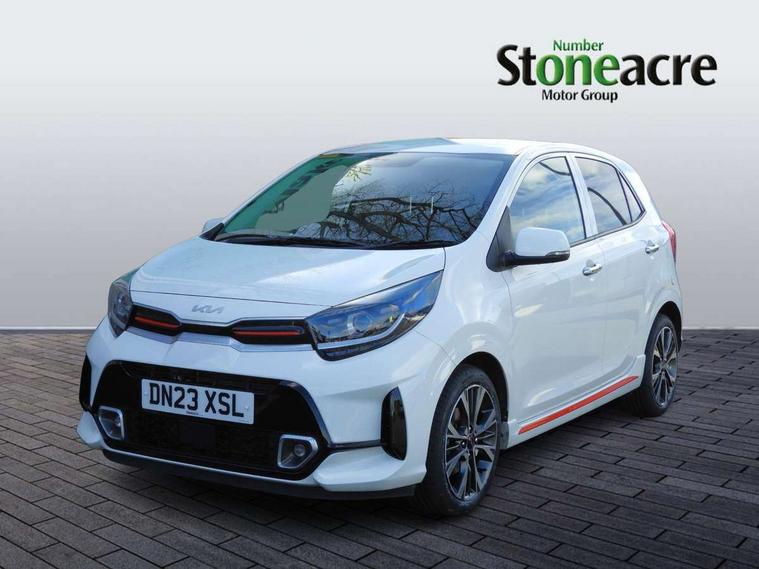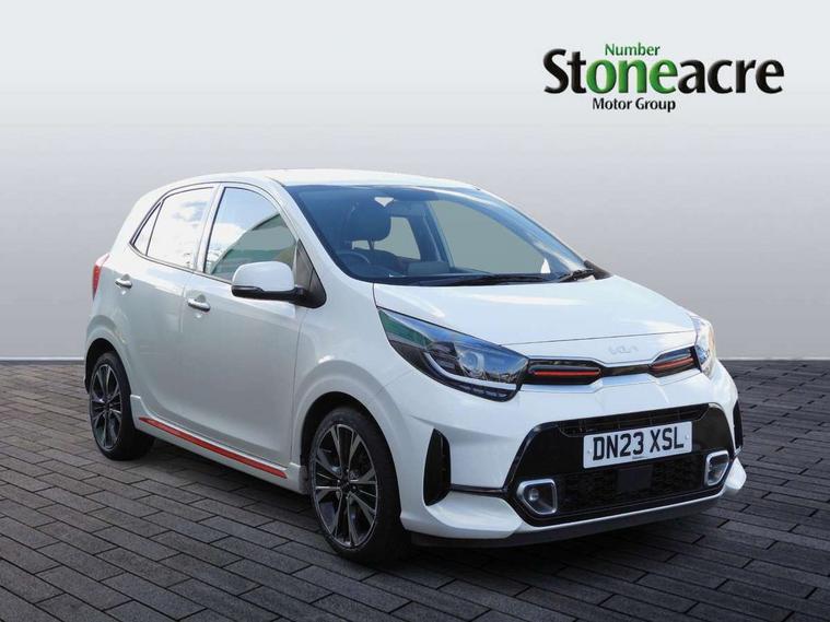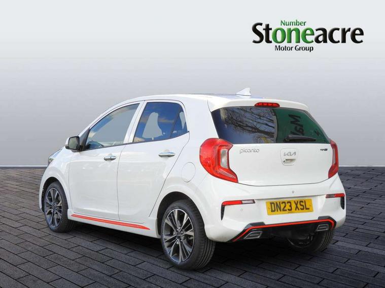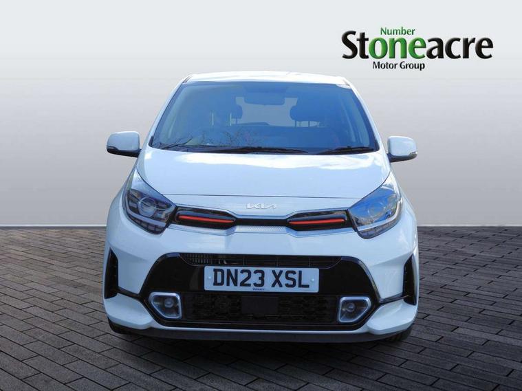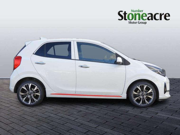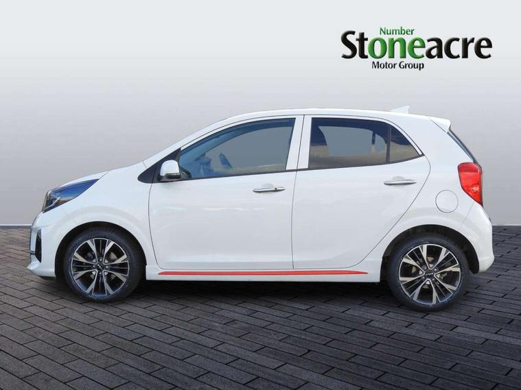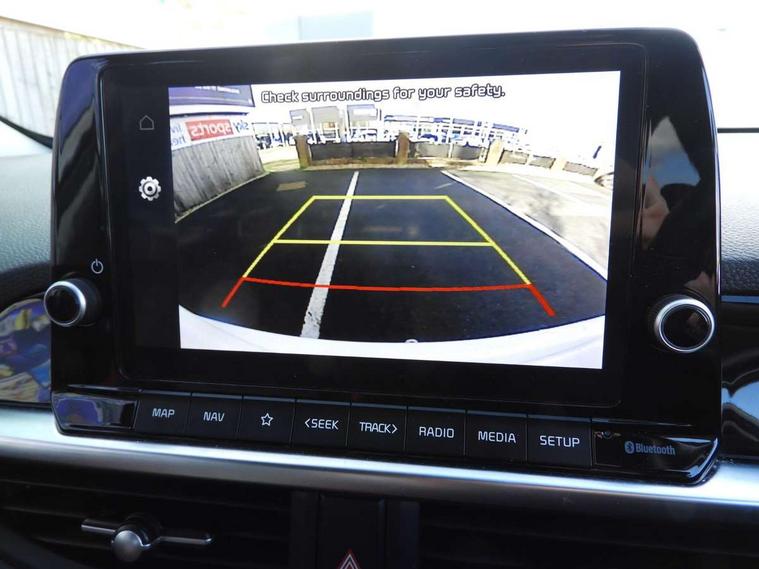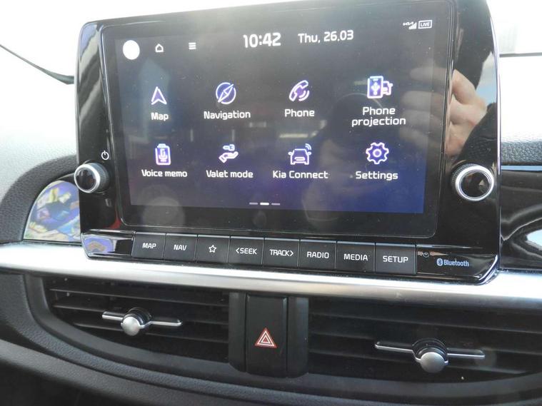 8" touch screen satellite naviagtion with RDS and DAB with telematics, Apple car play/Android Auto with voice control, Cruise control + speed limiter, Emergency call service, Emergency stop signalling system, External temperature gauge, Kia Connect (UVO), Motor driven power steering, Rear parking sensors, Reversing camera system with dynamic guidelines (Integrated into centre fascia screen), Tachometer, Trip computer, Wireless Smartphone charger, 6 speaker audio system, Bluetooth with music streaming, Steering wheel mounted controls, USB ports for connection of a media device, Automatic headlight control system, Bi-function projection headlights, Black beltline mouldings, Black grille with silver surround, Body colour B pillars, Body colour bumpers, Body colour side sill mouldings, Body coloured mirrors and chrome exterior handles, Day/night rear view mirror, Electric adjustable/heated/folding door mirrors with LED indicators lights, Front and rear electric windows with drivers's auto up/down function, Front fog lights, Headlamp levelling, Heated rear window, High mount brake light, LED daytime running lights, LED rear fog lights, Privacy glass - Rear windows and tailgate, Rain sensor, Rear side wing doors, Rear wash/wipe, Speed variable front wipers, Sports front and rear bumpers with gloss black skid plates twin exhaust, Tinted glass, Visible VIN plate, Welcome and follow-me home light functionality, 1 x rear coat hook, 12V power point front, 2 seat bench in 2nd row, 3 x passenger assist grips, 60/40 split/folding 2nd row of seats, All round height adjustable headrests, Automatic air conditioning, Black and red accents front door armrest, Centre Console with Storage Box and Sliding Armrest, Cupholders in centre console, D-cut steering wheel with red stitching, Driver and front passenger sunvisors with driver's side illuminated vanity mirrors, Driver seat height adjust, Faux leather upholstery, Front cabin lights, Glovebox, Heated front seats, Heated steering wheel, High gloss lower centre fascia trim, door armrest and air vents, ISOFIX Child seat top tethers and anchor fixings, Leather trimmed steering wheel and gearshift, Luggage area light, Luggage area parcel shelf, Passenger front seatback pockets, Satin chrome interior door handles, Single front passenger seat, Slide/reclining front seats, Tilt adjustable steering wheel, Advanced Driver Assistance Pack - Picanto, 2 x 3-point rear seatbelts, ABS/EBD, Automatic unlocking of doors in case of impact, Dual front airbags, ESC + BAS + VSM + HAC, Front passenger airbag cut-off switch, Front seatbelt height adjusters, Front seatbelt pretensioners + load limiters, Hill hold control, Knee airbags, Rear child proof door locks, Seatbelt warning, Side impact protection, Torque vectoring brake based and straight line stability (SLS), Traction control, Twin curtain airbags, Twin front side airbags, Tyre pressure monitoring system, Anti theft alarm, Engine immobiliser, Locking wheel nuts, Smart key with engine start/stop button, 16" alloy GT-Line wheels, Tyre mobility kit,