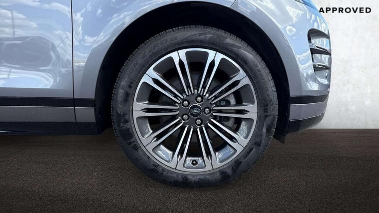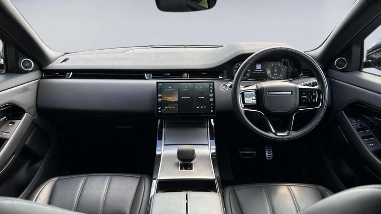 11.4" touch screen, Adaptive cruise control, Android Auto, Apple car play, Blind spot assist, Bluetooth connectivity, Brake pad wear indicator warning light, Driver condition monitor, eCall emergency system, Eco mode, Electronic power assisted steering (EPAS), Front and rear parking aid, InControl remote, Interactive driver display, Land Rover InControl apps, Lane keep assist, Pivi pro connected includes diamond pivi variant, smart settings, connected navigation pro, nuance speech licence, Powered tailgate/boot lid, Rear collision monitor, Rear traffic monitor, Traffic sign recognition with adaptive speed limiter, Voice control system, Wireless device charging, All terrain progress control, Diesel exhaust fluid (DEF) large tank, Efficient Driveline, Large fuel tank, Passive suspension, Terrain Response 2, Digital Audio Broadcast radio-DAB, Steering wheel mounted controls, Acoustic laminated windscreen, Auto headlights, Automatic headlight levelling, Electric windows with one touch open/close and anti trap, Flush deployable exterior door handles, Front and rear recovery eyes, Heated rear window with timer, Heated washer jets, Heated windscreen, Pixel LED headlights with signature DRL and LED tail Lights, Power fold, auto-dimming, heated door mirrors with approach lights and auto dimming driver side, Rain sensing windscreen wipers, Rear animated directional indicators, Rear fog lights, Rear side wing doors, Rear wiper, Side repeater indicators in mirror, Tailgate spoiler, Third brake light, Winter wiper park position, 14 way driver memory electric front seats with 2 way manual headrests + 4 way lumbar support, bolsters, 40:20:40 split folding rear seats with centre headrest and armrest, Ambient interior lighting, Bright metal pedals, Carpet mats, Chrome tread plates with range rover branding Includes stainless steel loadspace scuff plate with etched graphic, Customer configurable single point entry, Electrically adjustable steering column with memory function and easy entry/exit, Front and rear cupholders, Heated steering wheel, Isofix system on outer rear seats, Overhead lighting console, Overhead stowage for sunglasses, Passive front head restraints, Rear air vents, Rear head restraints, Satin chrome gearshift paddles, Single passenger seat, Sunvisors with illuminated vanity mirrors, Twin sliding front centre armrest, Online pack with data plan - Evoque, Power socket pack 2 - Evoque, 3 rear 3 point seatbelts, Anti-lock braking system (ABS), Brake hold function, Customer configurable autolock, DSC - Dynamic Stability Control, Electronic brake force distribution, Electronic parking brake, Electronic traction control, Emergency braking, Front and rear seatbelt reminder, Hill descent control, Hill launch assist, Low traction launch, Occupant protection assist, Passenger seat occupant detector, Power operated child locks, Roll stability control, Six airbags - Driver and passenger airbags/driver knee airbag/front side airbag and curtain airbags, Torque vectoring brake, Tyre pressure monitoring system, Alarm, Immobiliser, Intrusion sensor, Keyless entry, Locking wheel nuts,
