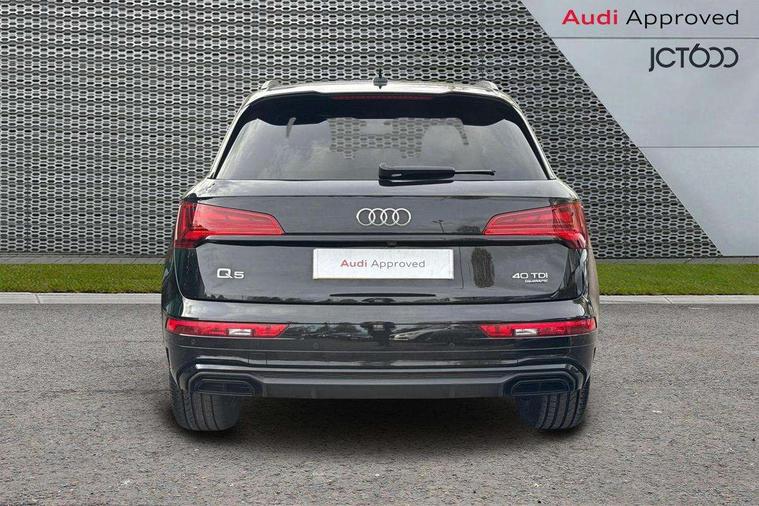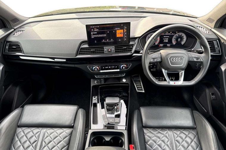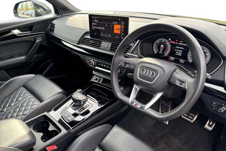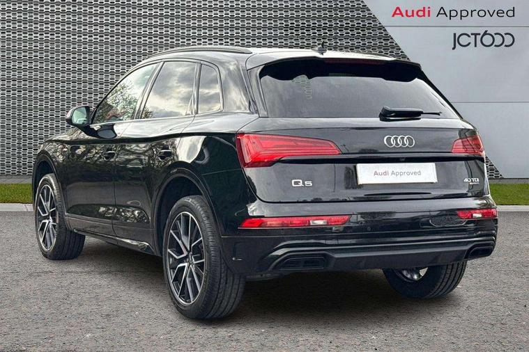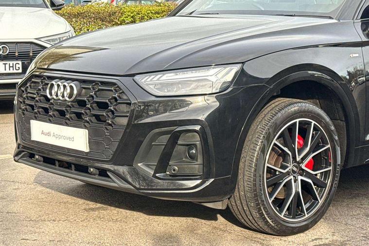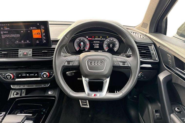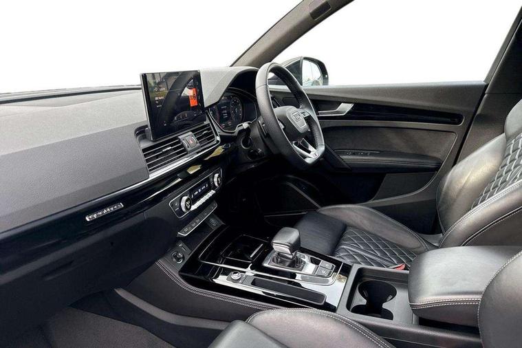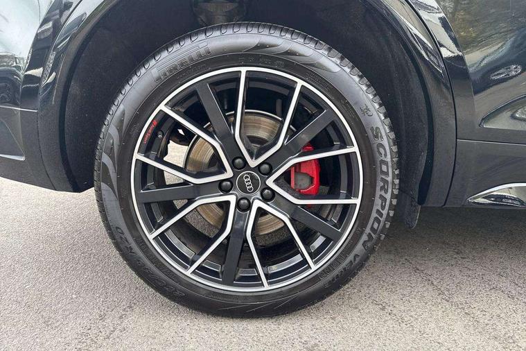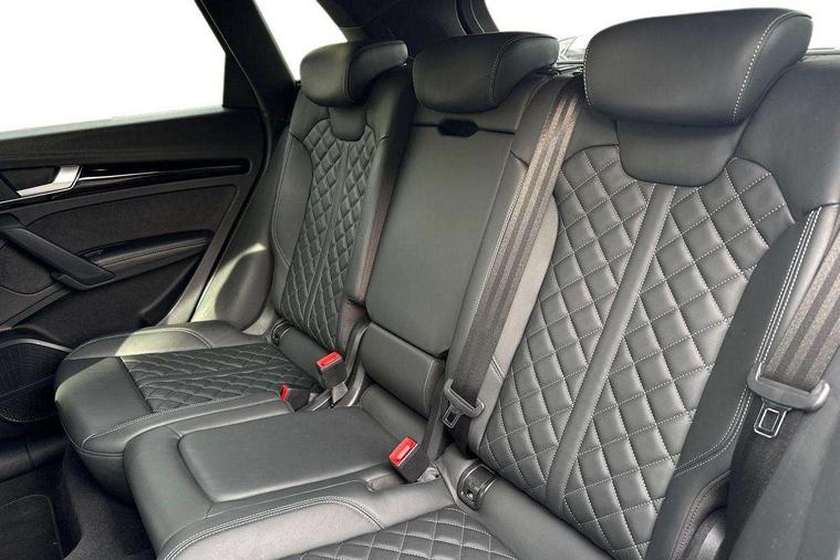 Audi connect safety and service (e-call), Audi connect with Amazon Alexa Integration, Audi drive select, Audi virtual cockpit plus with 12.3" screen and three different layout designs, Audi wireless smartphone interface, Automatic start-stop system with coasting functionality and efficiency programme, Bluetooth interface, Electro - mechanical power assisted steering, MMI navigation plus with 10.1" touch screen, Power tailgate, Reversing camera, Service interval indicator, Voice control system with Audi hotword activation "Hey Audi", Diesel particulate filter, Quattro on demand, S line sports suspension, 2 x USB charging port with aux input socket, DAB Digital radio, Acoustic windscreen, Audi beam with Audi rings logo, Audi matrix LED headlights with dynamic front and rear indicators, Audi rings at front and rear in black, Audi rings decal on rear doors, Auto dimming door mirrors, Auto dimming rear view mirror, Automatic headlights and windscreen wipers, Black door mirrors, Black roof rails, Body colour bumpers, Body colour underbody protection, Chrome plated exhaust trims, Daytime running lights, Door sills in Selenite silver, Electric adjustable/heated/folding door mirrors, Front air inlet surrounds in titanium black, Front and rear electric windows, Headlight washers, High gloss black B pillar trims and triangular rear door trim, High level LED brake light, Rear chrome trim strip below lights, Rear privacy glass and rear side windows, Rear side wing doors, Rear spoiler, Rear wiper, Roof bars, Without model and engine badging at rear, 3 rear headrests, 4 way electric lumbar support for driver and front passenger, 40:20:40 split folding 3 rear bench seat in 2nd row with rear centre armrest, Black cloth headlining, Comfort front centre armrest, Contrast stitching on seats, steering wheel and gear lever gaiter, Deluxe 3 zone electronic climate control, Electrically adjustable front seats, Fine Nappa leather upholstery with diamond pattern contrast stitching + front sport seats with S embossed logo, Front/rear floor mats, Gear lever in black leather, Heated front seats, Height adjustable front head restraints, Height/reach adjustable steering column, Illuminated door sill trims with S logo, ISOFIX child seat mounting and top tether, Luggage compartment cover, Rear seat bench plus, Removable luggage compartment floor, Single front passenger seat, Stainless steel pedals, Sunvisors with vanity mirrors, Black styling package - Q5 Edition 1, Extended interior upholstery pack - Q5, Extended LED Interior multi coloured Lighting Pack - Q5, 3 point seatbelts on all seats, 6 airbags - Driver, front passenger, curtain and side airbags, Electrically operated child locks on rear doors, Electromechanical parking brake, Electronic stabilisation control including ABS, ASR and EDL, Front and rear brake calipers painted in red, Front passenger airbag deactivation, Hill descent control, Hill hold assist, Multi collision brake assist, Pop-up bonnet for pedestrian protection, Pre sense city, Seat belt force limiter, Seatbelt monitoring, Tyre pressure warning, Warning triangle and first aid kit, Anti theft alarm, Anti-theft wheel bolts, Keyless Go access/ignition system, Remote central locking, Piano black finish inlay,