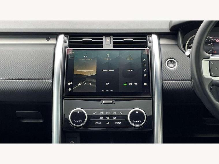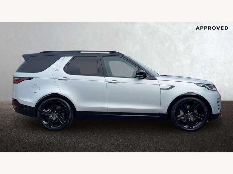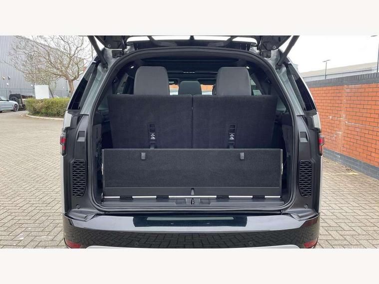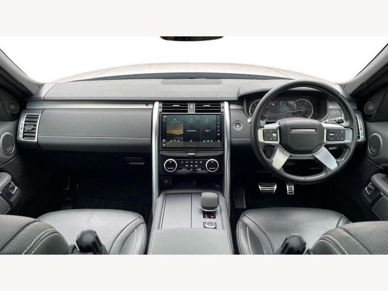 11.4" touchscreen, 3D surround camera, Adaptive cruise control, Android Auto, Apple car play, Blind spot assist, Driver condition monitor, Electric power assisted steering (EPAS), Emergency services call system, Front and rear parking aid, Lane keep assist, Power inner tailgate, Push button start, Rear collision monitor, Rear traffic monitor, Remote, Remote boot release, Service interval indicator, Speed proportional steering, Sportshift selector, Stop/start system, Traffic sign recognition with adaptive speed limiter, Trip computer, Wade Sensing, Adaptive dynamics, Dynamic stability control, Electronic air suspension, Front axle open differential, Digital Audio Broadcast radio-DAB, Dynamic volume control, Meridian surround sound system - 14 speaker + subwoofer, 18 channel amplifier, 700W, Pivi pro connected, USB/aux input socket, Acoustic laminated windscreen, Animated directional indicators, Auto dimming interior rear view mirror, Automatic headlight levelling, Automatic headlights, Body colour bumpers, Body colour door handles, Centre high mounted stop light, D300 badge, Electric heated/power fold memory door mirrors with approach lights and auto dimming driver side, Electric windows with one touch open/close and anti-trap, Heated rear window, Heated windscreen, LED darkend tail lights, Matrix LED headlights with signature DRL, Metal treadplates with R-Dynamic branding, Narvik black Discovery script, Privacy glass, Puddle lights, Rain sensing windscreen wipers, Rear fog lights, Rear side wing doors, Rear wash/wipe, Trailer stability assist, Variable intermittent wiper, 12V power sockets, 12V USB charging socket in loadspace, 2 seat bench in 3rd row, 3 seat bench in 2nd row, Central hinged twin lidded storage, Ebony morzine headlining, Electric adjustable steering column, First and second row door bins, Footwell lights, Front and rear 12V with front USB, Front passenger seat isofix location point, In-facia storage, Isofix child seat preparation for front passenger seat, Loadspace cover, Loadspace Hook, Loadspace light, Lockable glovebox, Lower centre console storage, Luggage tie downs in loadspace, Multi function steering wheel, Overhead lighting console, Premium cabin lighting, Premium carpet mats, Rear ISOFIX, Shopping bag hook, Single front passenger seat, Storage glovebox, Sunvisors with illuminated vanity mirrors, Third row storage, Twin front cupholders with cover, USB with 12V socket in centre console, Online pack with data plan - Discovery, R-Dynamic black exterior pack - Discovery, 3x3 point rear seatbelts, Anti-lock braking system (ABS), Brake pre-fill technology, Cornering brake control, Curtain airbags, Customer configurable autolock, Driver and passenger airbags, EBD - Electronic brakeforce distribution, Electronic traction control, Emergency brake assist, Emergency braking, ESP, Front side airbags, Gradient acceleration control, Hill descent control, Hill launch assist, Power operated child locks, Rear airbags, Roll stability control, Seat belt reminder, Torque vectoring brake, Tyre pressure monitoring system, Immobiliser, Intrusion sensor, Keyless entry, Locking wheel nuts, Remote central locking, All terrain tyres,