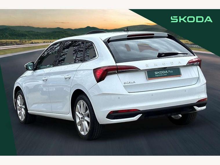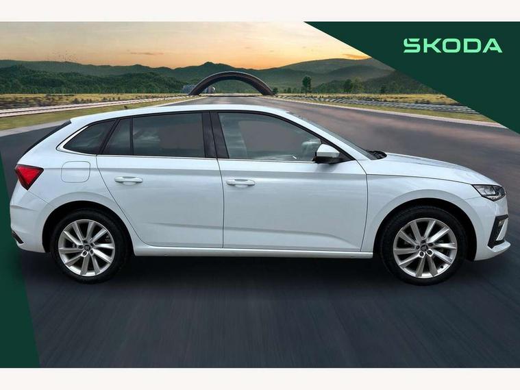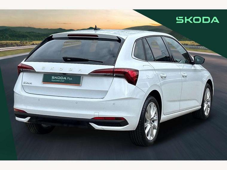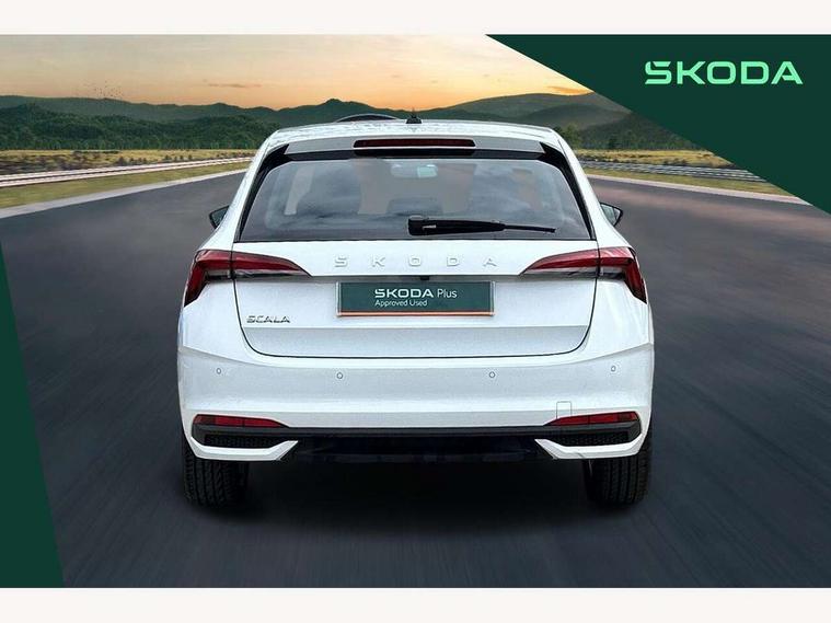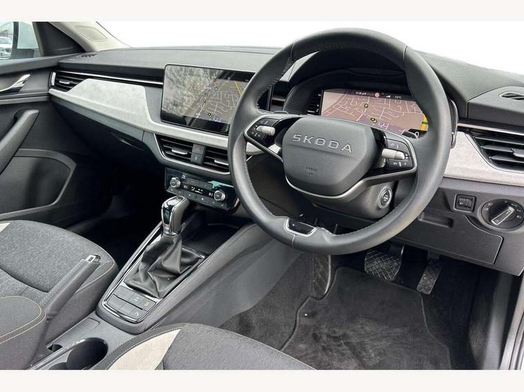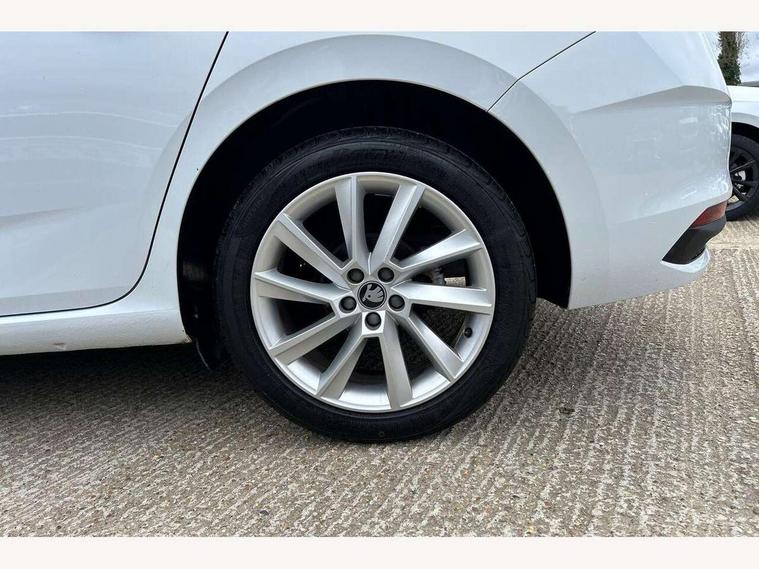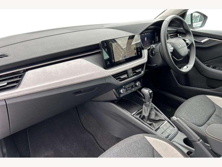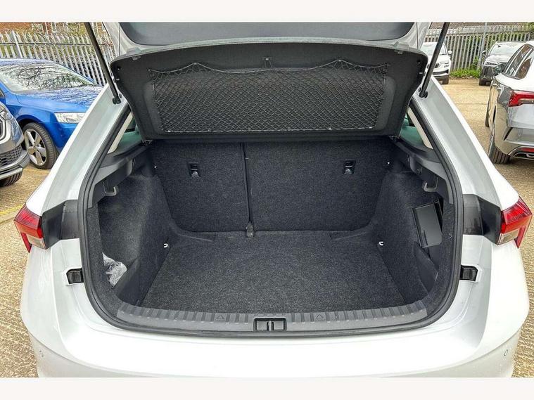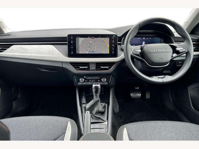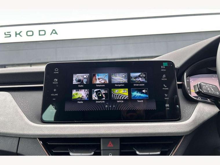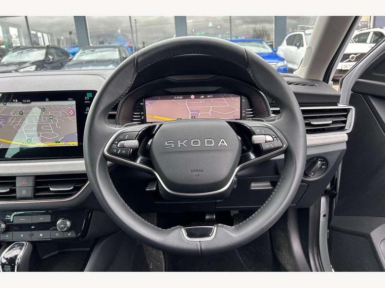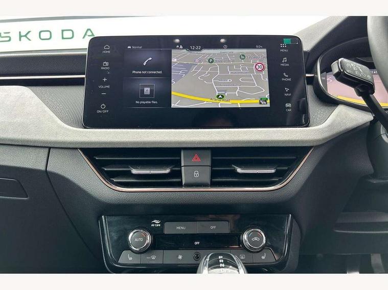 Advanced driver attention and drowsiness monitor, Bluetooth, e-Call (emergency call), Front assist system, PAS, Rear parking sensors, Rear view camera, Speed limiter, Tailgate, Traffic sign recognition, Virtual Cockpit - 10.25" digital display, Voice control system, Wireless smartlink, 4 USB C ports, 8 Speakers, 9.2" Skoda navigation display, DAB radio, Auto dimming rear view mirror, Automatic headlamp activation with Coming home and Leaving home feature, Automatic high/low beam, Automatic intermittent wipers, Body colour bumpers, Body colour door mirrors and handles, Chrome moulding around grille, Chrome window frames, Front and rear electric windows, Heated rear window, LED 3rd brake light, LED brake lights, LED daytime running lights, LED front turning lights, LED high beam, LED low beam, Light sensors, Privacy glass, Rear LED fog light, Rear side wing doors, Rear wiper, Tinted windows, Unique dark chrome design logo on alloy wheels, 12V socket in luggage compartment, 3 seat bench in 2nd row, Ambient lighting in white/red, Black / Copper armrest stitching, Cargo elements, Chrome inner door handles, Copper hotstamping, Door inserts in accent black, Driver and passenger sun visors with vanity mirror, Dual zone climate control, Front and rear roof lights, Front centre armrest, Front head restraints, Glasses storage in roof liner, Height adjustable driver seat, Height adjustable passenger seat, Ice scraper, Illuminated glove compartment, Inner circulation control with pollen filter, ISOFIX for front passenger seat, Isofix preparation for back seats, Leather gearknob and handbrake lever, Lodge cloth upholstery, Luggage net under rear parcel shelf, Manual lumbar support for front seats, Net package and top tether hooks in boot space, Pearl grey ceiling, Pocket on the back of both front seats, incl. mobile phone pockets, Rear centre armrest, Single front passenger seat, Skoda lettering on steering wheel, Textile floor mats, Third rear headrest, Ticket holder, Top tether for front passenger seat, Umbrella in driver's door, Convenience pack without rear camera - Scala, 3x3 point rear seatbelts, ABS, Child locks, Curtain airbags and front side airbags, Disc brakes, Driver and front passenger airbags, ESP, Hill hold control, Manual leather parking brake, One tone horn, Passenger airbag switch off function, Seatbelt reminder for driver and front passenger, Tyre pressure monitoring system, Anti theft alarm system with interior monitoring, backup horn and towing protection, Anti-theft wheel bolts, Remote central locking with 2 remote folding keys, SAFE function for remote central locking, Decorative inserts,