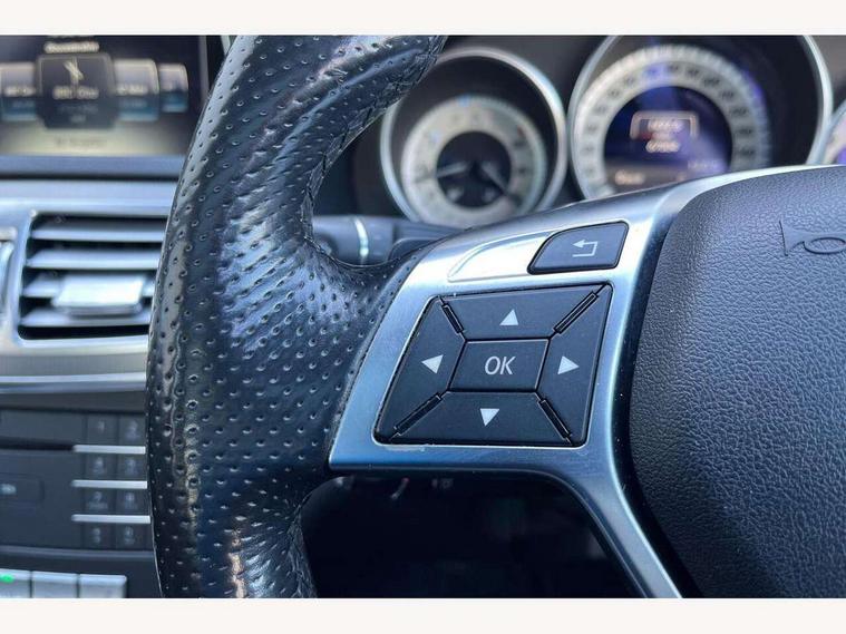 Active park assist with parktronic system, Attention assist, Bluetooth interface for hands free telephone, Boot release from drivers seat, Collision prevention assist, COMAND HDD navigation with CD/DVD/Radio, media interface, linguatronic, 10GB music register, SD card slot + online, External temperature gauge, Instrument cluster, On board computer, Service indicator (ASSYST PLUS), Speed sensitive power steering, Diesel particulate filter, DAB Digital radio, USB/aux input socket, Adaptive high beam assist, Aerial integrated in rear window, AMG bodystyling, AMG front, rear apron and side skirts, Body colour bumpers, Body colour door handles, Chrome window highlights, Electric front sliding and fixed rear panoramic glass sunroof, Electric front/rear windows with one touch/auto up/down, Electric heated + adjustable door mirrors, Heated windscreen wash system, High gloss black beltline and window surround, High gloss black door mirror housing, Intelligent LED headlight system with active cornering lights, LED daytime running lights, LED indicators in door mirrors, LED tail lights, Radiator grille with 2 louvres in high gloss black, Rain sensor windscreen wipers, Twin exhaust pipes, 1/3 to 2/3 split folding rear seats, 3 spoke AMG steering wheel in Nappa leather, Adjustable rear head restraints, Ambient lighting, AMG brushed stainless steel sports pedals with rubber studs, AMG floormats, Auto dual-zone climate control system, Auto Mercedes-Benz child seat recognition sensor, Bag hook in luggage compartment, Black roof lining, Bottle holders, Door sill panels with stainless steel inlays, Front and rear door pockets, Front centre armrest with storage compartment, Front cupholder, Front seat back map pockets, Heated front seats, Height/reach adjust steering wheel, Instrument lighting dimmer, Interior rear light/integral reading lights, Isofix rear child seat fastenings, Lockable glovebox, Multi function steering wheel, Neck-pro front headrests, Rear armrest with storage + cupholders, Steering wheel gearshift paddles, Stowage compartment with 12V socket, Sunvisors with illuminated vanity mirrors, Memory pack - E Class, Mirror pack - E Class, 3x3 point rear seatbelts, ABS with Brake Assist, Active bonnet, Adaptive brake system, Driver/front passenger airbag, Drivers knee airbag, ESP with ASR, Front and rear curtain airbags, Front brake callipers with Mercedes Benz lettering, Front side airbags, Pre-Safe anticipatory safety system, Rear seatbelt warning indicator, Tyre pressure monitoring system, Warning triangle and first aid kit, Alarm system/interior protection/immobiliser, Locking wheel bolts, Remote central locking, Tirefit sealant with electric air pump,