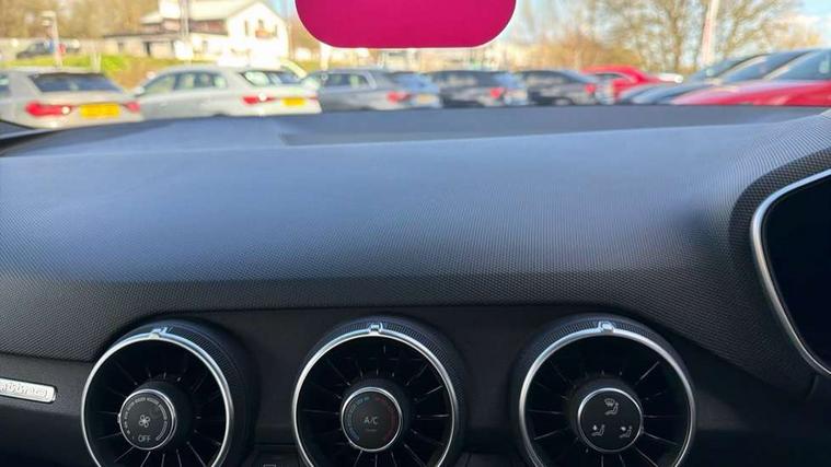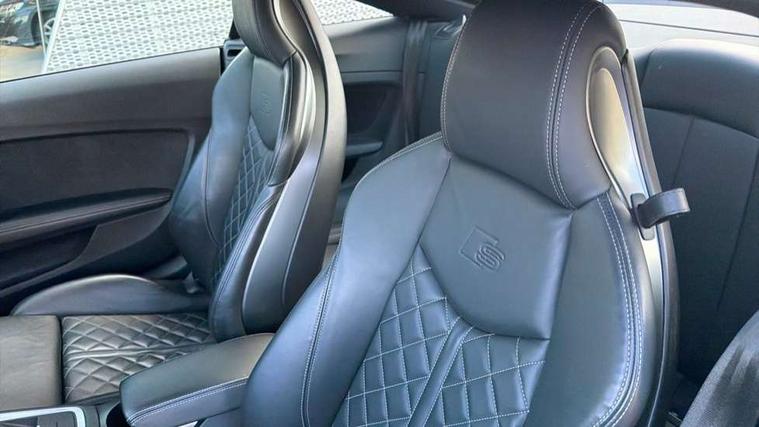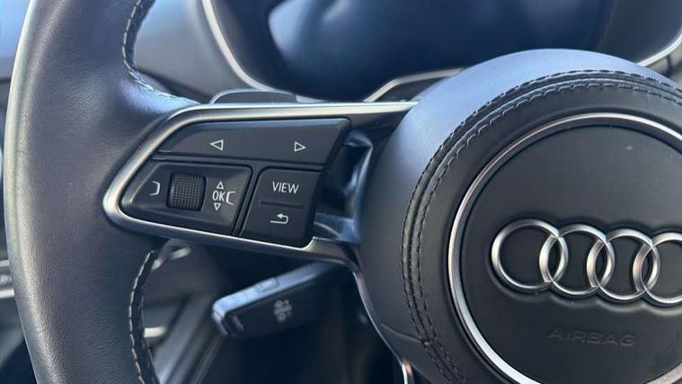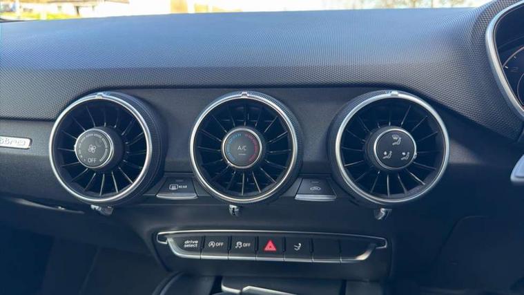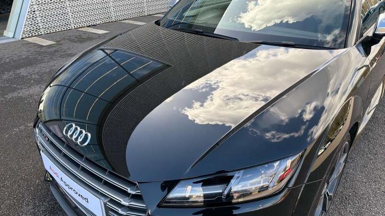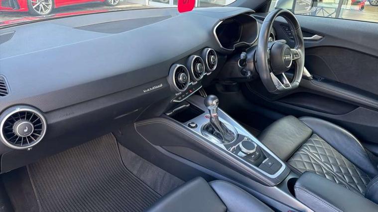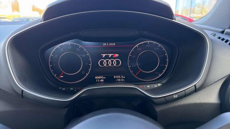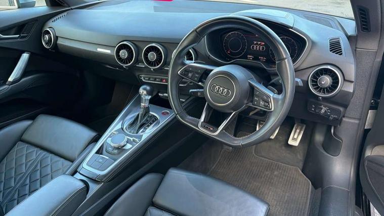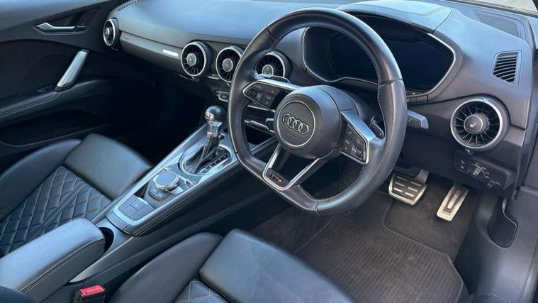 Audi active lane assist, Audi drive select, Audi virtual cockpit - 12.3" high-resolution LCD display with fully customisable instrument cluster, Cruise control + speed limiter, MMI touch panel, Mobile phone preparation with bluetooth interface, Progressive power assisted steering, Service interval indicator, Audi magnetic ride, TTS suspension, Audi music interface, Audi sound system, Auxiliary input socket, Bluetooth audio streaming, DAB Digital radio, MMI Radio with CD player and SD/XC card slot, Aluminium door mirror housings, Audi Beam uses LEDs to project the Audi Sport logo, Auto headlight range control, Body colour bumpers, Electric front windows, Green tinted heat insulating glass, LED daytime running lights, Platinum grey front grille, Rear diffuser, Retractable rear boot spoiler, S body styling, Sunband for windscreen, 3 spoke flat bottomed high multi-function leather sport steering wheel with gearshift paddles, Aluminium door sill trims, Black headlining, Electric lumbar support, Extended aluminium look with stainless steel pedals, Front centre armrest, Front head restraints, Front passenger seat isofix location point, Height/reach adjust steering wheel, ISOFIX on outer rear seats, Split folding rear seat, Top tether anchor plate for isofix child seat, Auto dimming rear view mirror with light and rain sensors pack - TT, LED interior light pack - TT/TT RS, Non smoking pack - TT/TT RS, 3 point front seat belts, ABS, ASR traction control, Curtain airbags, Driver/Front Passenger airbags, EDL traction control, Electromechanical parking brake, ESP, First aid kit, Front passenger airbag deactivation, Front side airbags, Head airbags, Seatbelt warning, Tyre pressure warning, Warning triangle, Anti theft alarm, Immobiliser, Keyless start, Locking wheel bolts, Remote central locking, Matt brushed aluminium inlays, Tyre repair kit,