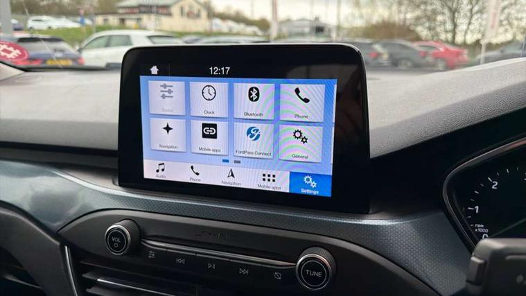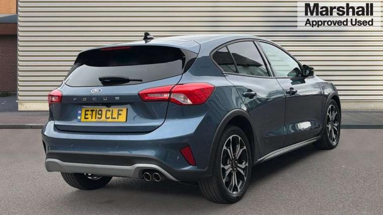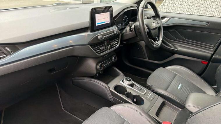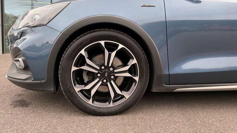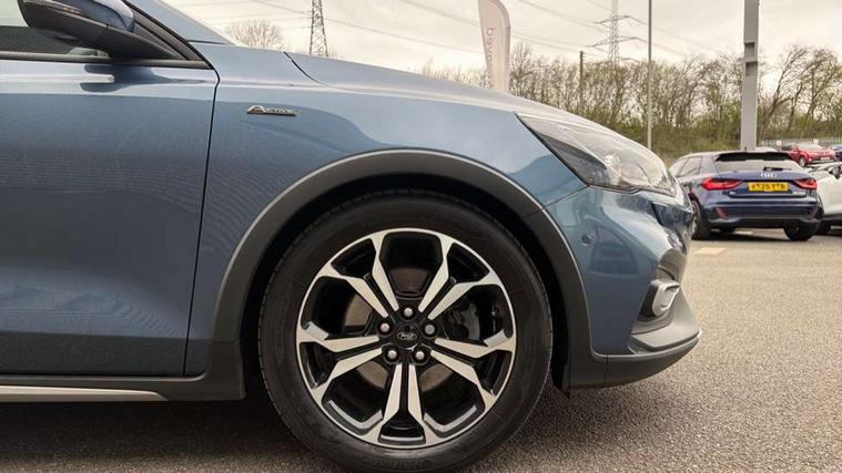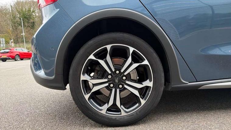 Bluetooth system, Digital clock, Easy fuel capless refuelling system, Eco mode, Ford pass connect, Ford SYNC 3 nav system with DAB radio, 8" colour touch screen, voice control, app link, Apple car play/Android auto and 4.2" TFT coloured cluster, PAS, Rotary gear shift dial, Selectable drive modes with slippery and trail mode, Trip computer, Diesel particulate filter, Raised ride height (30mm higher than standard), Aux input, 'Quickclear' heated windscreen/heated washer jets, Active branded scuff plates, Active front and rear bumper with unique upper and lower grille, Auto dimming rear view mirror, Auto headlamps (on/off), Automatic rain sensing wipers, Black painted roof and mirror caps, Body colour power folding door mirrors with puddle lights, Body coloured bumpers, Body coloured door handles, Electrically operated and heated door mirrors with side indicators, Electrically operated front and rear windows with one touch opening and closing, Front variable intermittent wipers with electric wash, Heated rear window, LED daytime running lamp, LED front fog lamps with cornering function, Openable panorama roof, Rear privacy glass, Tailgate wash/wipe, Twin exhaust tailpipes, Unique door and instrument panel inserts, Unique skid plates and side rocker mouldings, 3 spoke leather trimmed steering wheel with integrated audio controls, 6 way power adjustable driver seat, 60/40 split back and cushion rear seats with 2 height adjustable headrests, Centre console with armrest, Driver's seat manual height adjust, Dual zone electronic air temperature control, Front and rear floor mats with blue stitching, Front passenger seat manual height and lumbar adjust, Gear lever gaiter ring with blue stitching, Heated front seats, Height adjustable front headrests, Isofix child seat preparation, Paddle shift controls, Partial leather upholstery with blue stitching, Reach + rake adjustable steering column, Rear centre headrest, Soft console knee pads with blue stitching, ABS+Electronic Brake force Distribution, Auto hold function, Driver airbag, Electronic parking brake, Electronic stability control, Front and rear seatbelt reminder, Front inertia reel height adjustable seatbelts with pre-tensioners, Front passenger airbag, Front side airbags, Hill start assist, Passenger airbag deactivate switch, Post collision braking, Pre collision assist with autonomous emergency braking and pedestrian/cyclist detection, Side curtain airbags, Three rear inertia reel lap/diagonal seatbelts, Tyre pressure monitoring system, Ford keyfree system with Keyless entry and keyless start, MyKey system, Remote central locking & engine immobiliser, Thatcham category 1 alarm, 18" 5x2 spoke absolute black machined painted alloy wheels, Mini steel spare wheel,